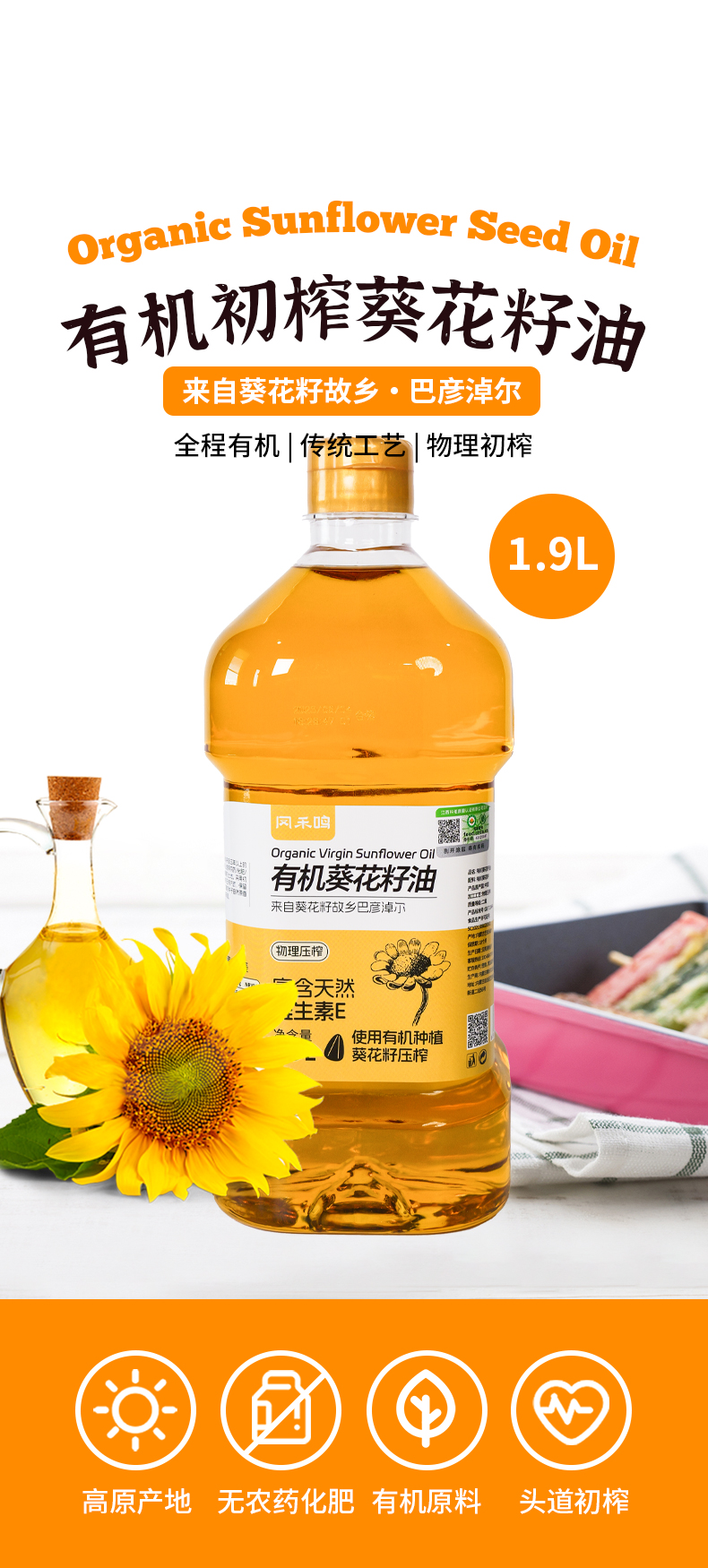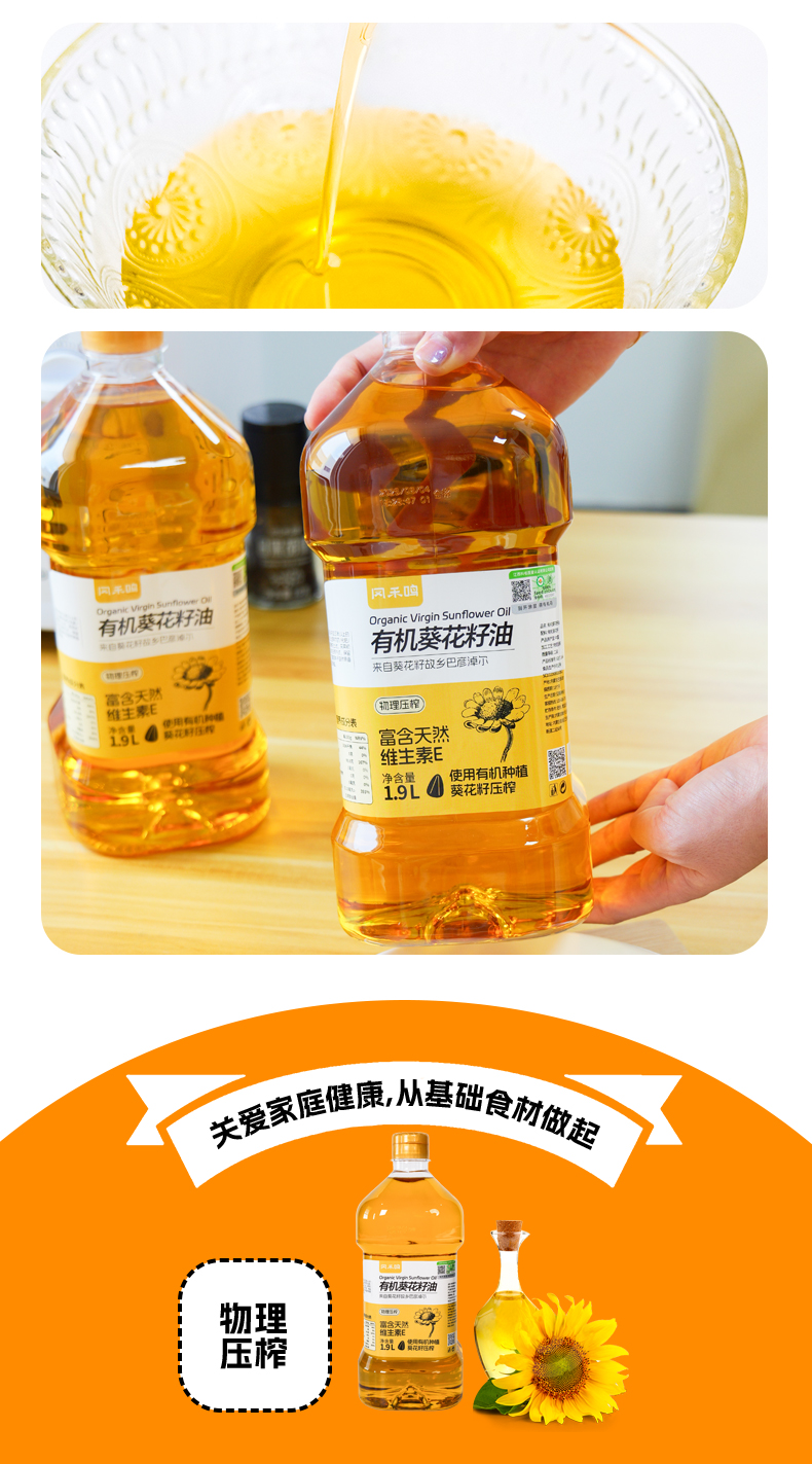 【有机初榨葵花籽油】1.9L|小时候妈妈在隔壁老油坊买的纯手工现磨油的味道