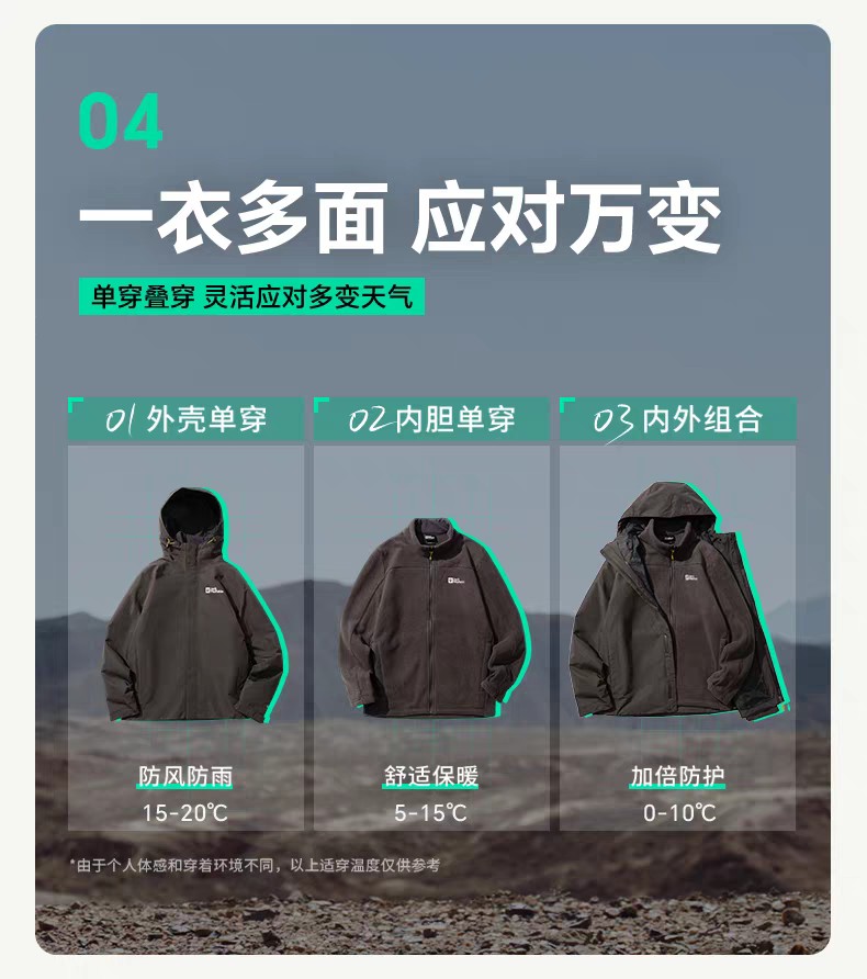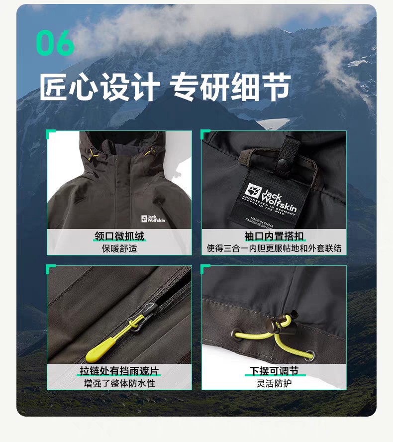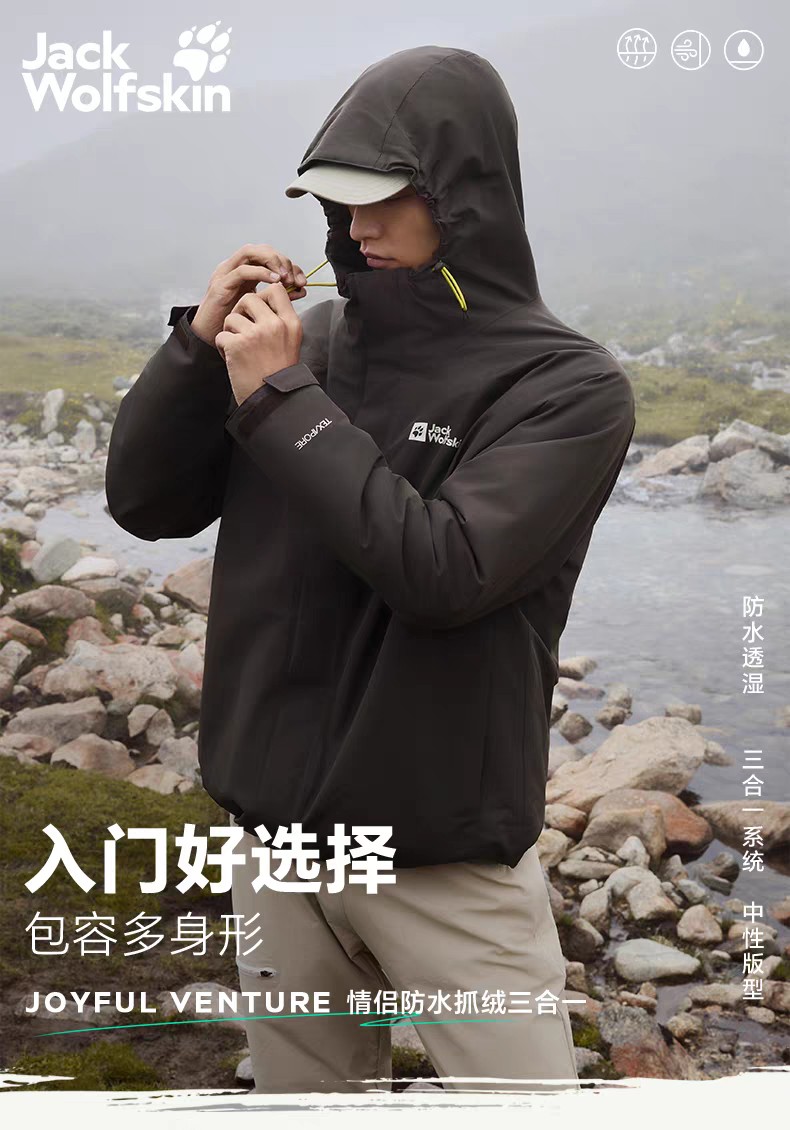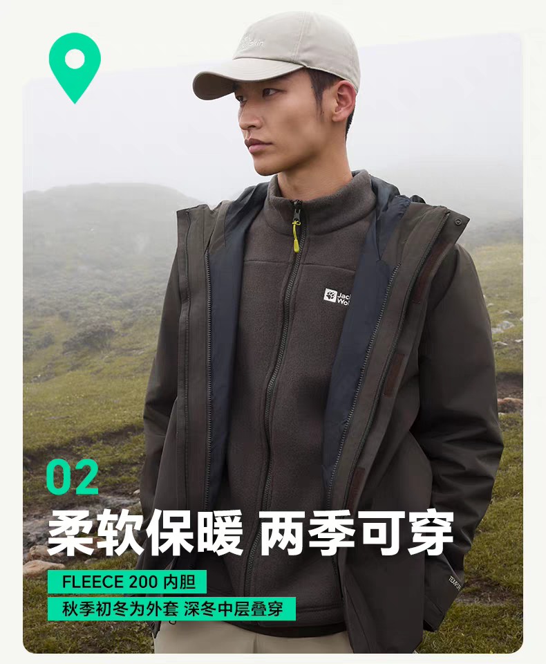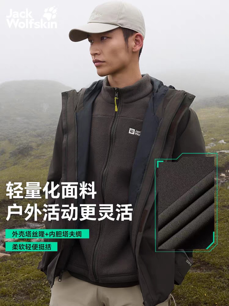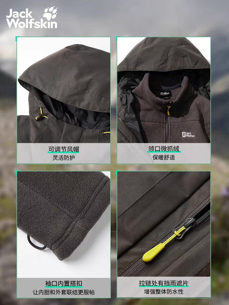 【云粉节】【7折】6楼JACKWOLFSKIN狼爪秋冬JOYFUL男款抓绒三合一冲锋衣A65466-6000吊牌价2099折后价1469