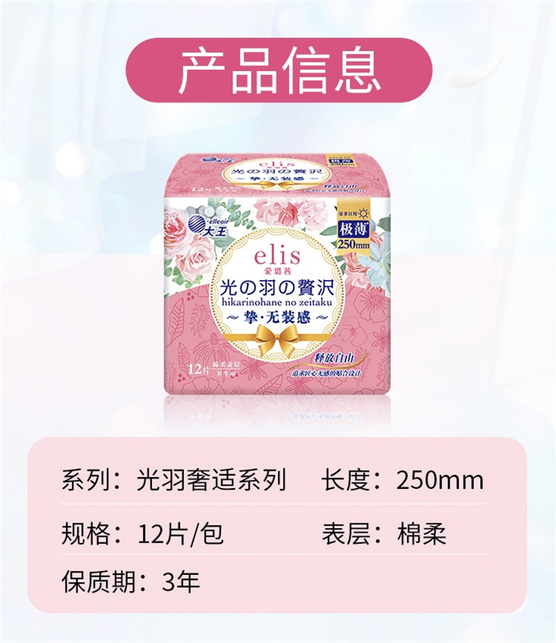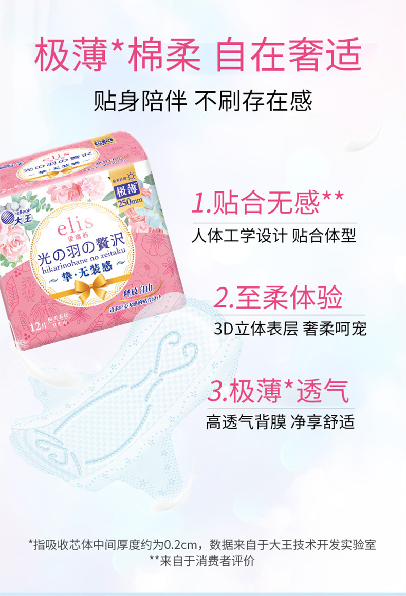 大王光羽奢适极薄绵柔日用卫生巾250mm12片