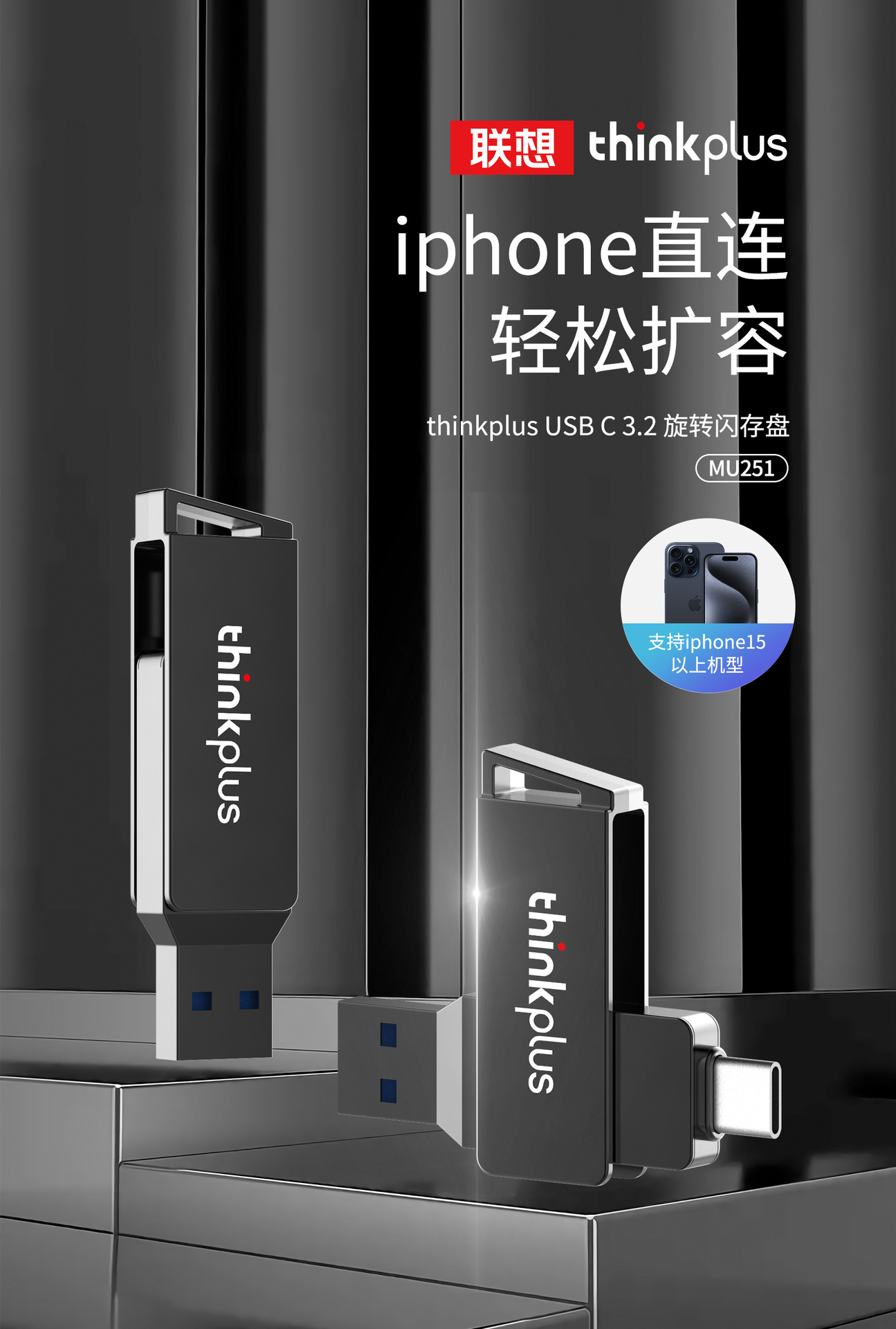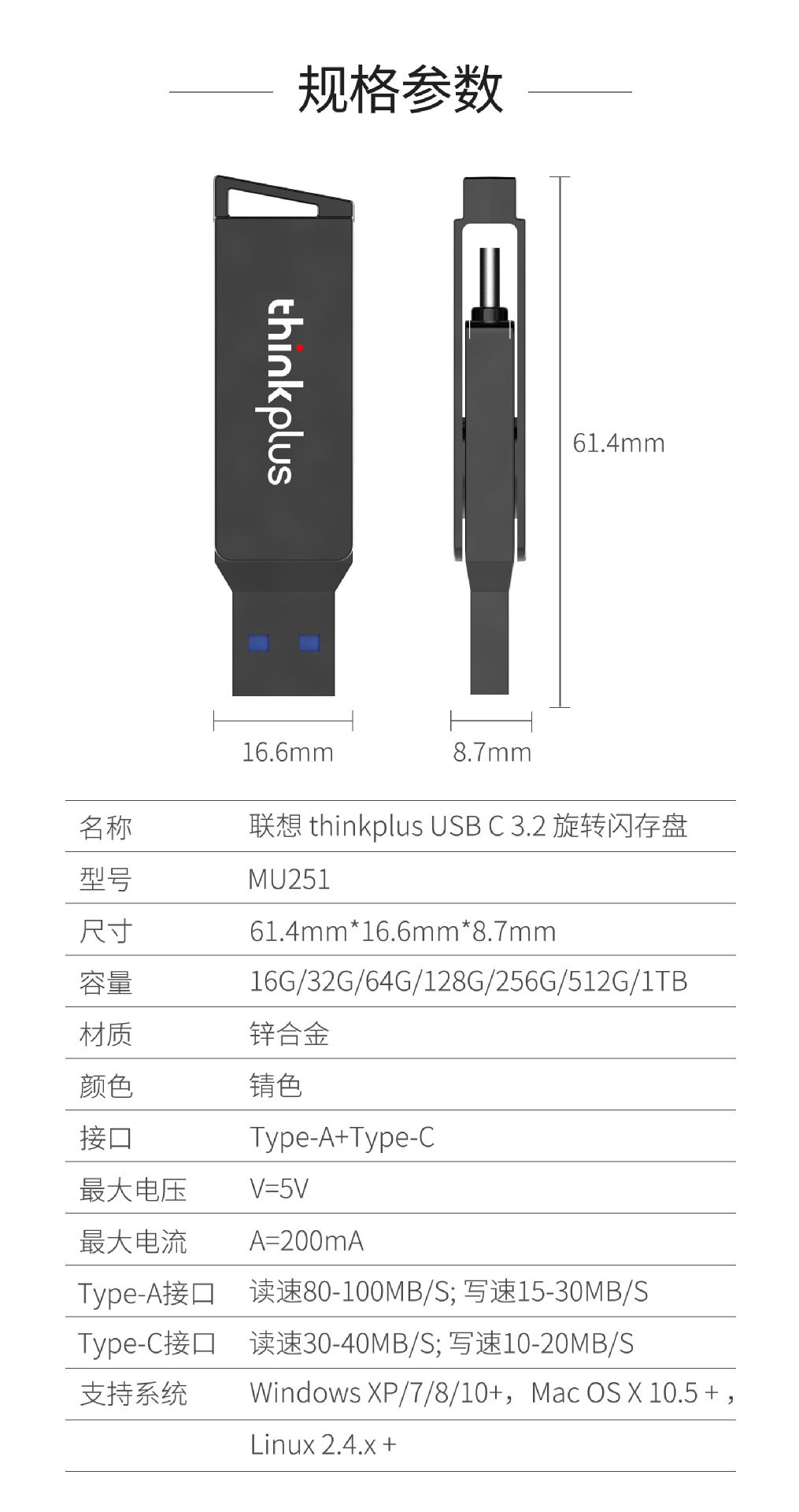 【高速双接口旋转闪存32GB/U盘1个】联想 MU251电脑手机两用优盘适用301
