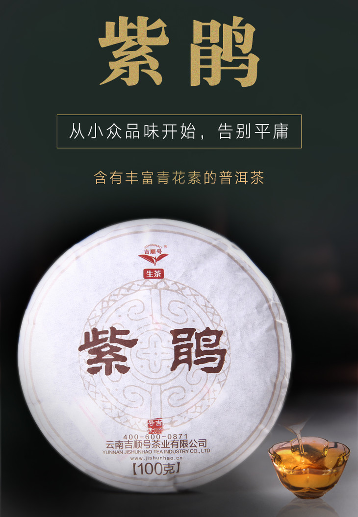吉顺号普洱茶2019年紫鹃春茶紫芽紫叶普洱生茶100g/饼