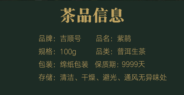 吉顺号普洱茶2019年紫鹃春茶紫芽紫叶普洱生茶100g/饼 商品图7