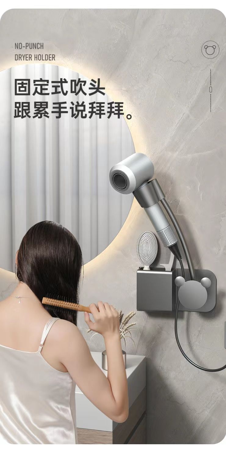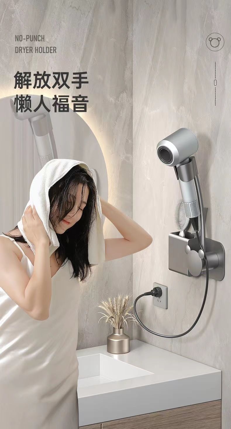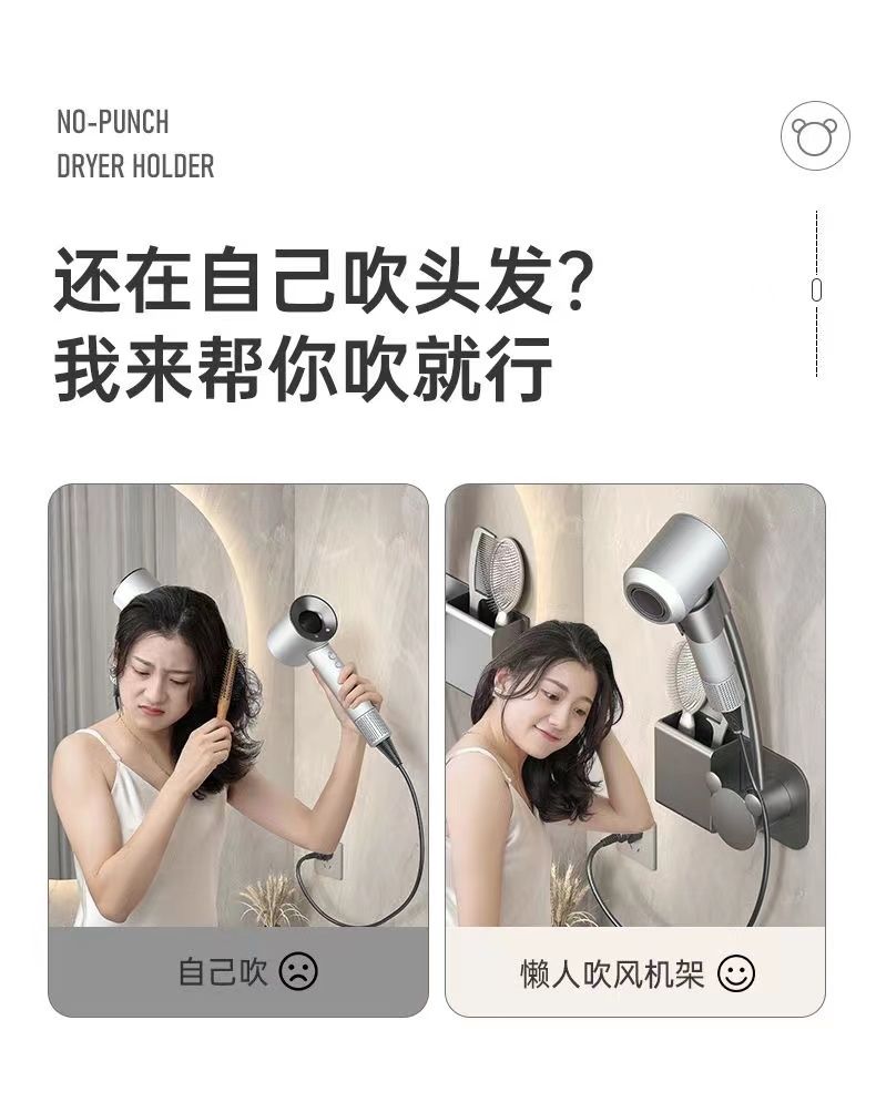 懒人吹风机支架免手拿可调节风筒解放双手吹风机收纳架壁挂免打孔