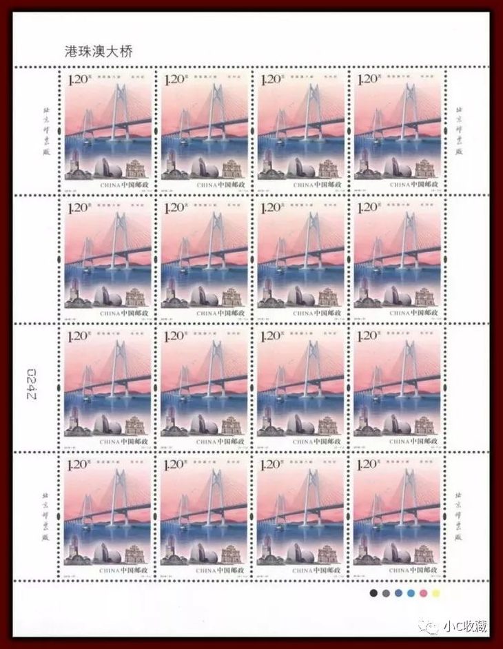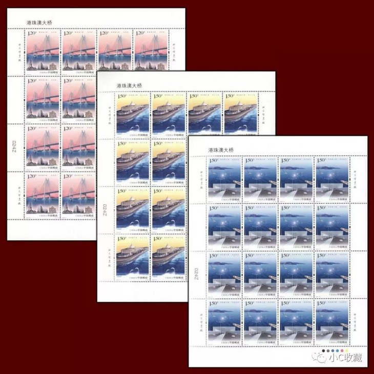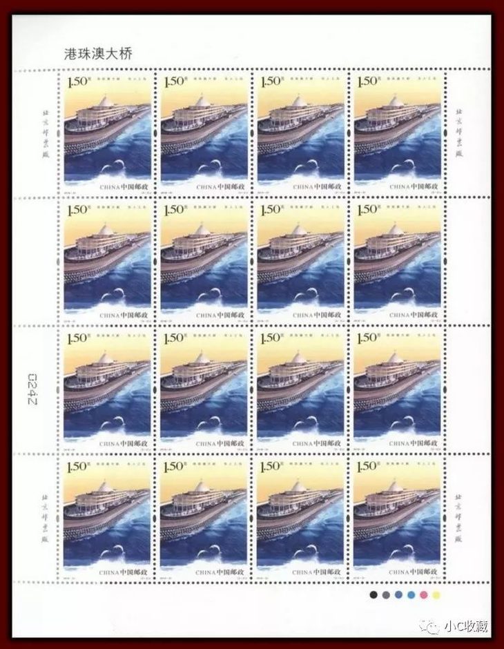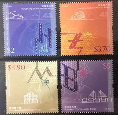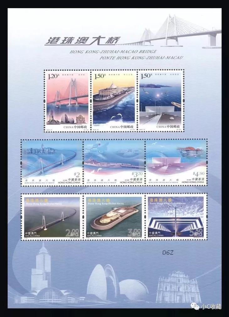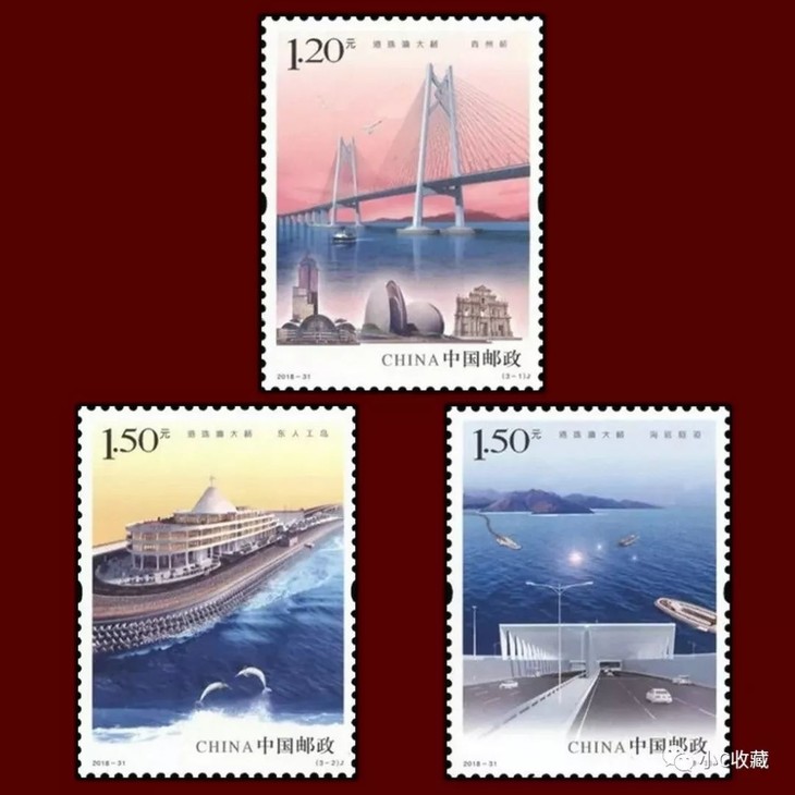 中国邮政定于2018年10月30日发行《港珠澳大桥》纪念邮票1套3枚,邮票图案名称分别为:青州桥、东人工岛和海底隧道: