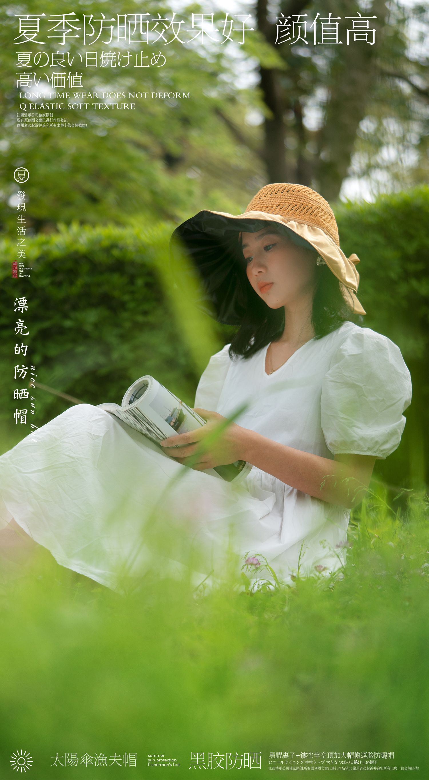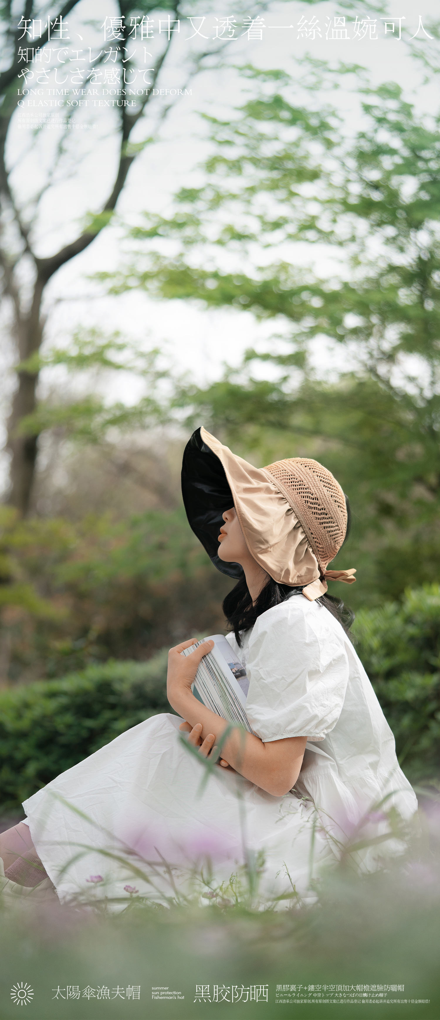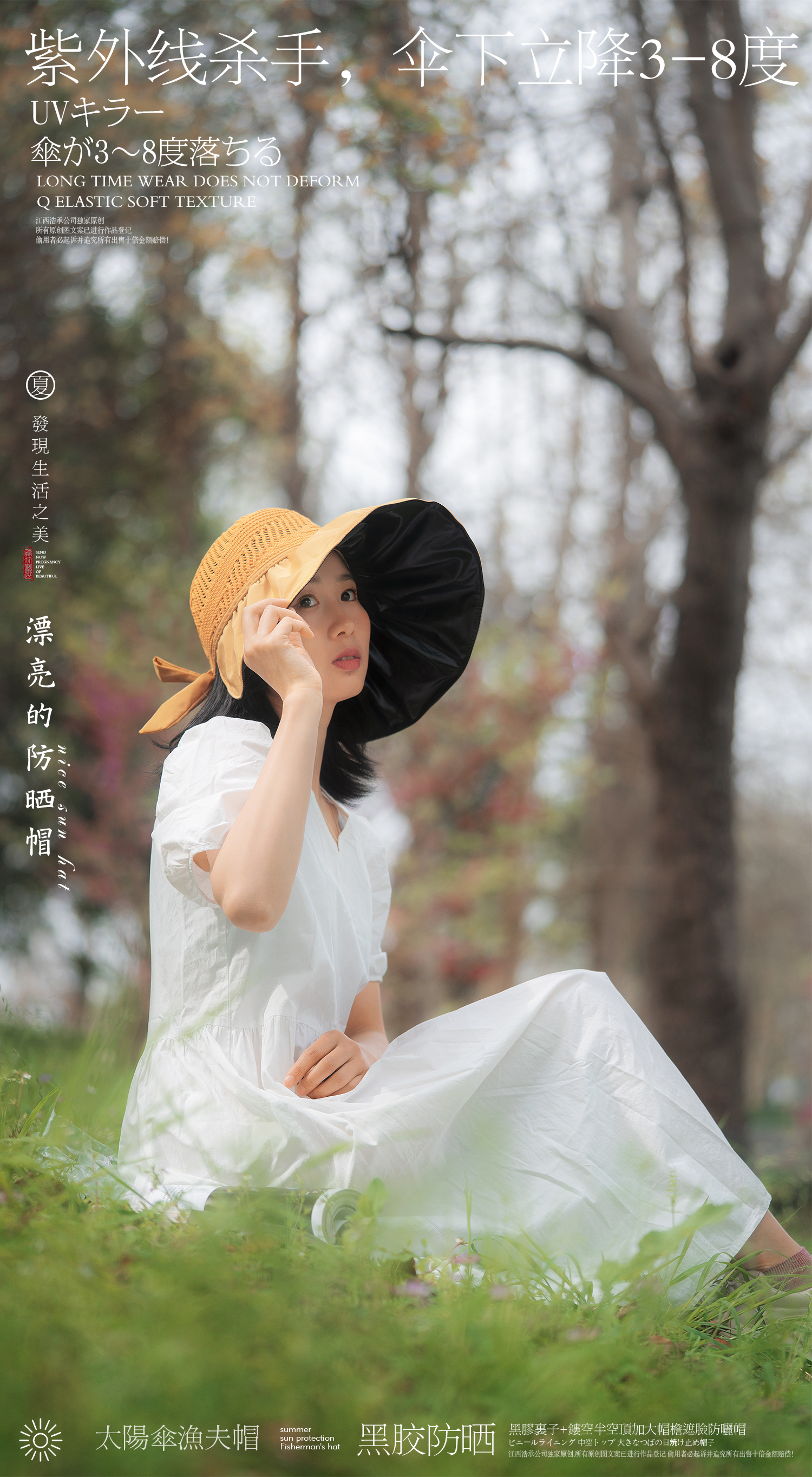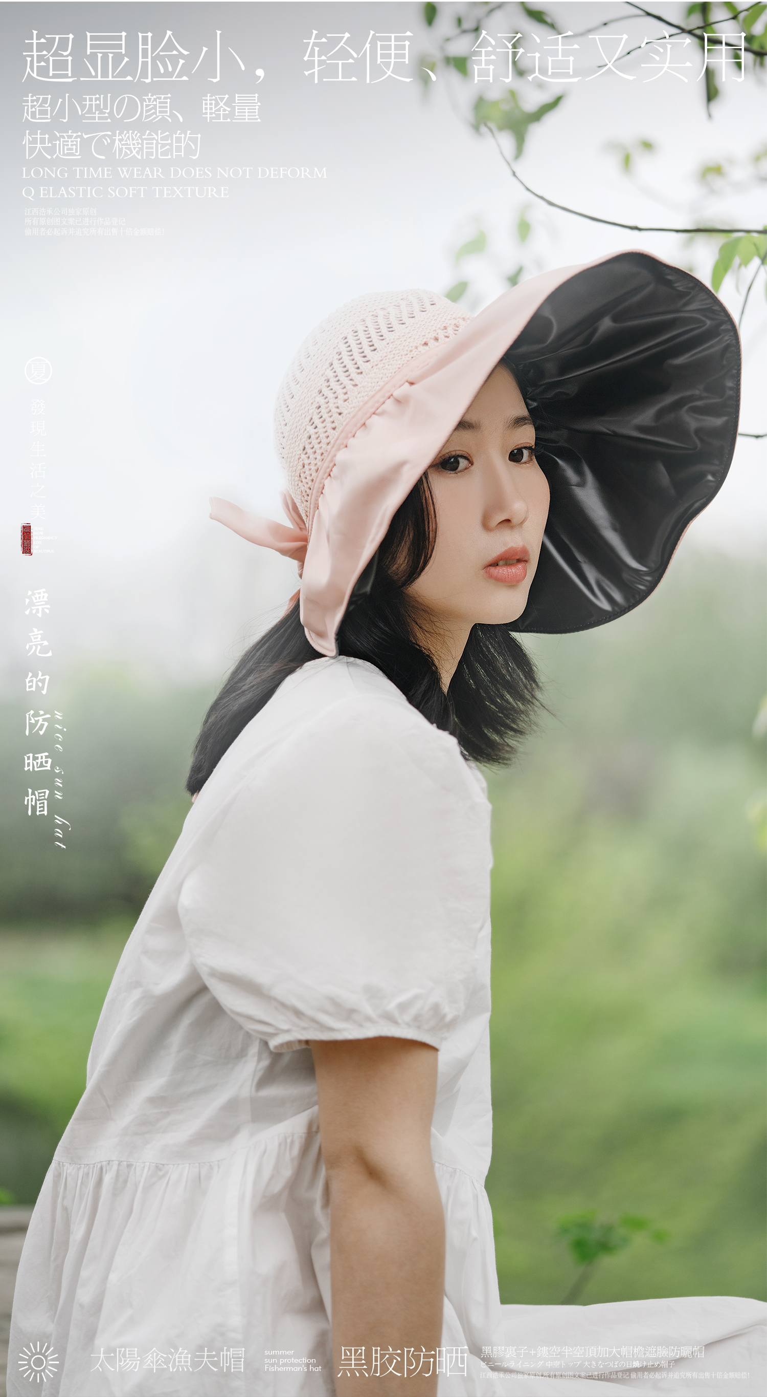 【热卖】黑胶半空顶防晒渔夫帽,可扎马尾草编遮阳帽,后空顶大帽檐遮脸防晒帽【223-6】