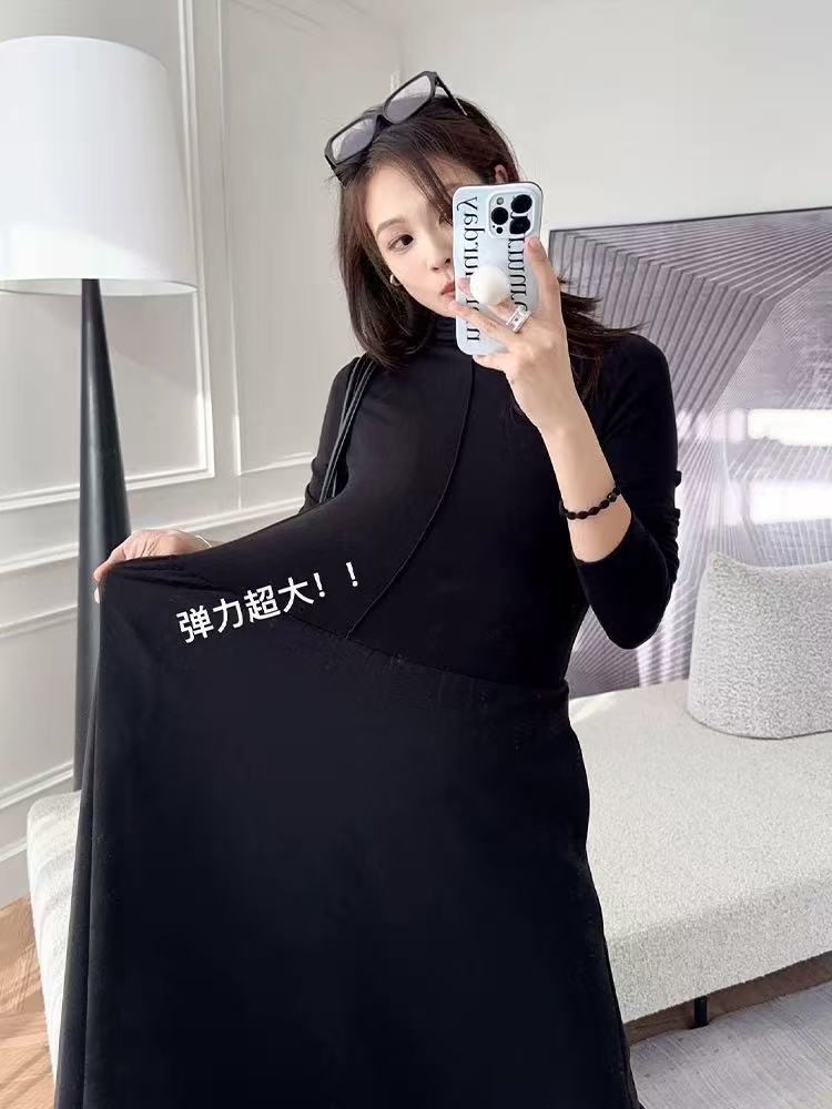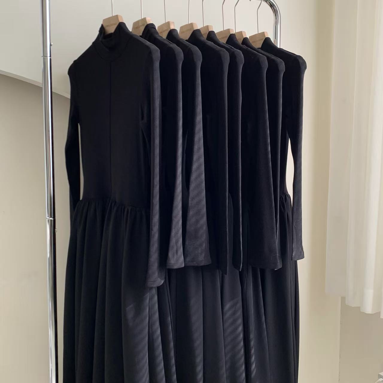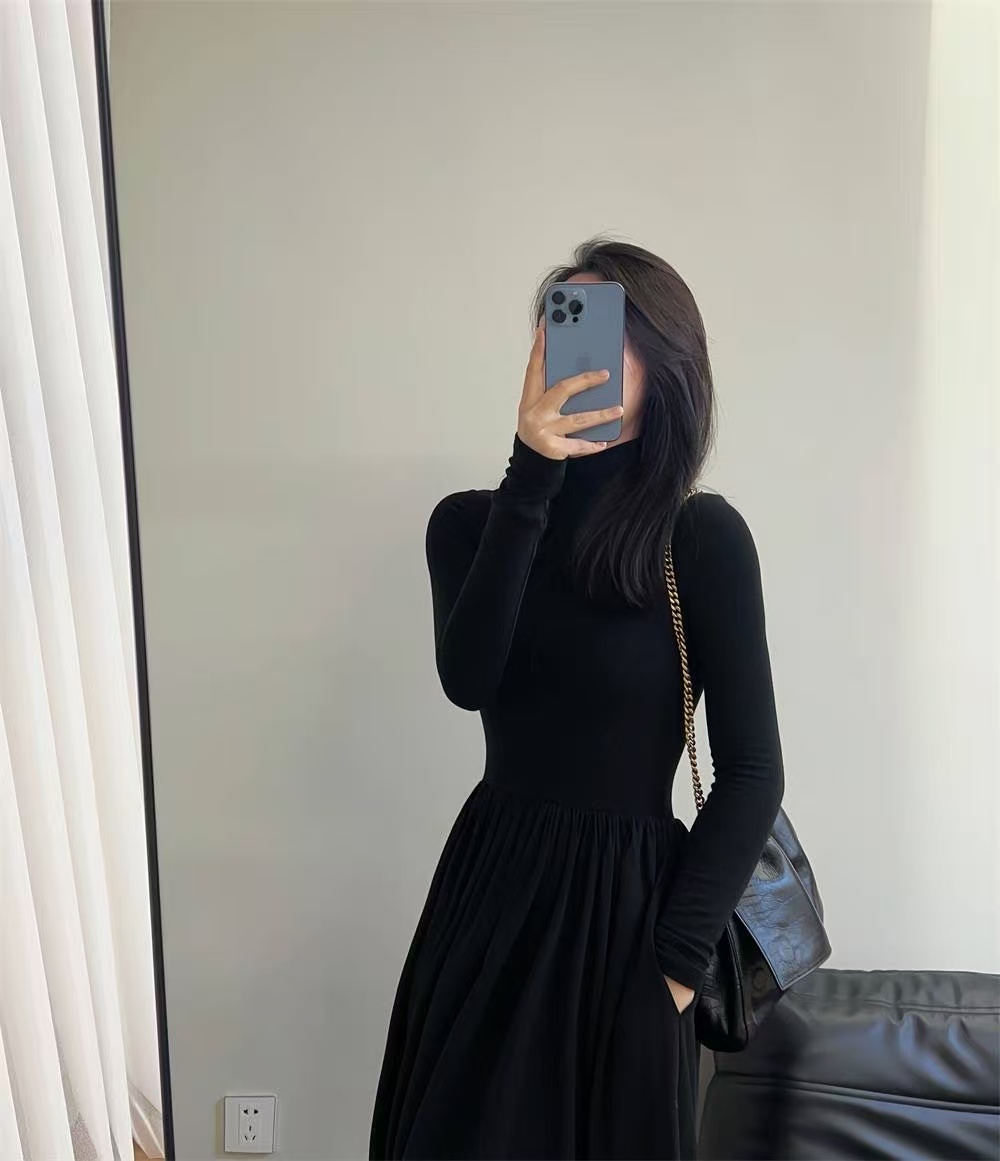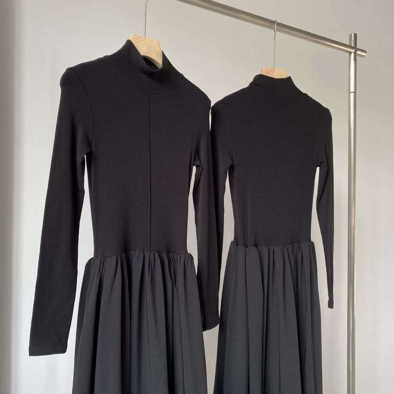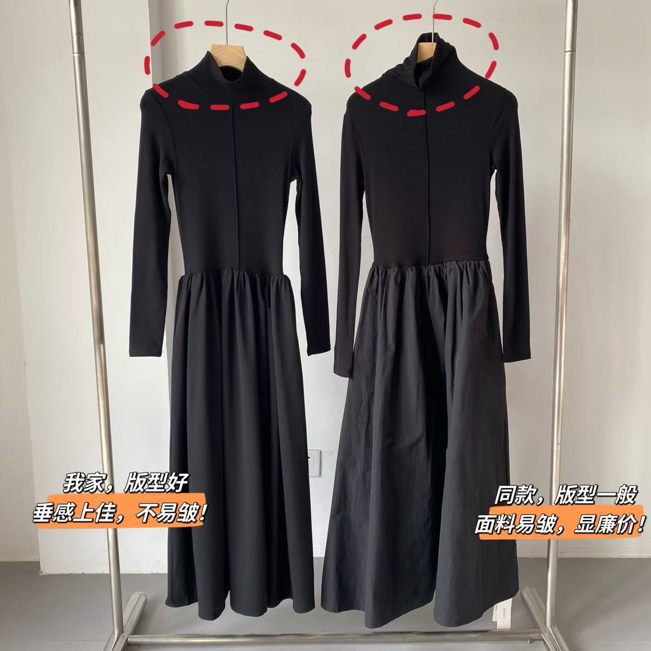 【王炸小黑裙】设计感中线半高领小黑裙 优质拉绒针织面料➕2米仿缎面裙摆 立体裁片,穿出小蛮腰