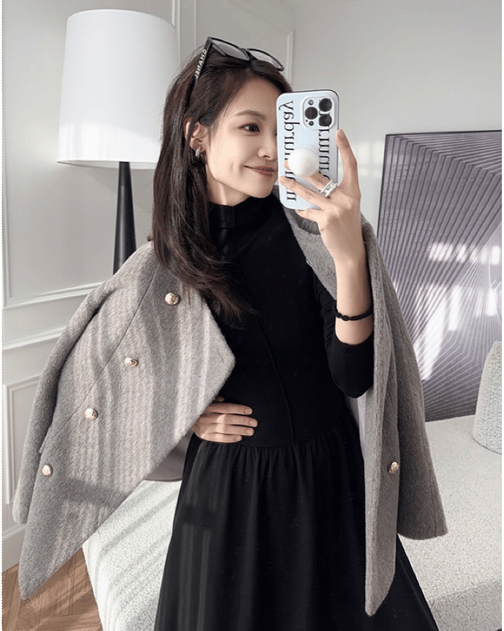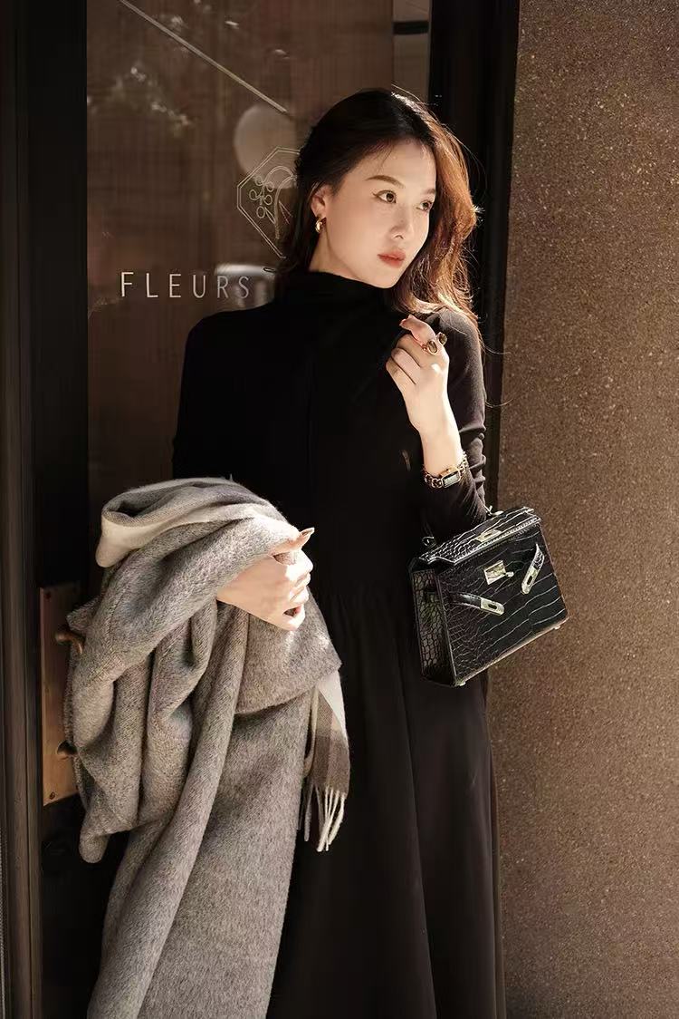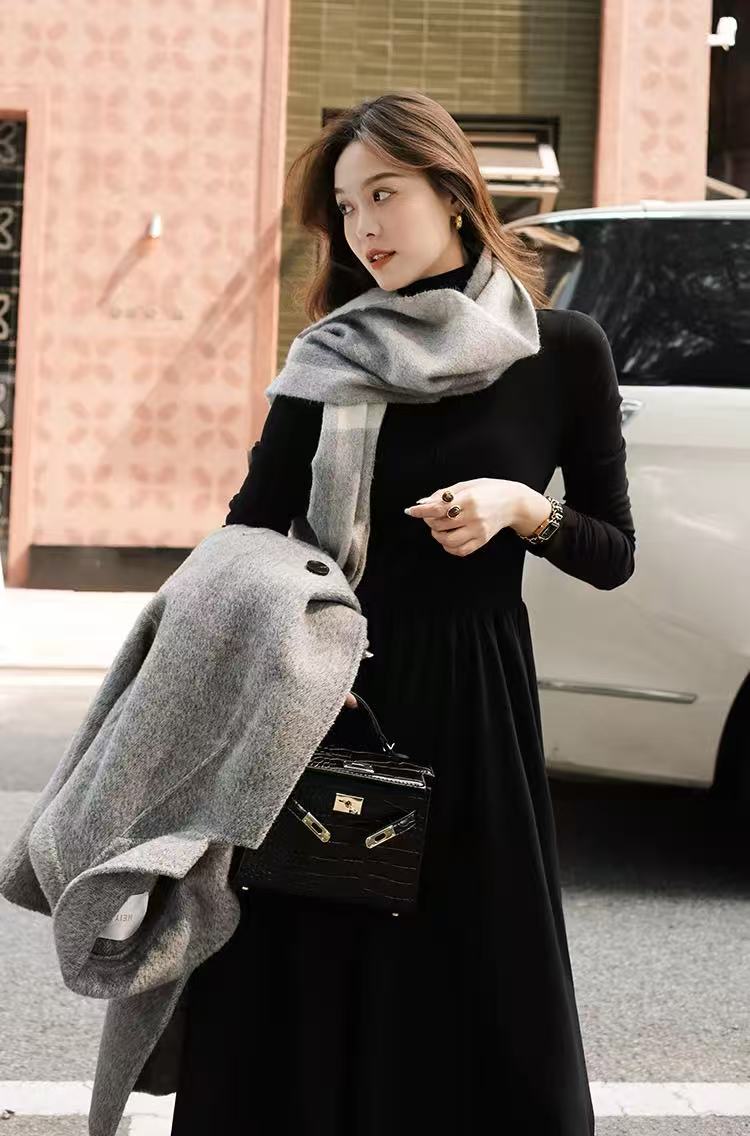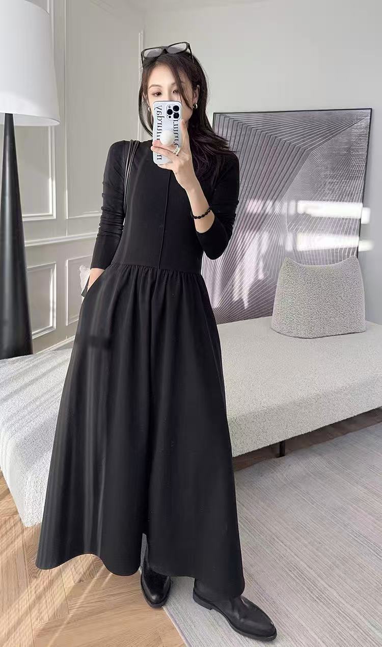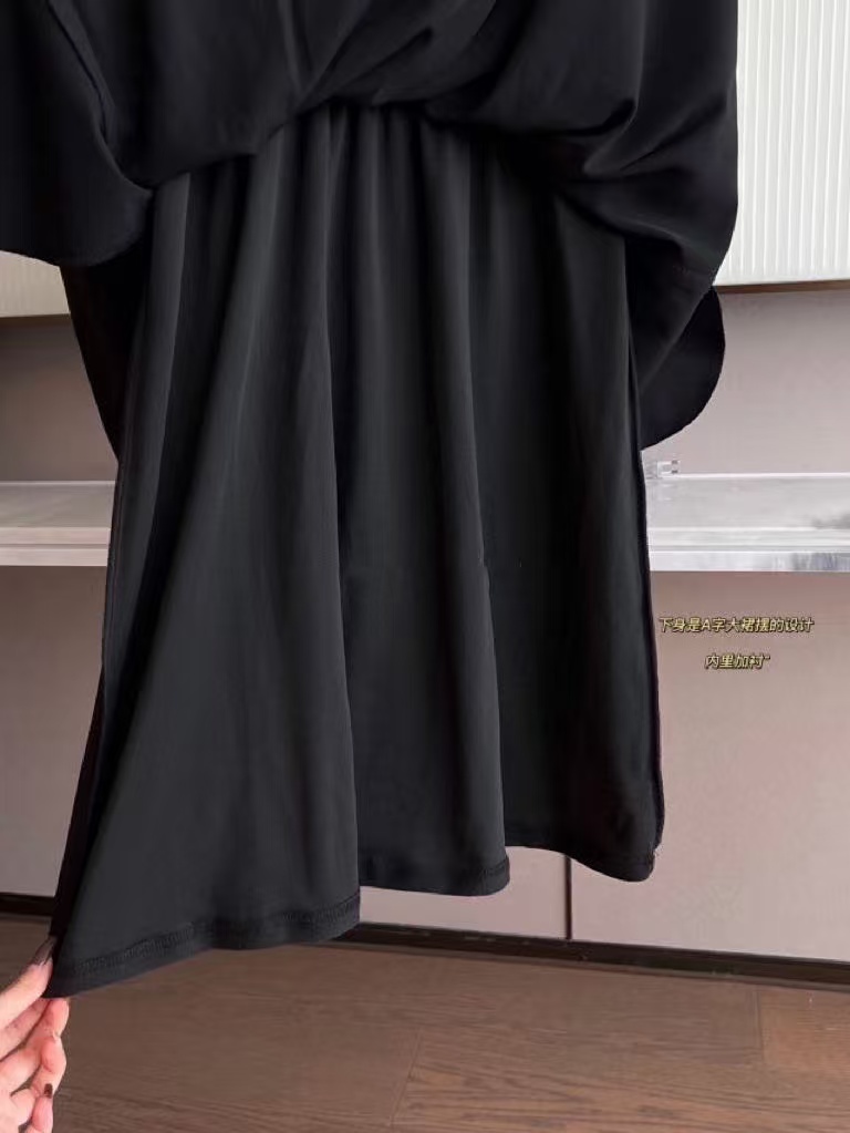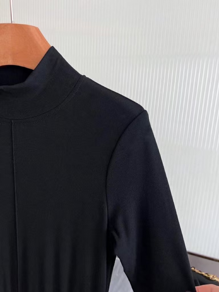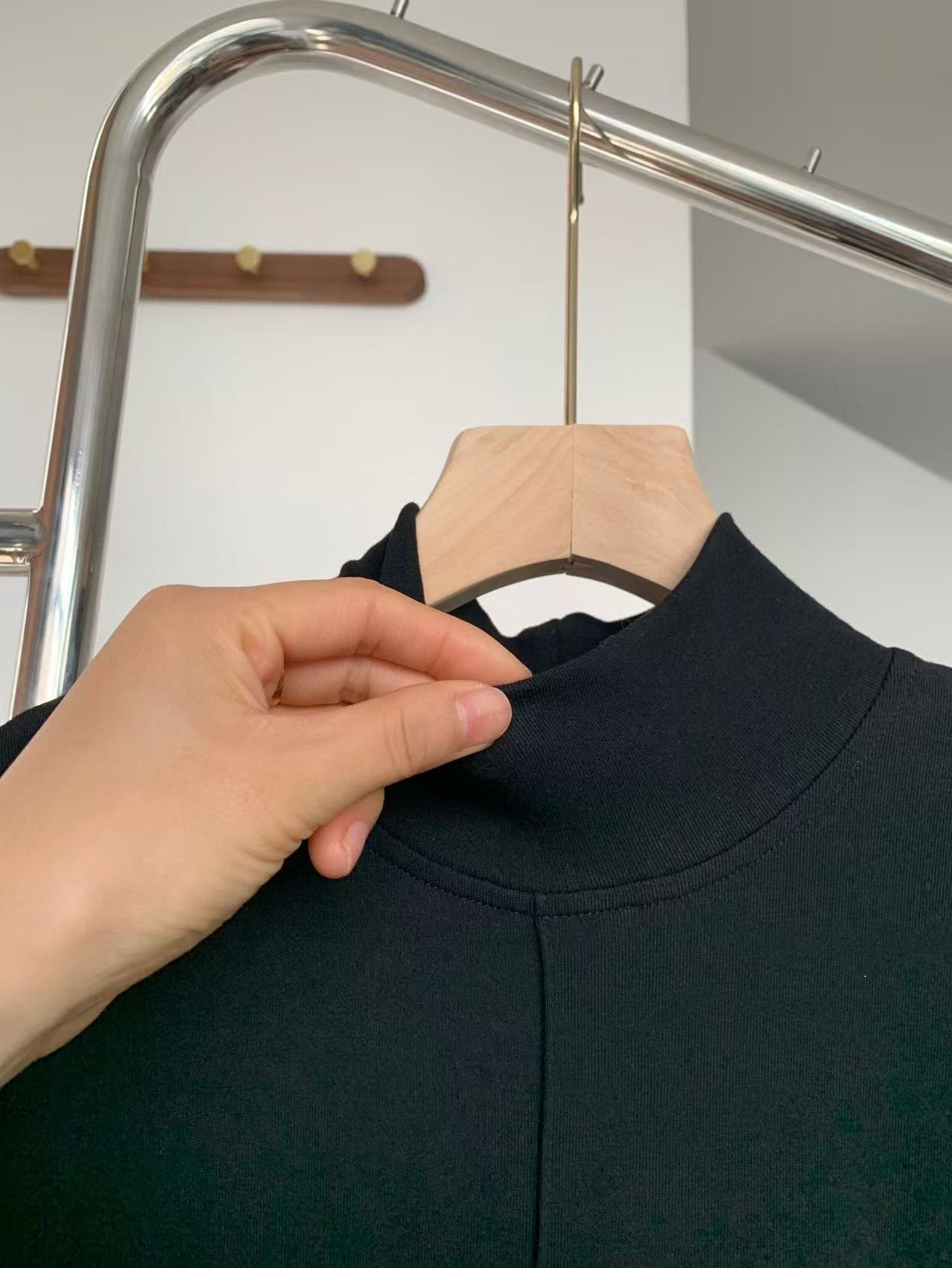 【王炸小黑裙】设计感中线半高领小黑裙 优质拉绒针织面料➕2米仿缎面裙摆 立体裁片,穿出小蛮腰