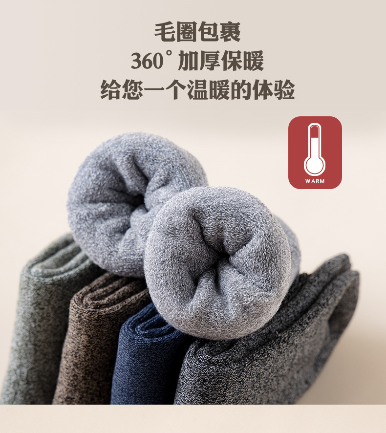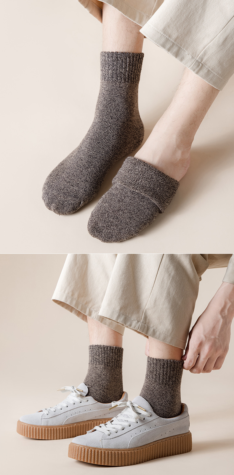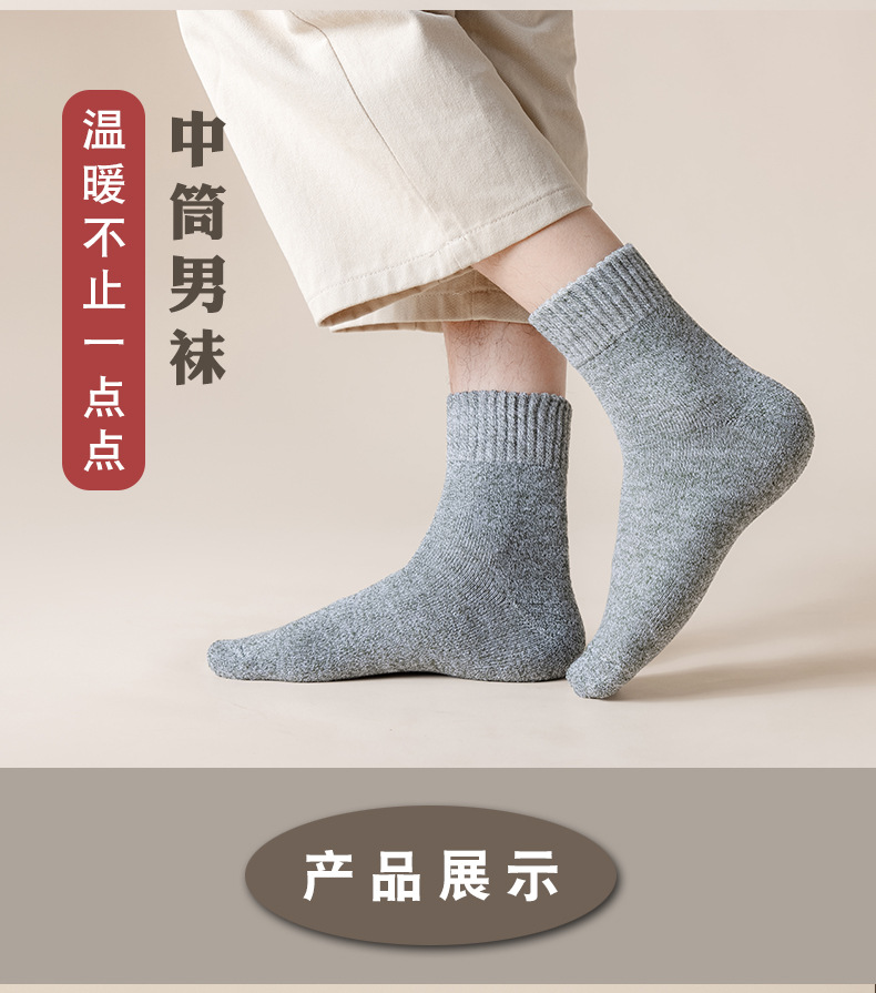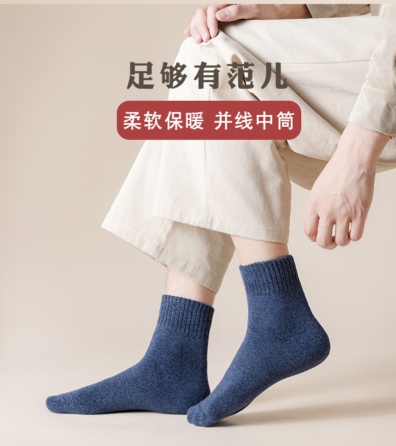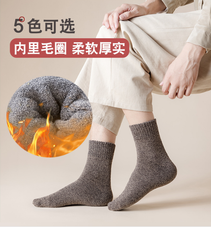 【5双装 加厚毛圈 保暖不臃肿】袜子男冬季毛圈袜加绒加厚纯色中筒袜并线毛巾袜保暖地板袜二杠袜