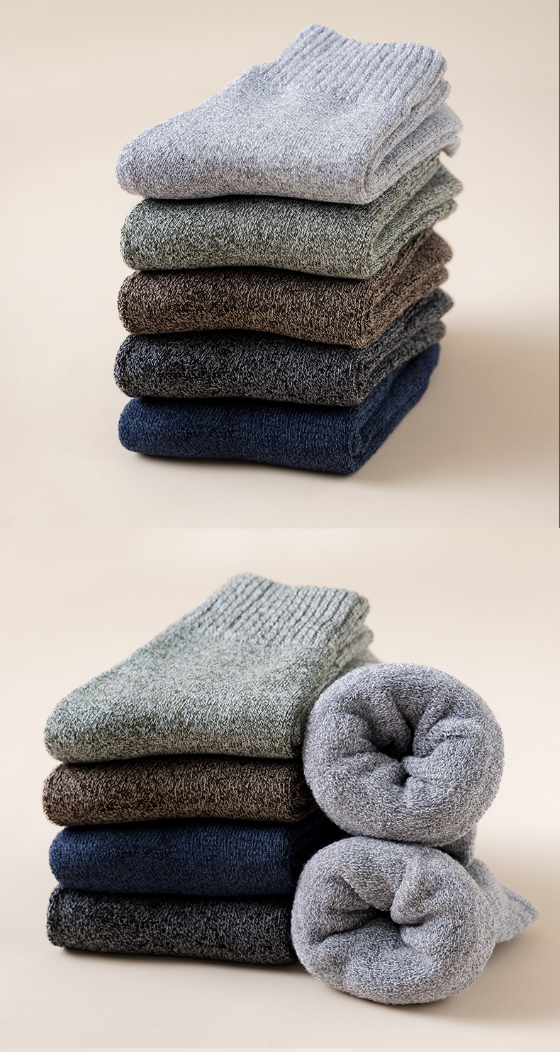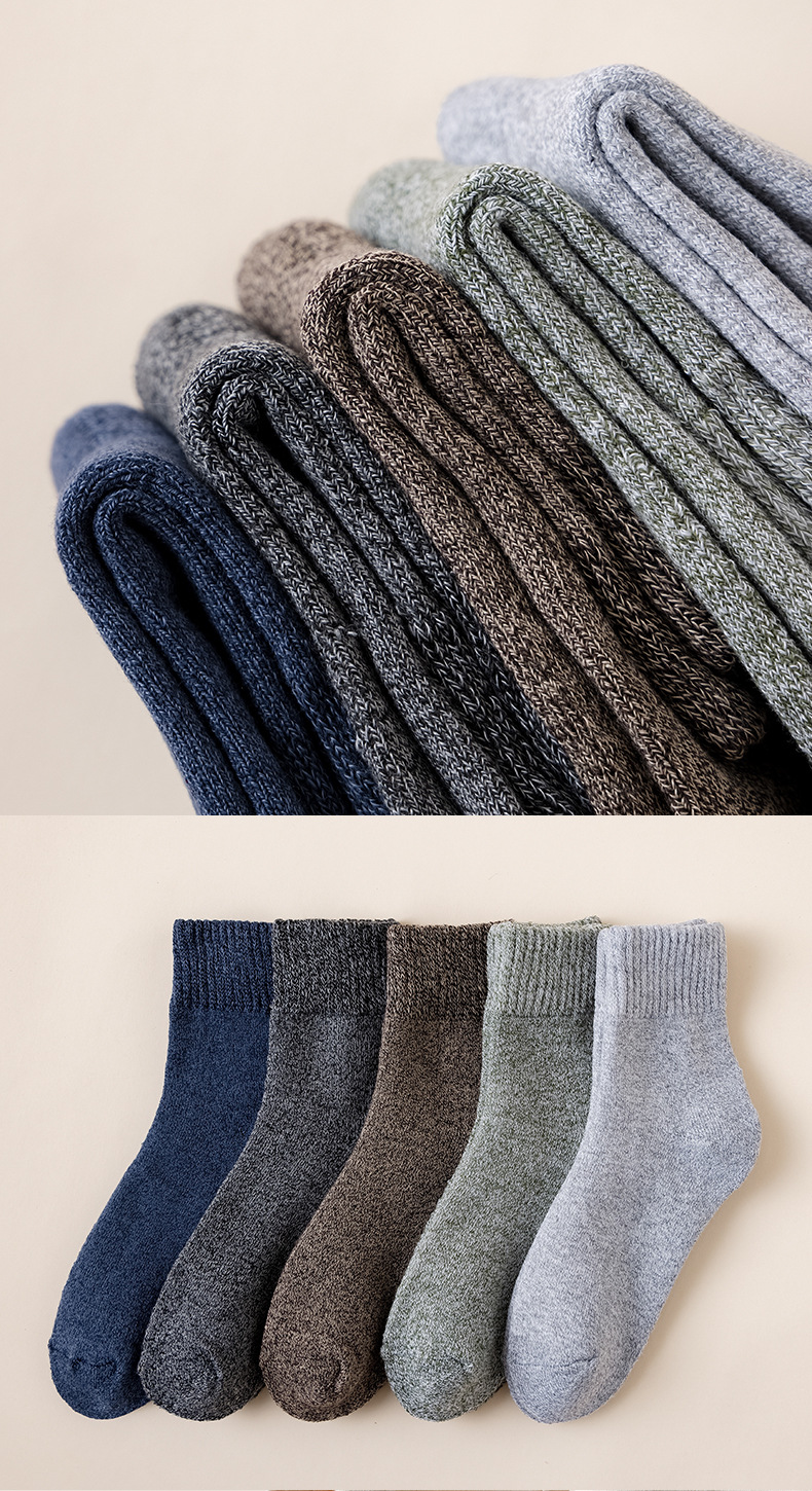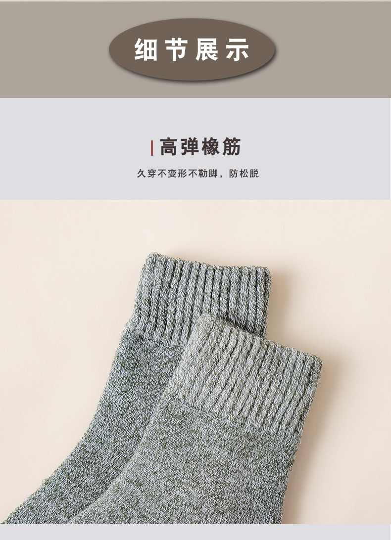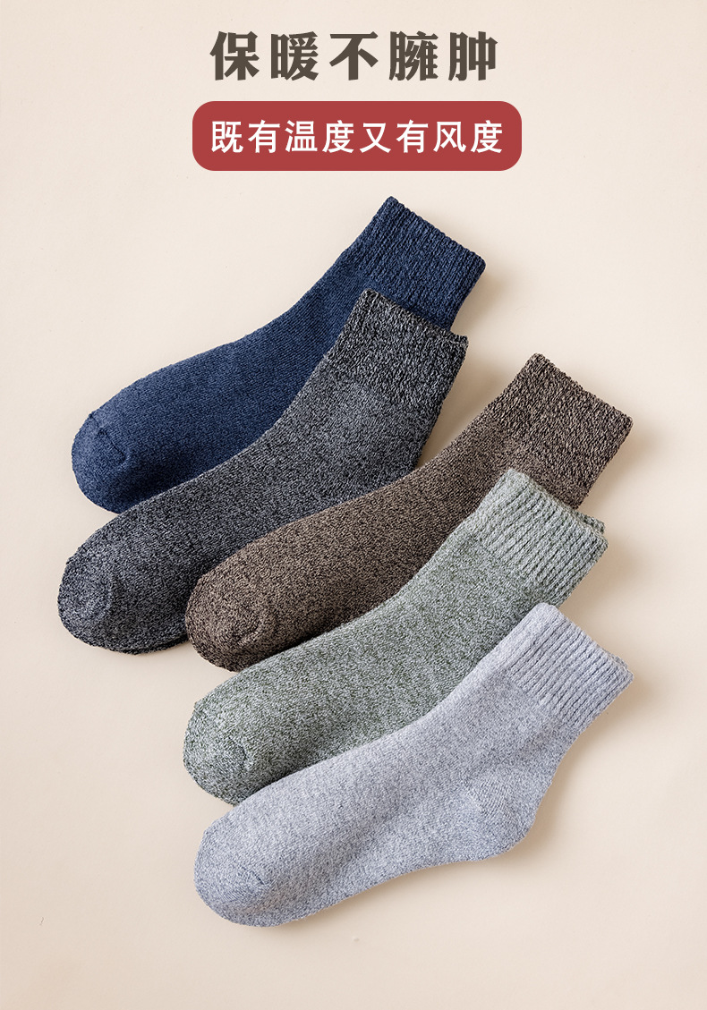 【5双装 加厚毛圈 保暖不臃肿】袜子男冬季毛圈袜加绒加厚纯色中筒袜并线毛巾袜保暖地板袜二杠袜