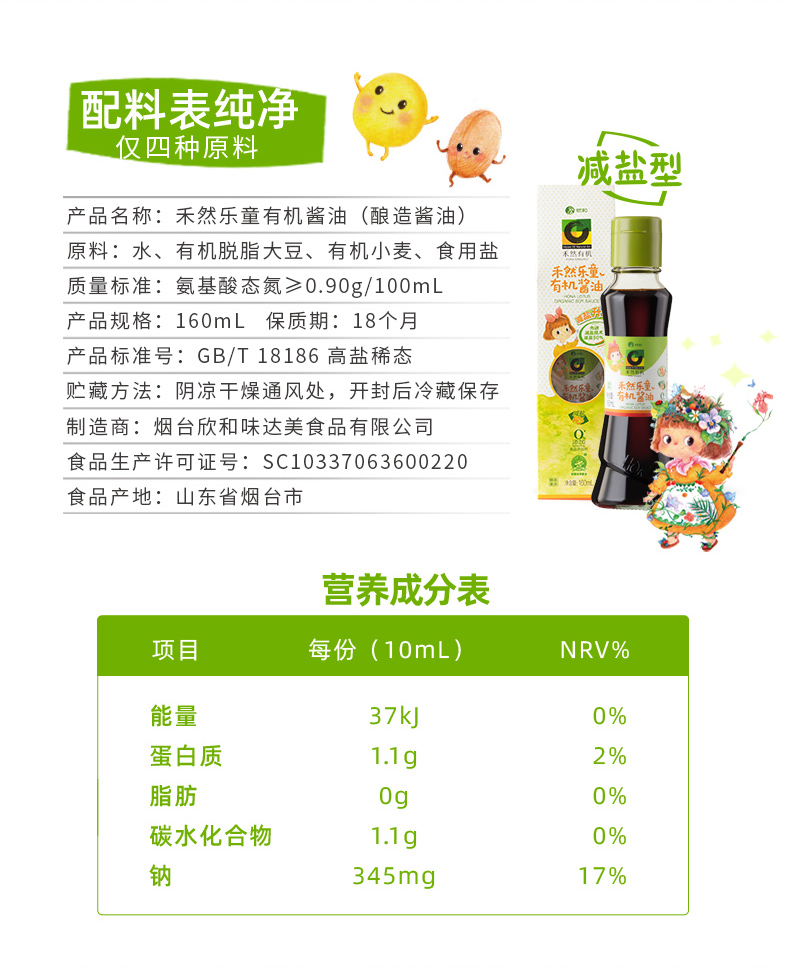 【下单即赠有机宝宝面条】禾然乐童有机酱油160ml