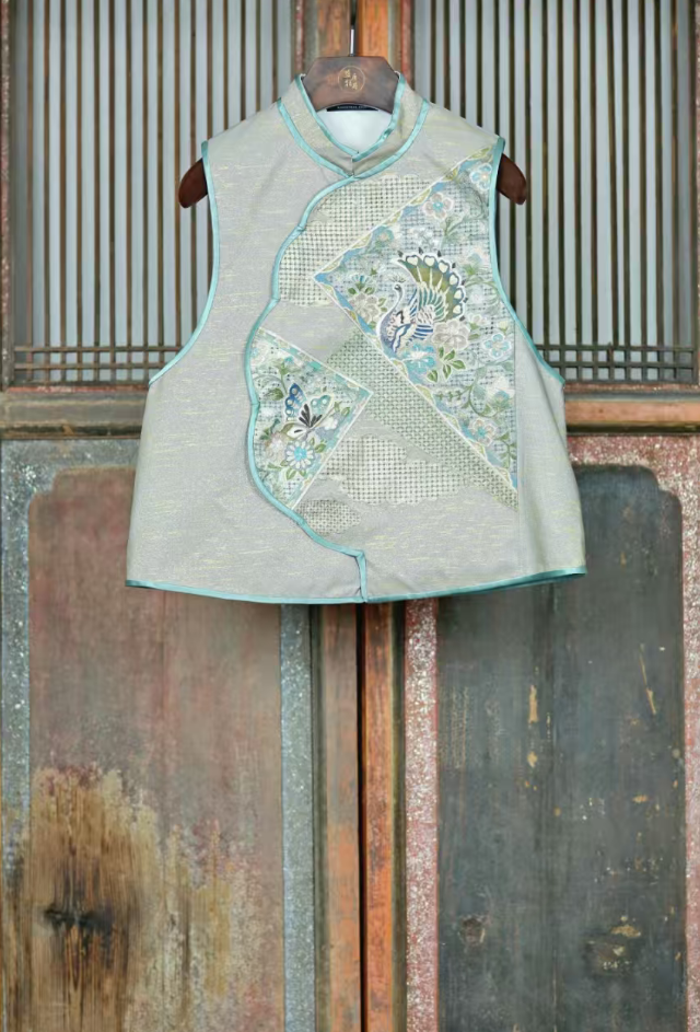 盛唐牡丹 |花锦缎喜鹊纹双面穿马甲