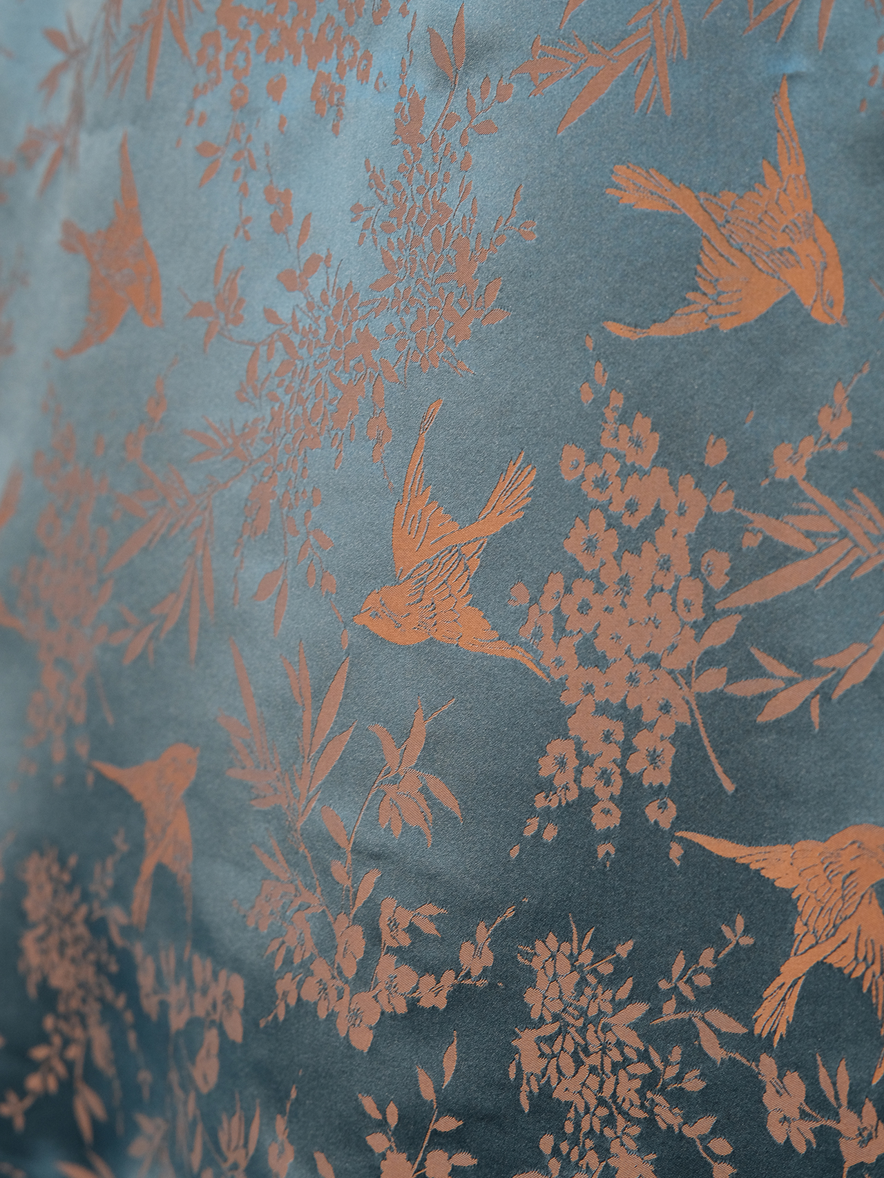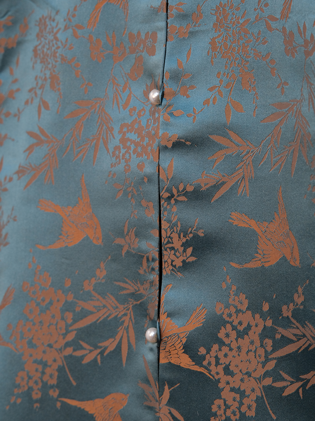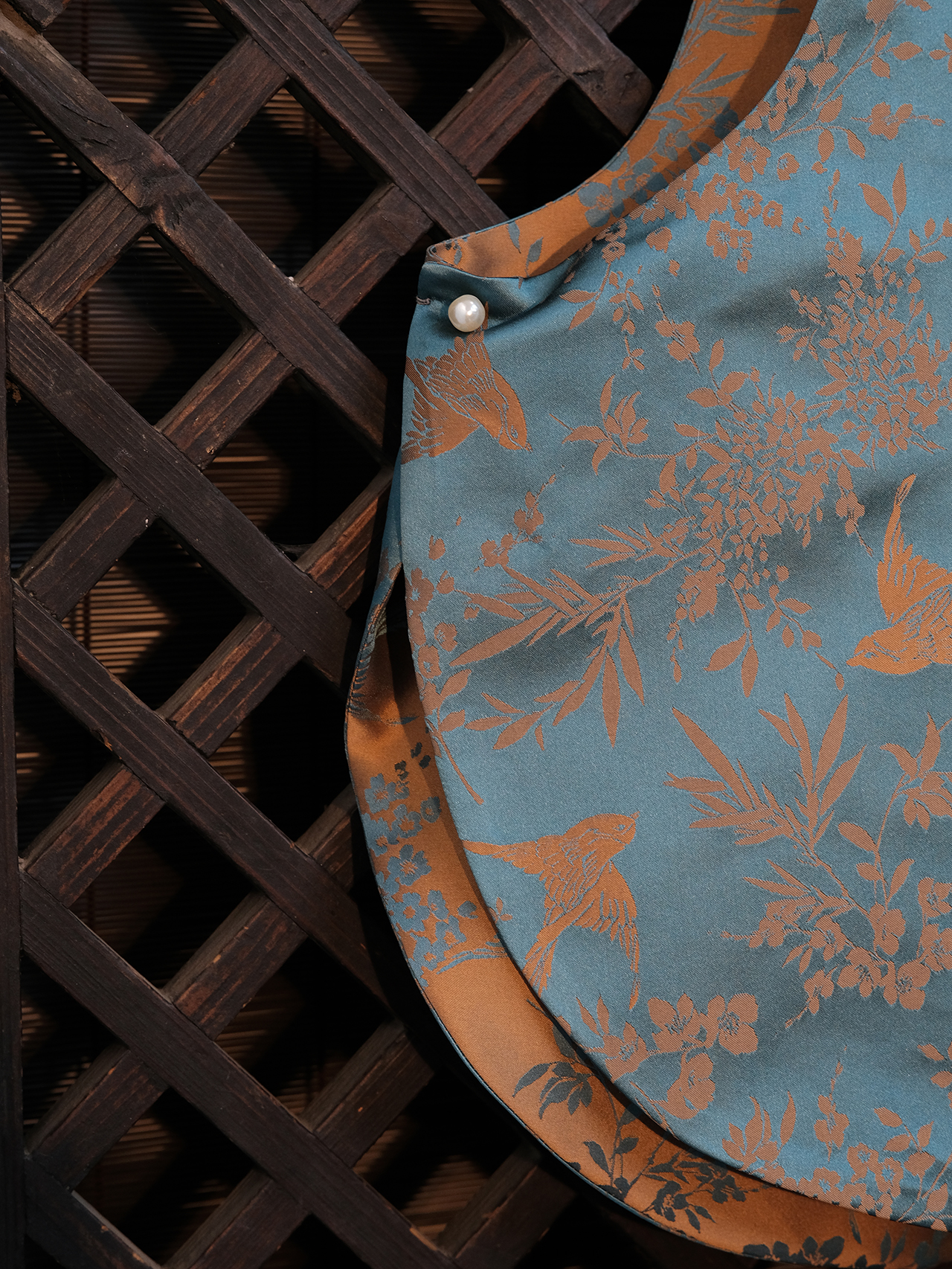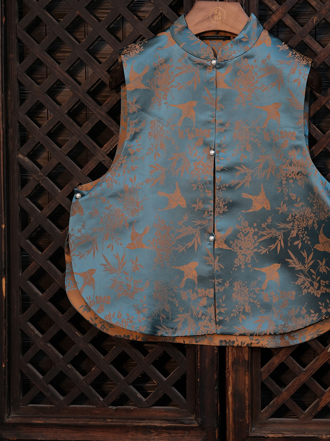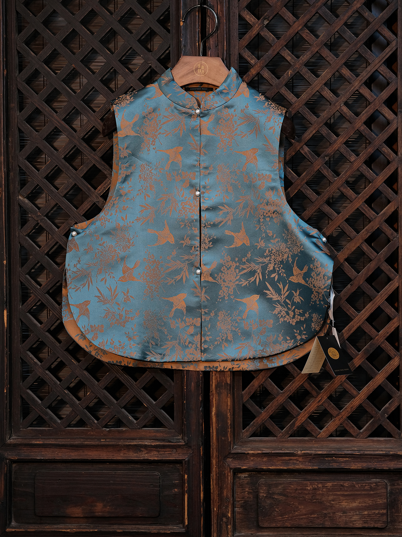 盛唐牡丹| 秋波蓝喜鹊纹花蕾缎马甲