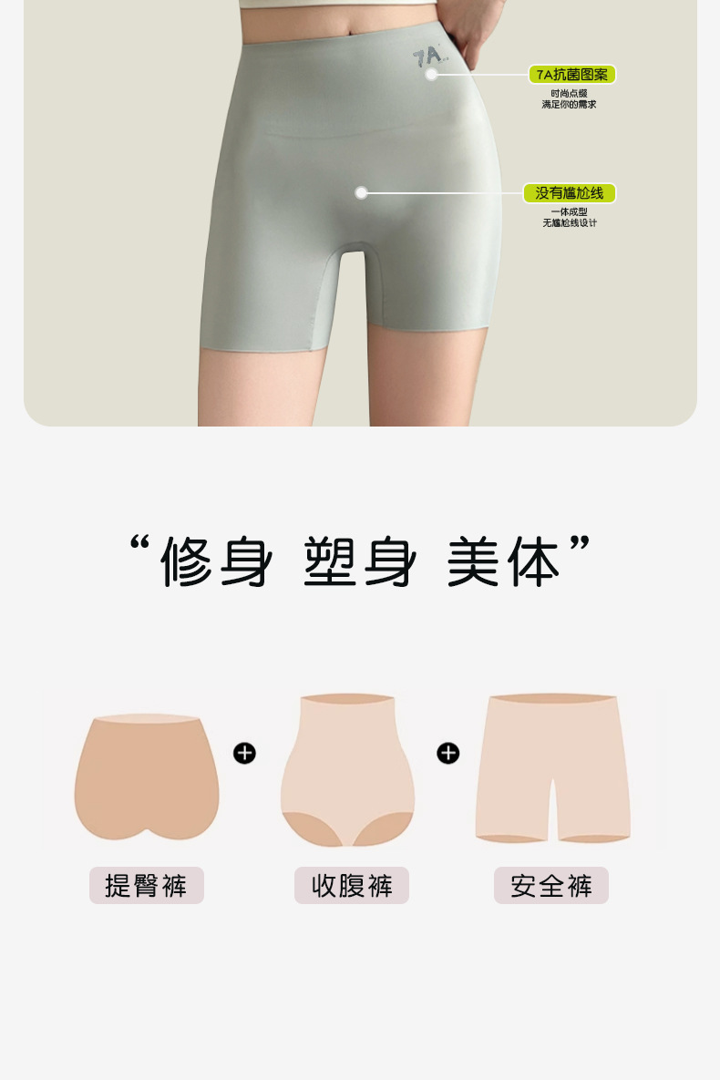 【一裤三穿❗冰丝无痕收腹内裤】高腰一片式无痕7A抑jun高弹,提臀微塑裤,3D桃心防夹臀, 提升臀型,不卷边不易变形耐穿好打理,桑蚕丝底裆提臀打底安全裤瑜伽裤女QQ
