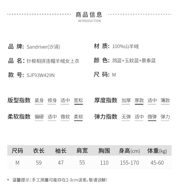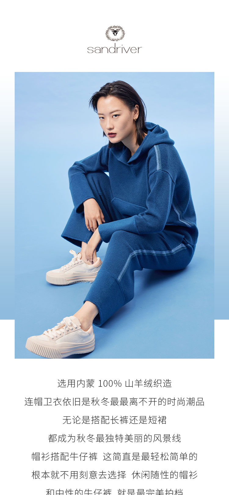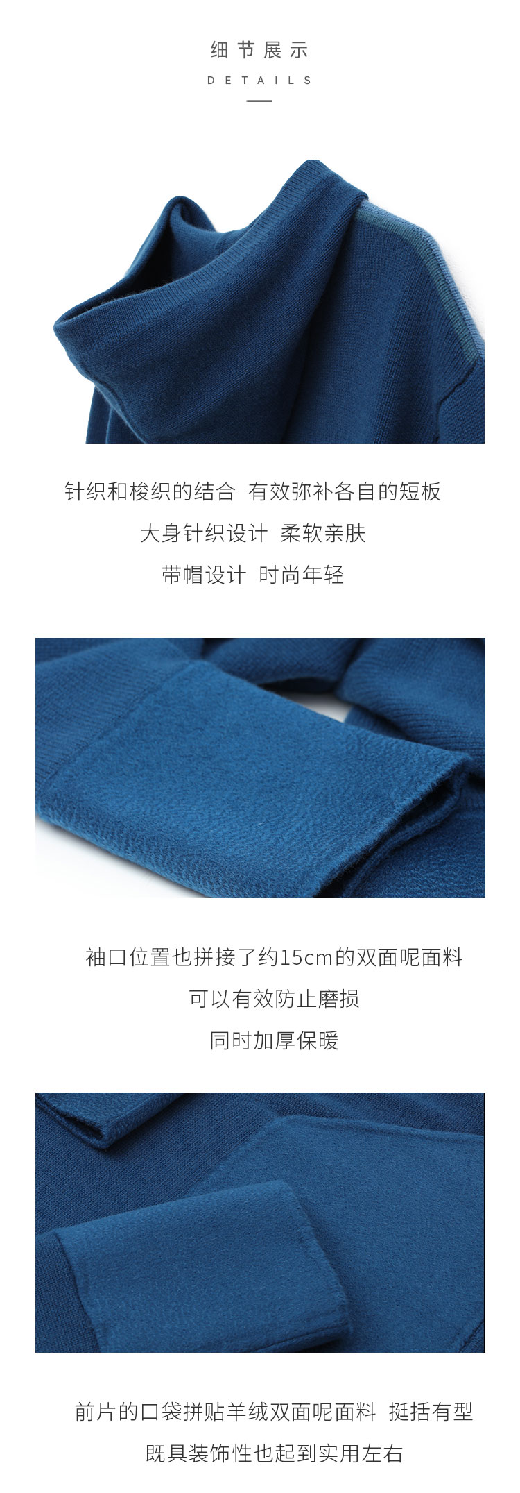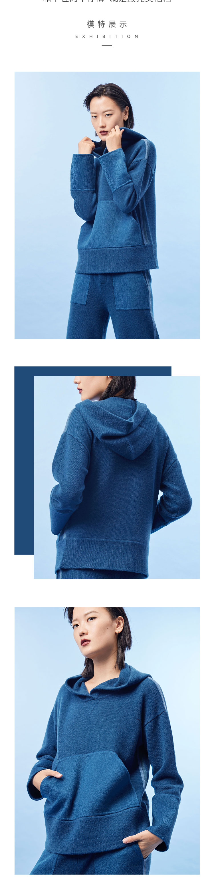 针梭相拼连帽羊绒女上衣 SJF93W429N