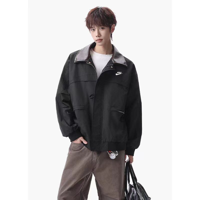 宽松版型 甄选优质防风面料 亲肤柔软立体剪裁 防风保暖 随性时髦外套可搭配任意下装 轻松凹造型 显瘦显高 男女jun可完mei驾驭!