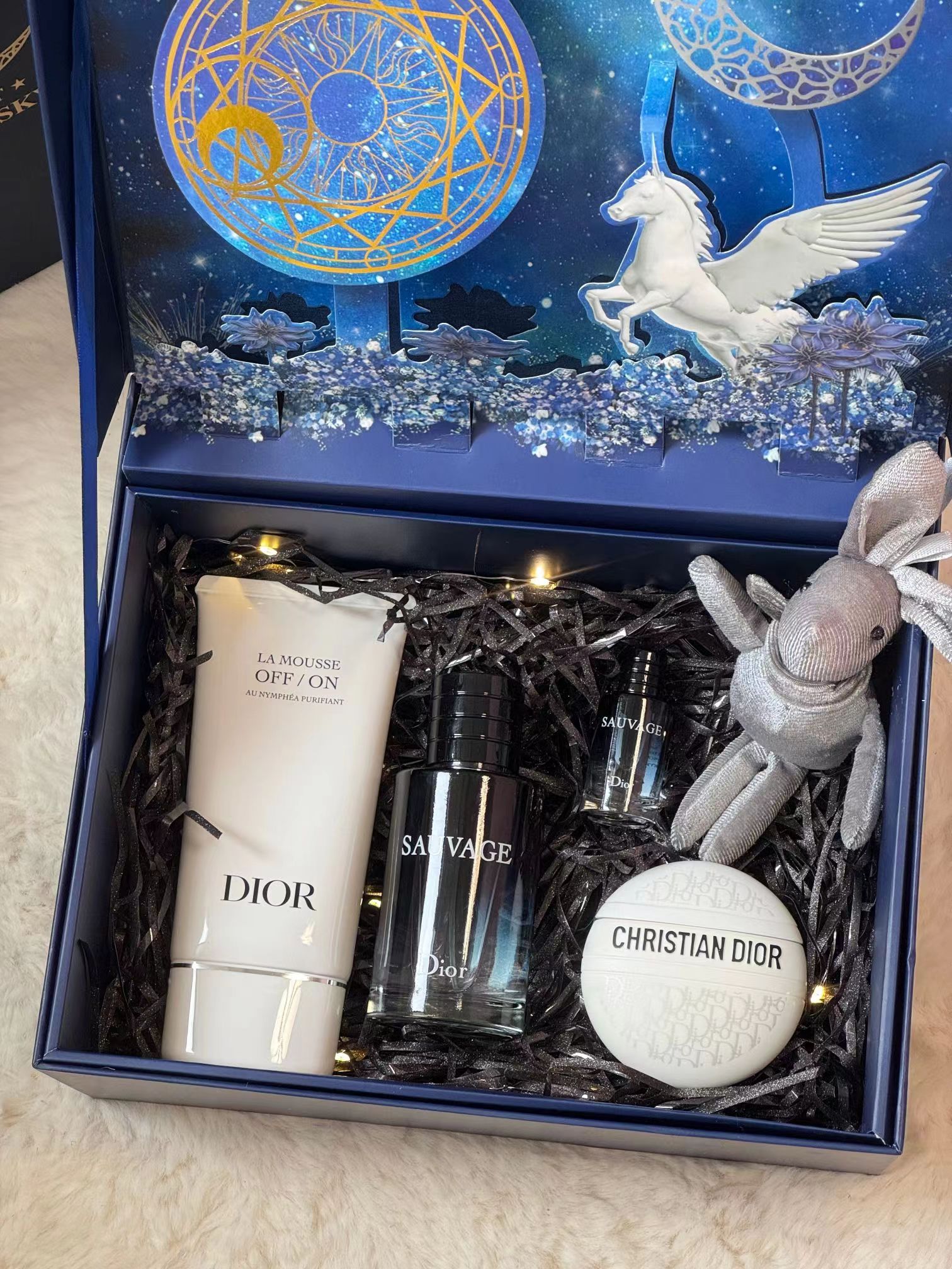 香水磁吸盖子!圣诞节日里男同胞的礼物 这次必须来一个,爱不是负担,而是你用心对我,男人虽然外表坚强,但是内心也想被那个她重视喔~有心的人都是提早准备的:精美礼盒 送他更体面?爱要大声说出来 新一代表白利器幸福感爆棚。内含:洗面奶150ml正装+旷野香水100ml正装+护手霜正装+香水小样7.5ml+小兔子+灯串+拉菲草!真的一眼上头!开盖即是jing艳!真的是一套齐活了!限定礼盒喔!要给身边男士送礼物的抓紧啦