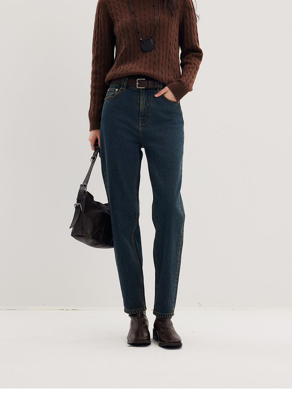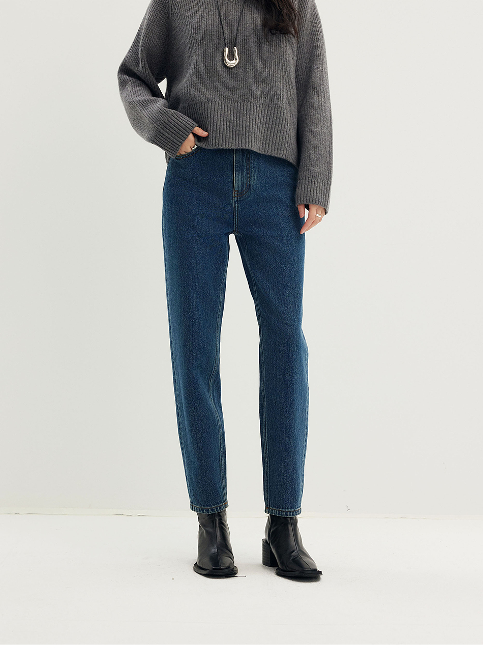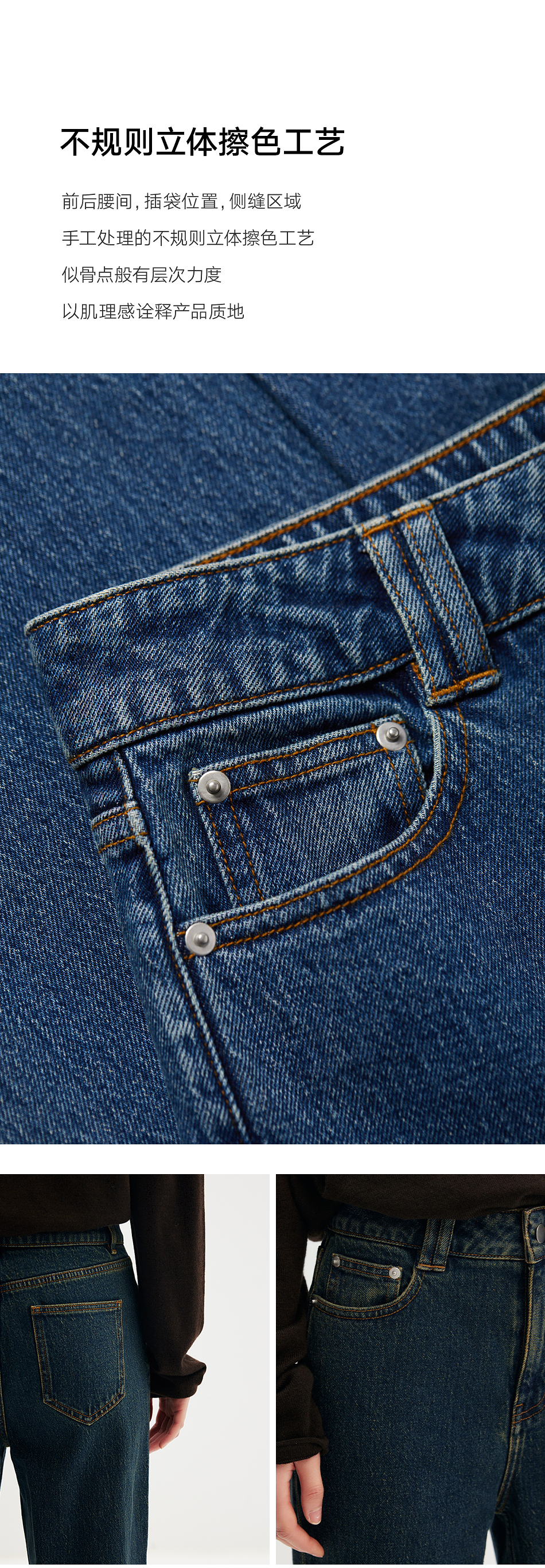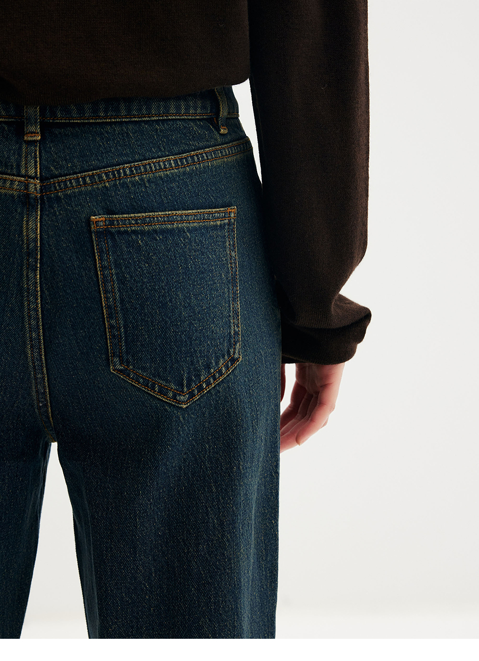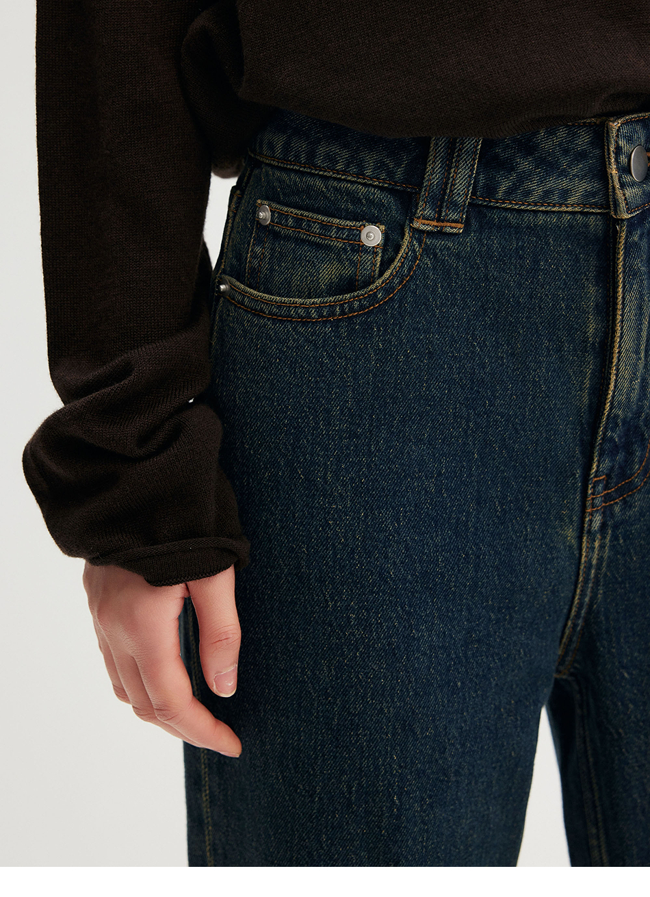 棉仓356619010-大理石纹marble盐缩棉感斜纹复古陨石灰蓝牛仔裤九分牛仔裤