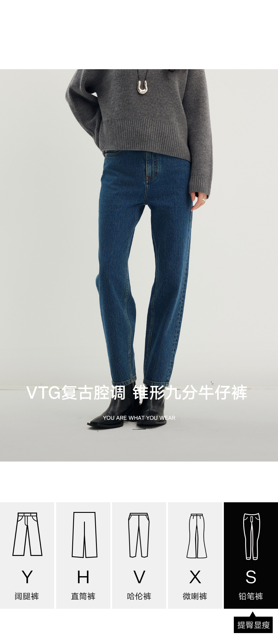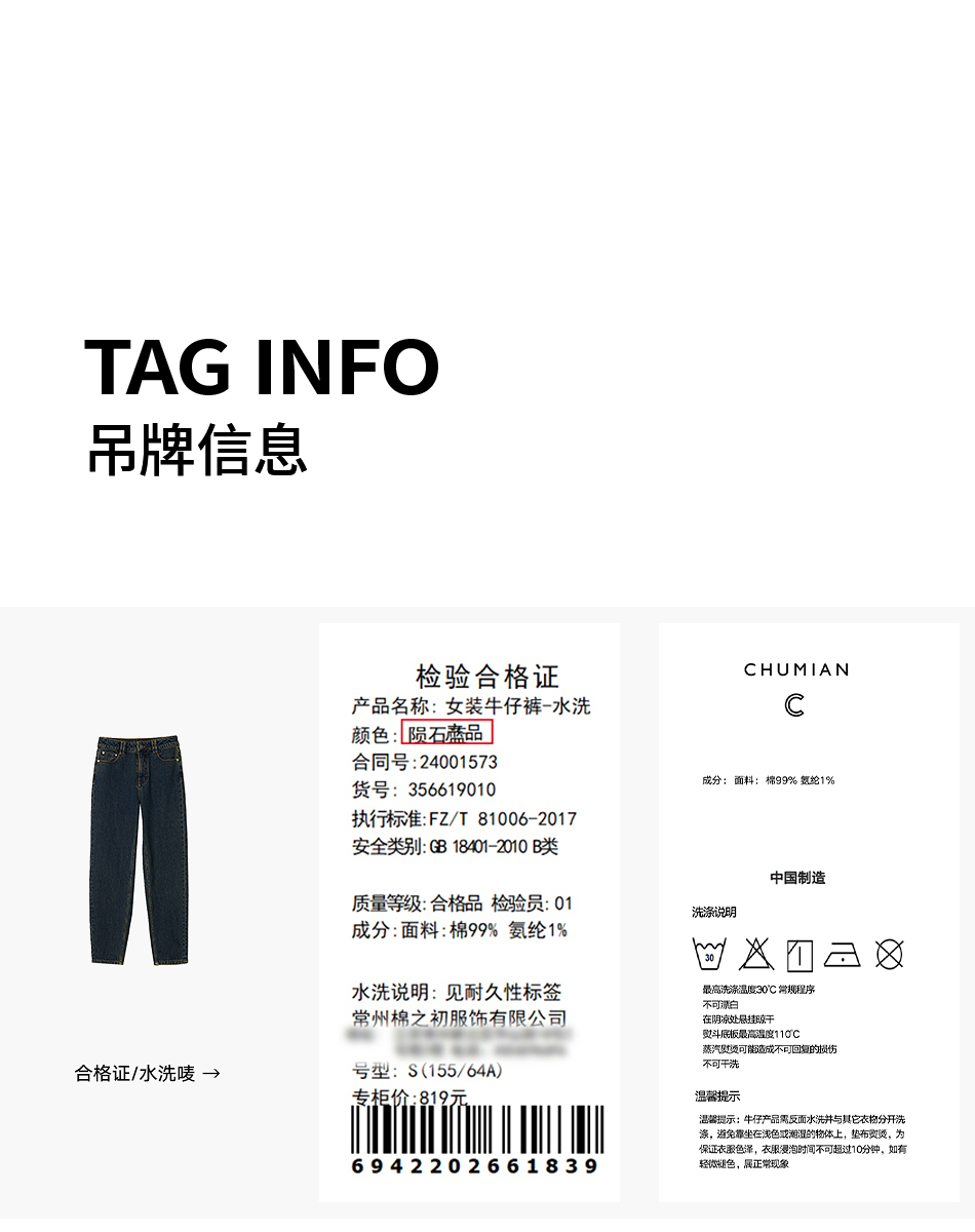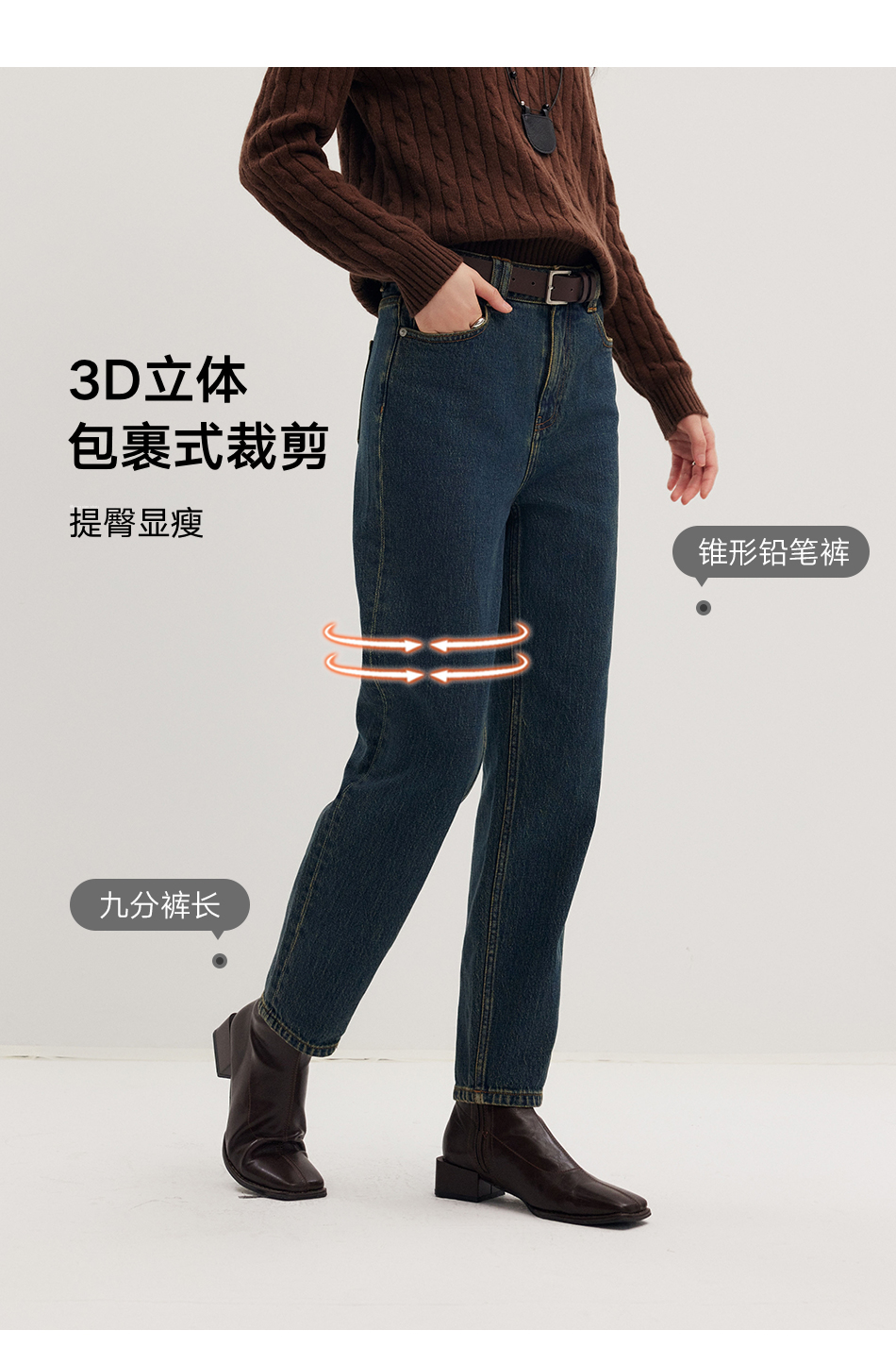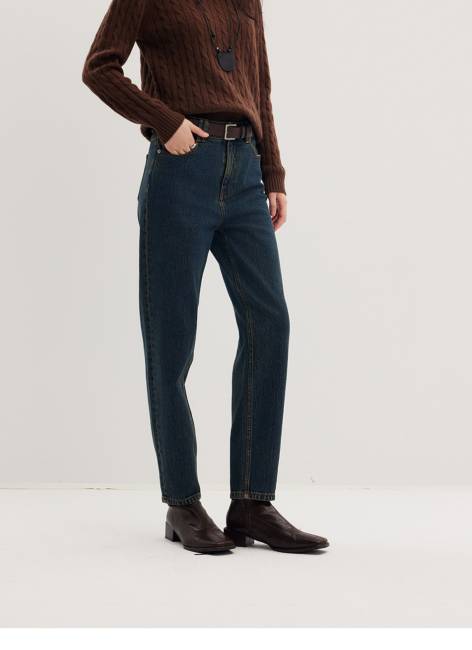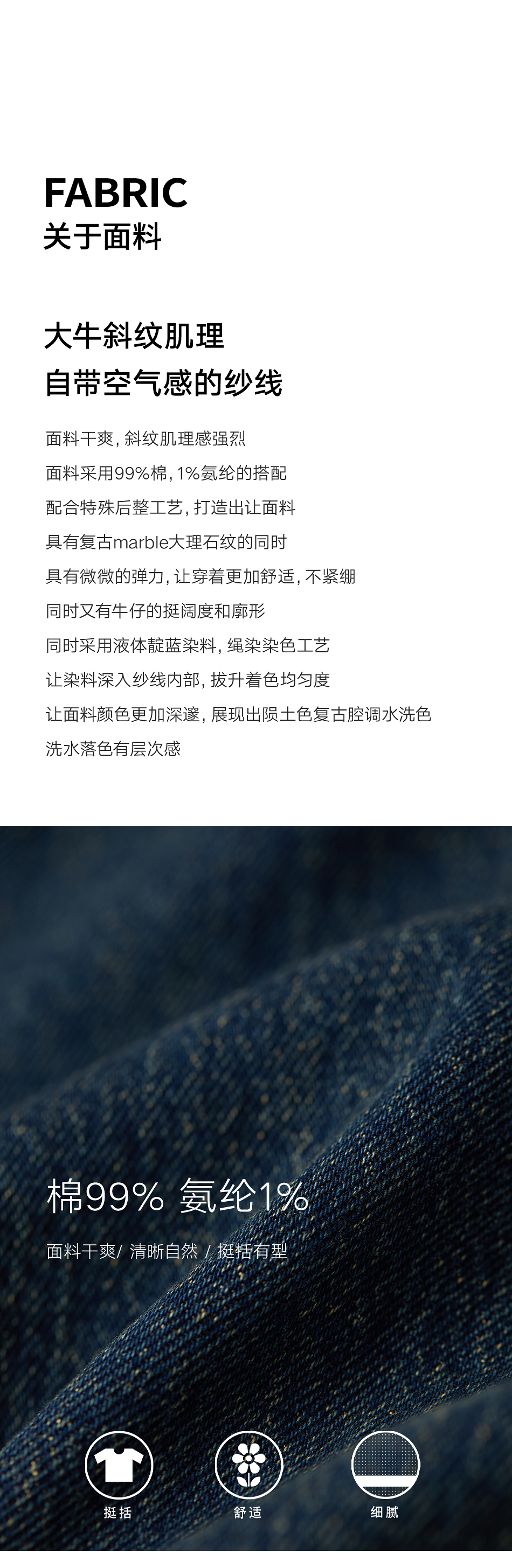 棉仓356619010-大理石纹marble盐缩棉感斜纹复古陨石灰蓝牛仔裤九分牛仔裤