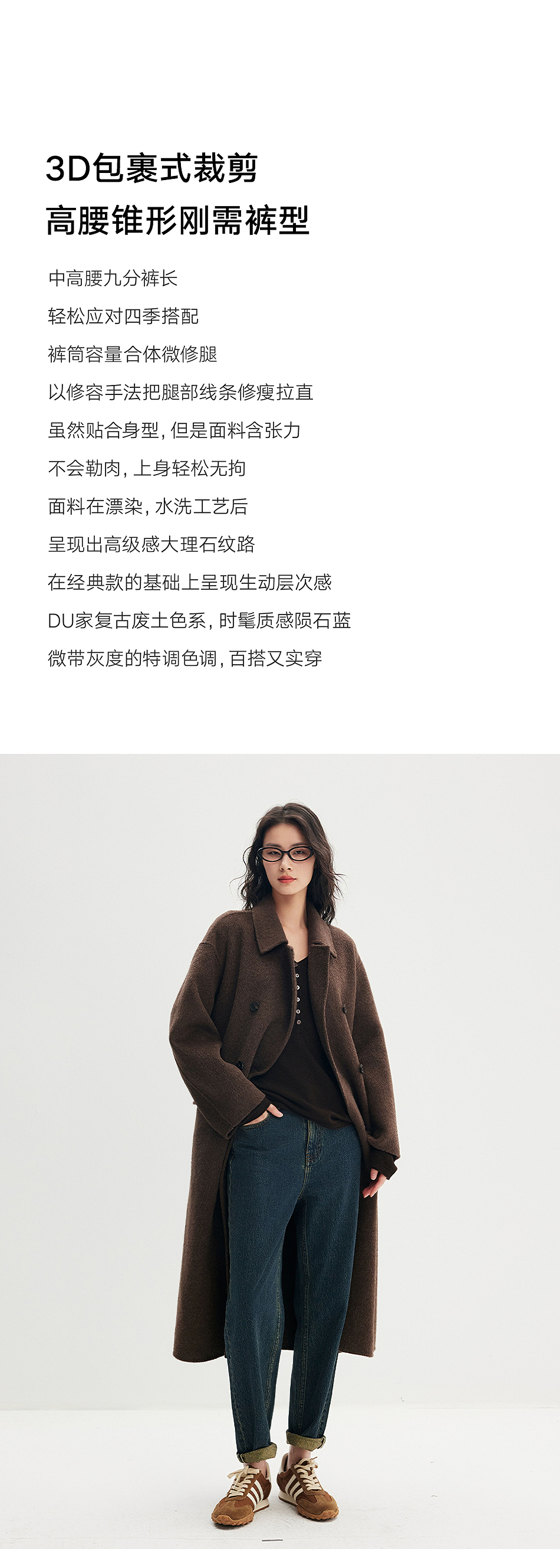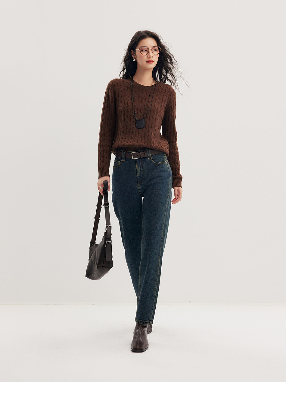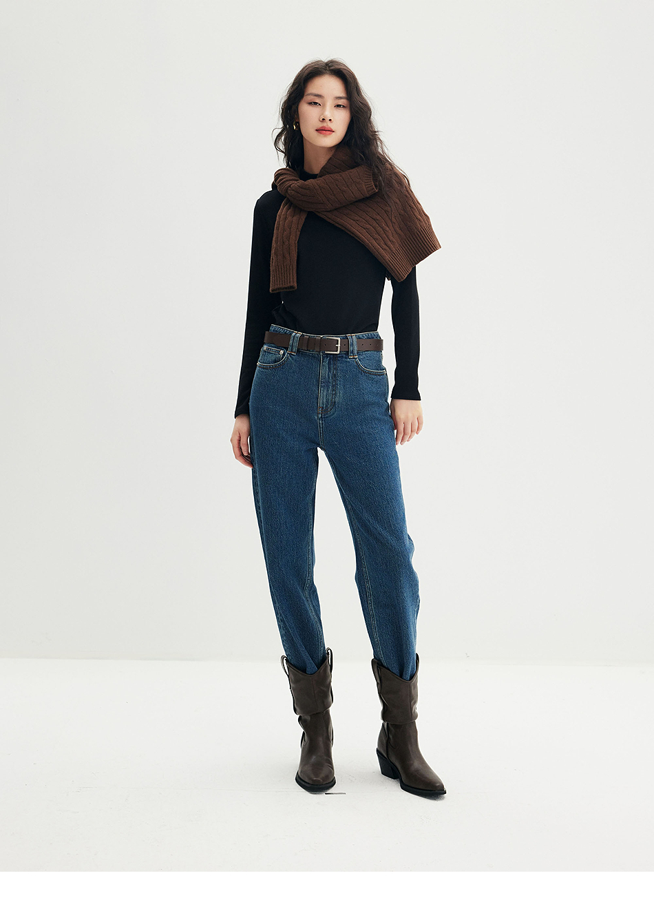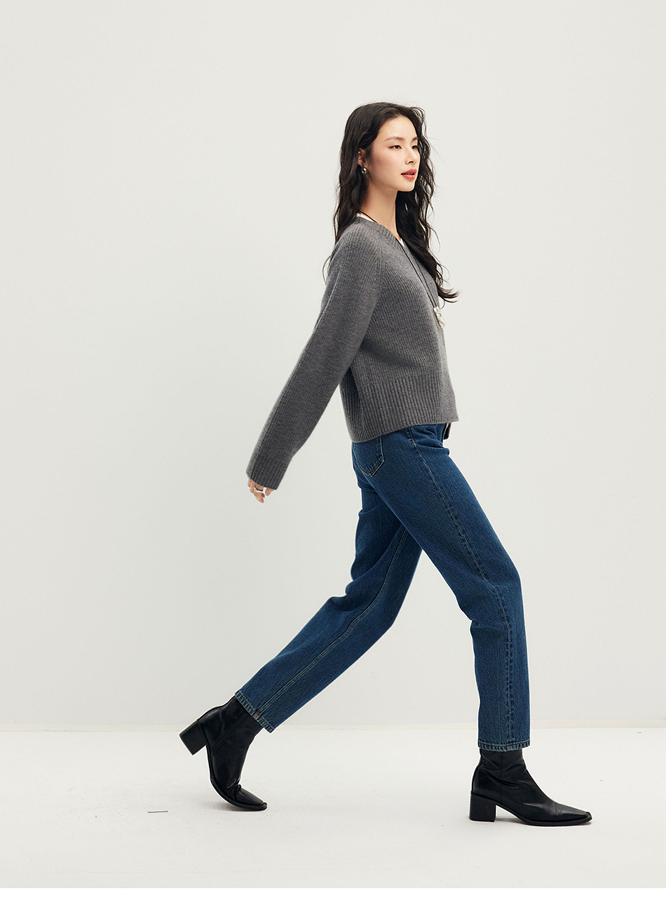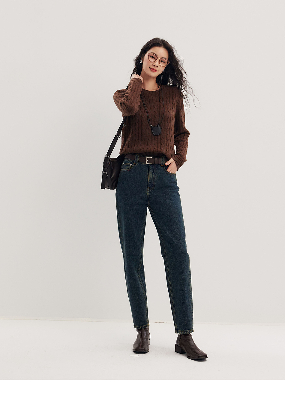 棉仓356619010-大理石纹marble盐缩棉感斜纹复古陨石灰蓝牛仔裤九分牛仔裤