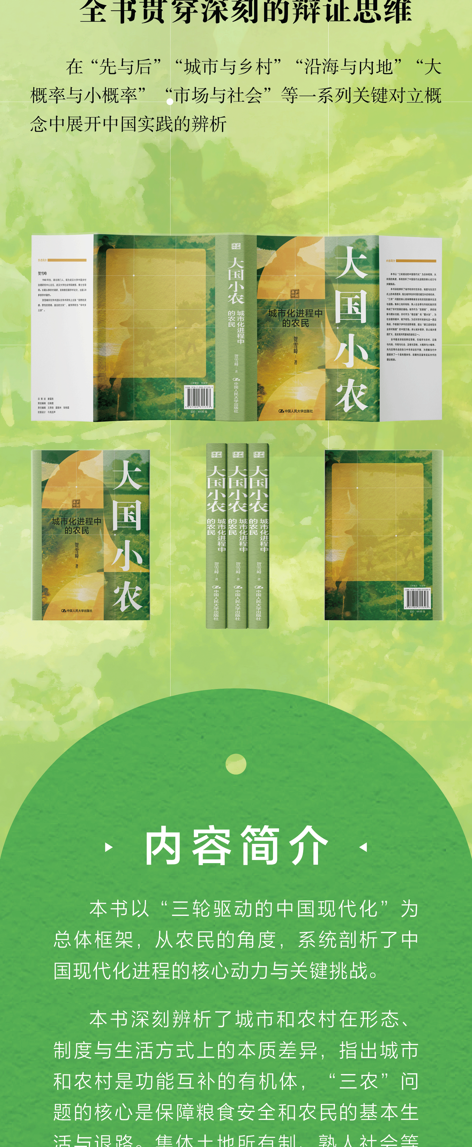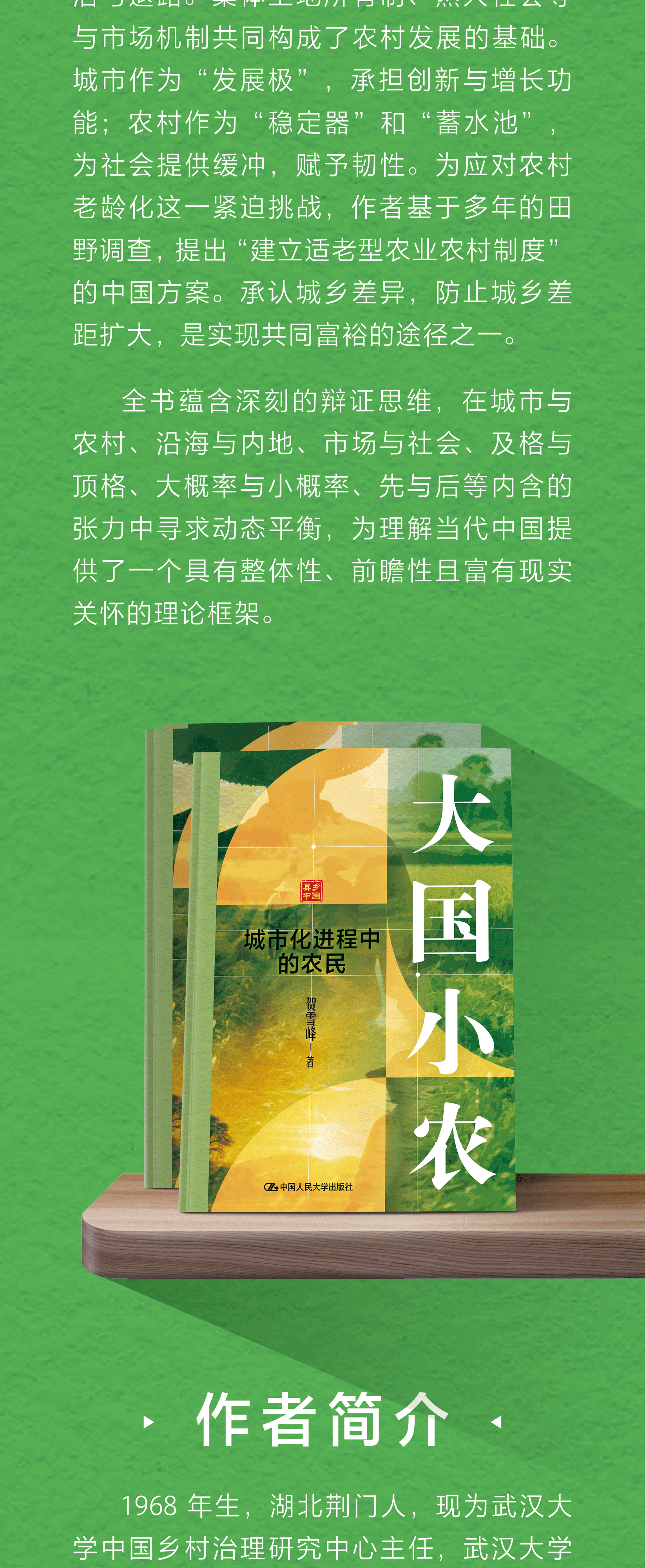 大国小农:城市化进程中的农民 作者:贺雪峰 书号:315393 定价:¥69 元 字数:196 千字 印次:1-1 开本:大32 出版时间:2026-01-15 ISBN:978-7-300-31539-3 包装:平