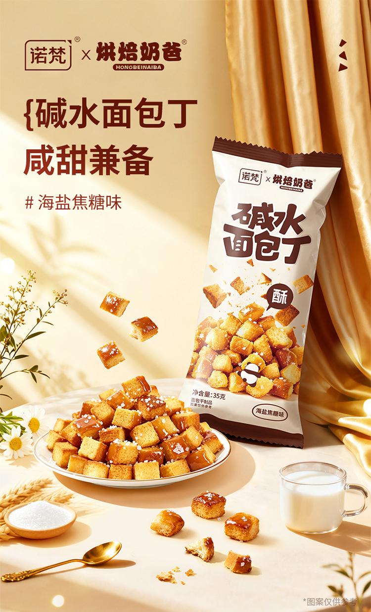 诺梵碱水面包丁海盐焦糖酥脆非油炸袋装办公室休闲网红零食