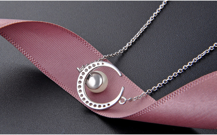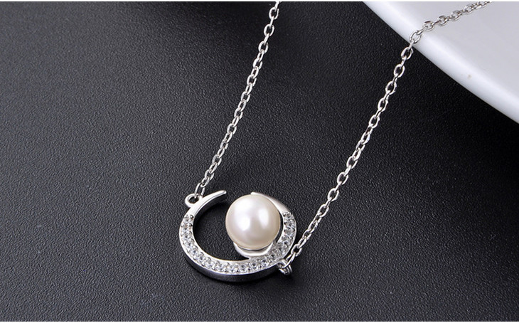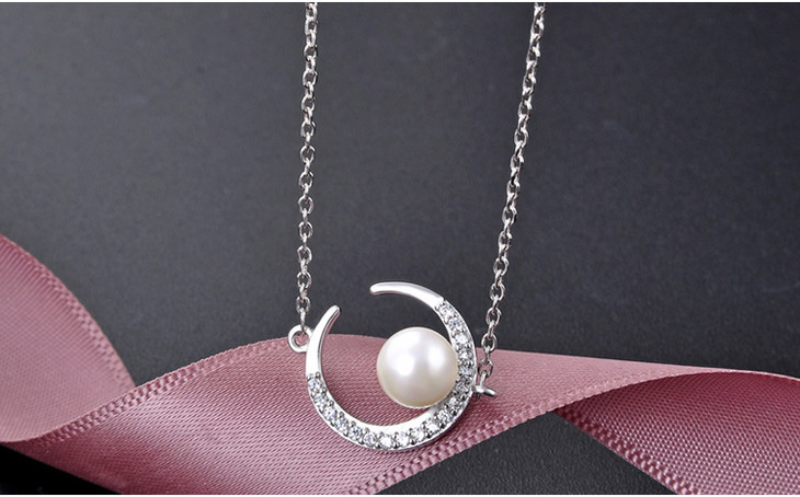 【首饰】s925纯银月亮项链时尚镶钻贝珠吊坠锁骨链