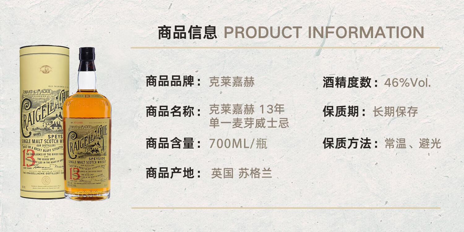 【行货】苏格兰 克莱嘉赫 13年 斯贝塞 单一麦芽威士忌