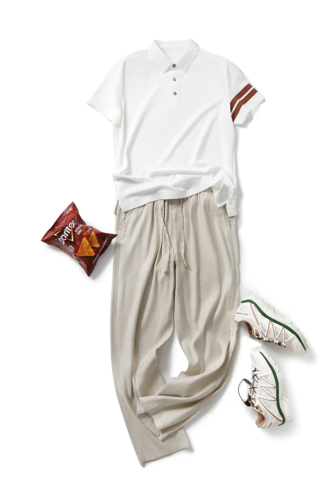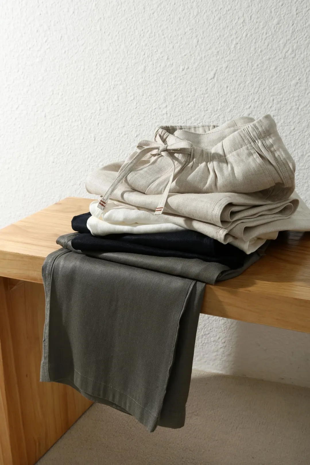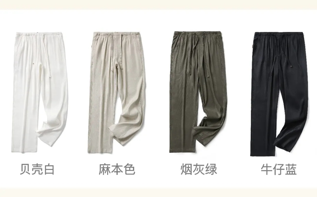 【msy-HB188#】羔端男子夏日弹力麻直筒休闲长裤!!