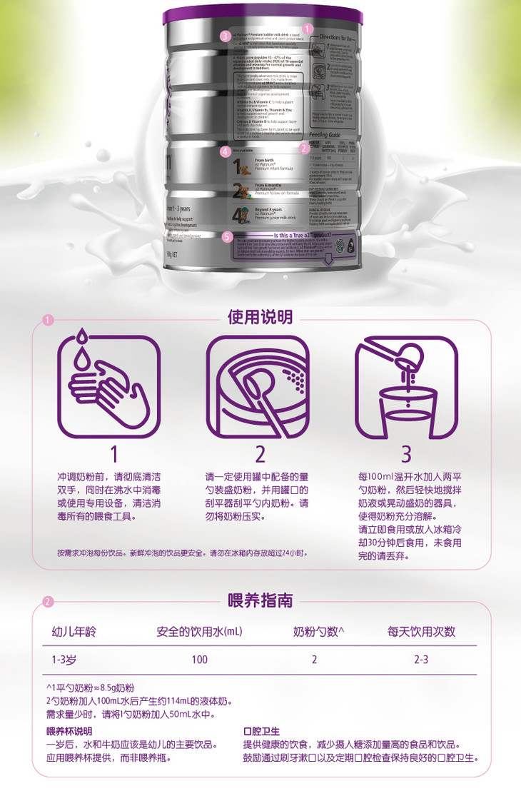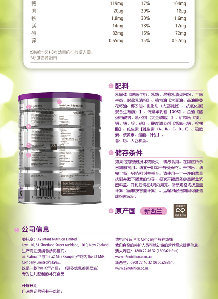 【包邮保税区直发】澳洲 A2白金3段婴幼儿奶粉 900g(1-3岁)新旧包装随机