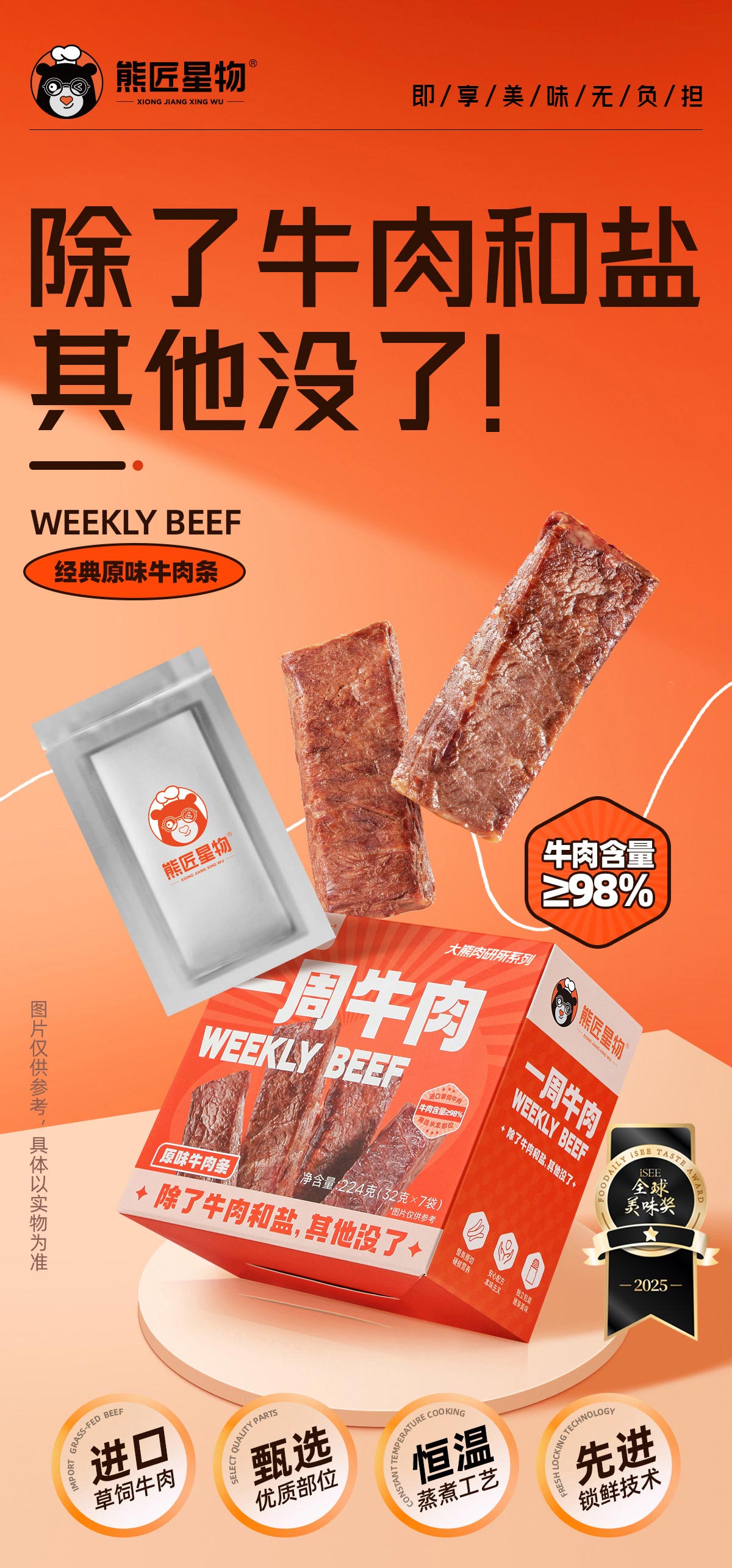 熊匠星物 口袋牛肉 一周牛肉条 224g/盒(7条)丨零食