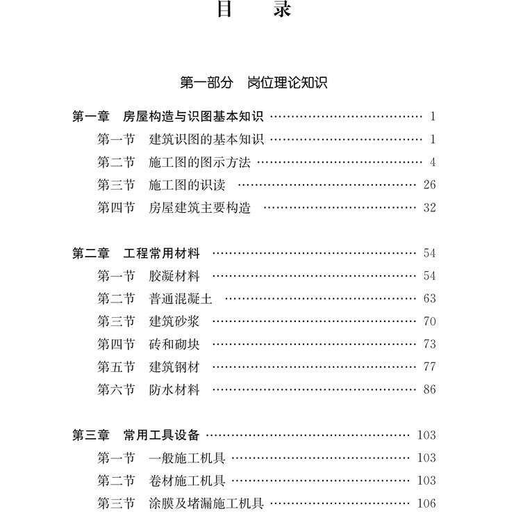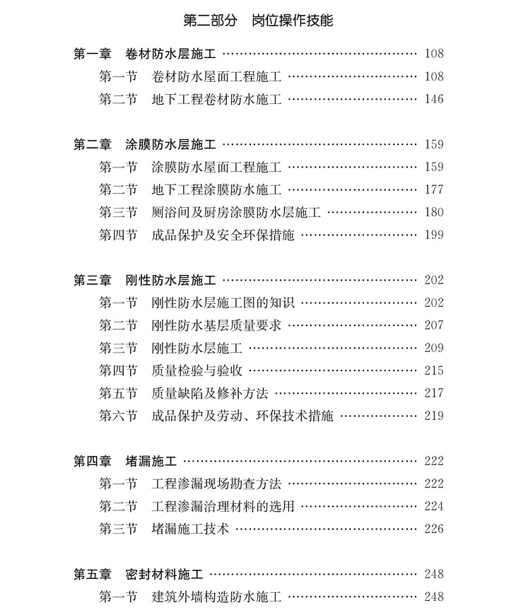 技能为核心”的指导思想,力求理论与实践相结合,浅显易懂,便于学习掌握。本书可作为建筑工人职业培训和职业技能鉴定考试用书,也可作为现场施工技术理论指导和技术交底的参考资料。本书综合了房屋建筑基本知识和房屋建筑防水专业基本知识,从初级的理论知识到实际技能及规范操作要求,都力求简单、易懂、实际可行。文中采用大量的图文注解,依据规范并结合实际,使学员达到尽快学习掌握的目的。