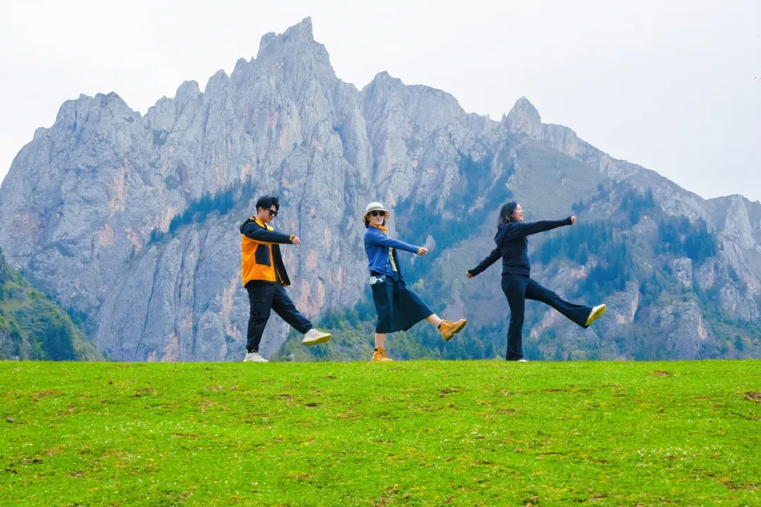 在群山环绕之中,有一处大片的草坪,平整的木栈道,那就是【仙女滩】在这里可以一览无余的饱览整个扎尕那山峰的全景。在这里漫步,野花在草场上竞相绽放,只为一睹扎尕那的美丽。除了观景台观景,有时间体力兴趣还有徒步穿越线路,也可以观光车+徒步+骑马等方式(费用需自理)