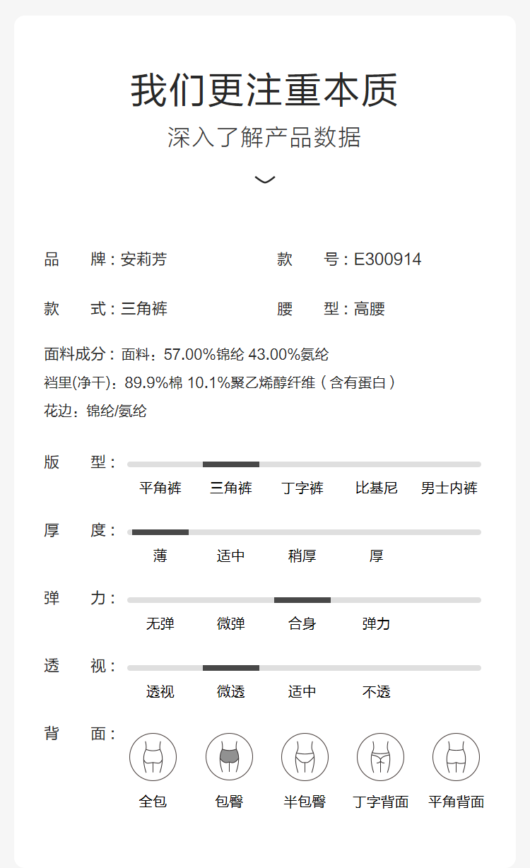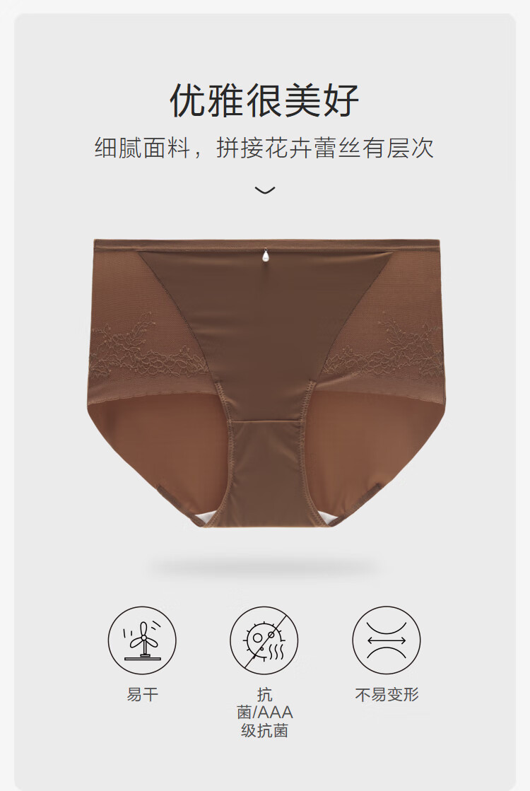 【3F】安莉芳拼接蕾丝性感高腰三角裤女士无痕包臀内裤E300914