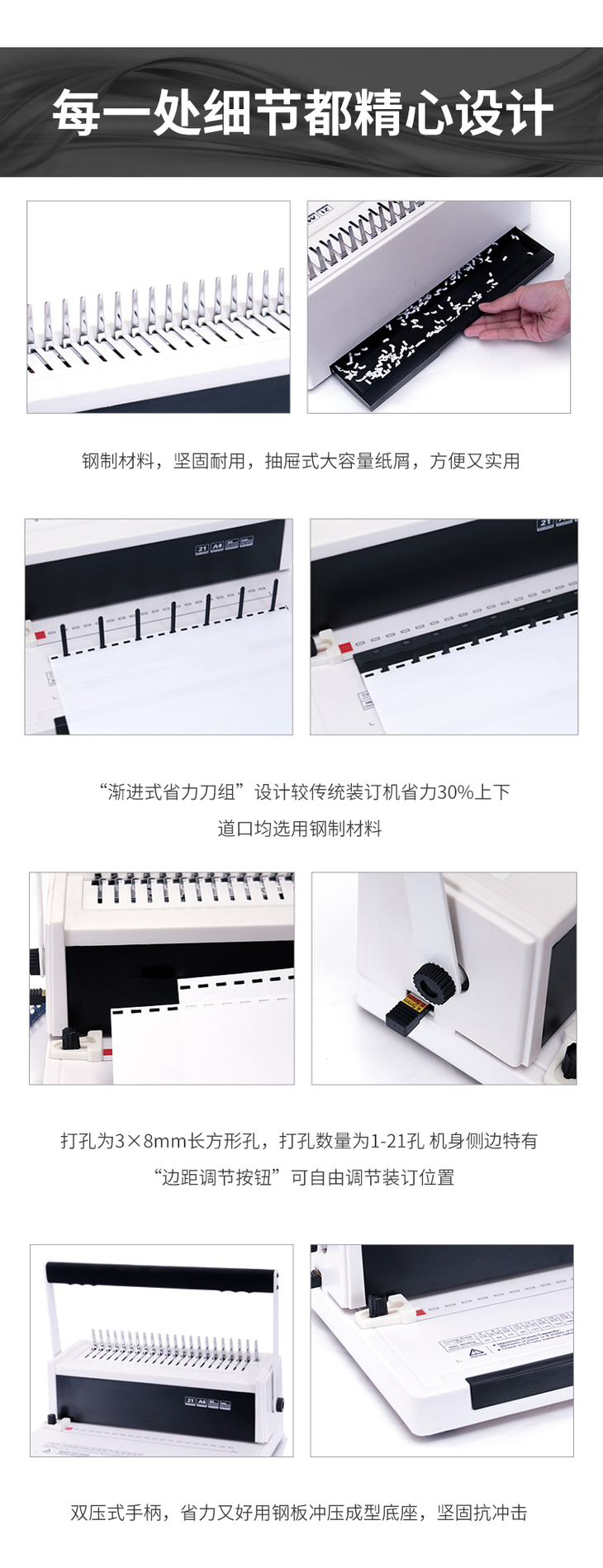 C20A 21孔 夹条打孔机 梳式胶圈打孔装订机/夹条压边装订打孔机