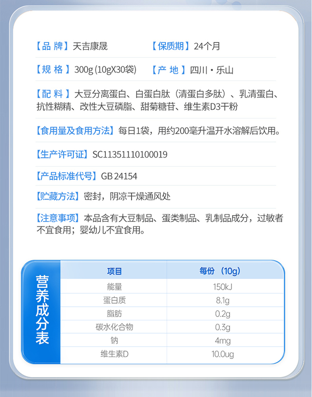 天吉康晟 白蛋白肽复合粉 300g(10g×30袋)
