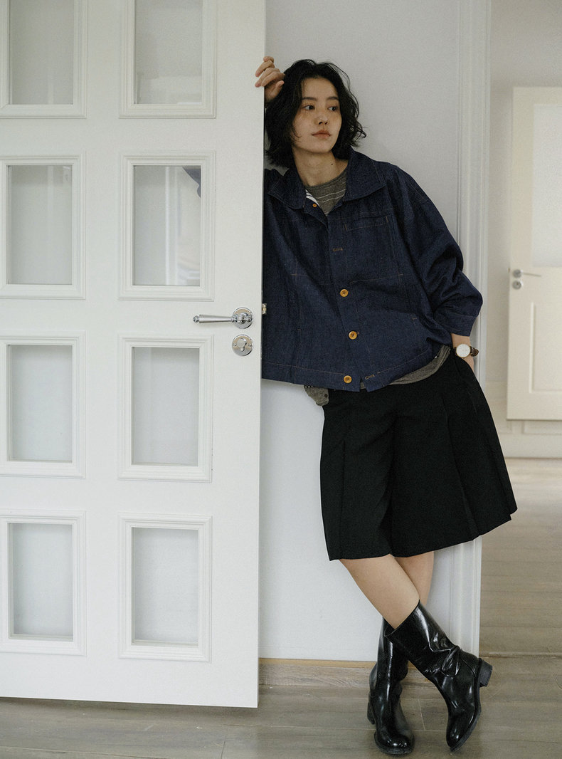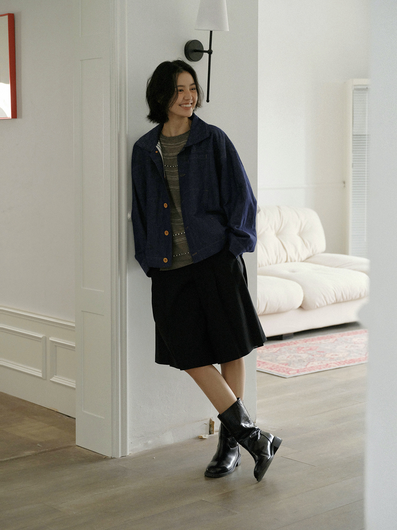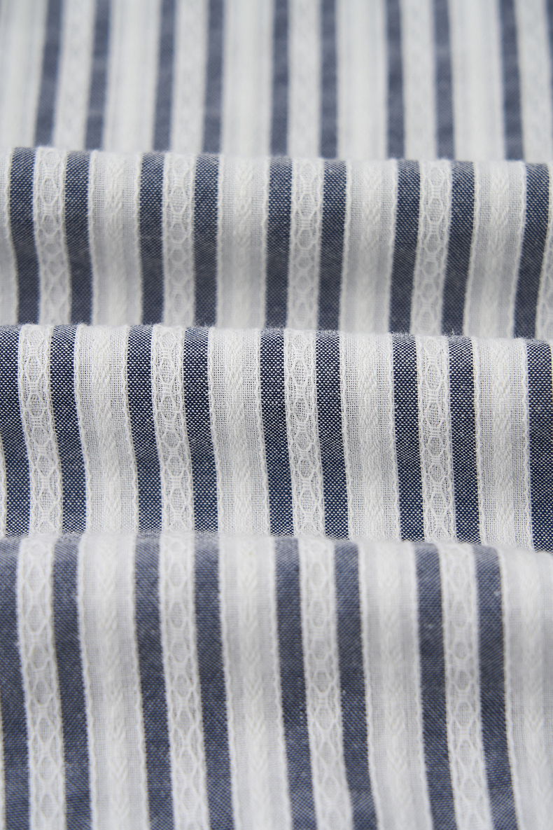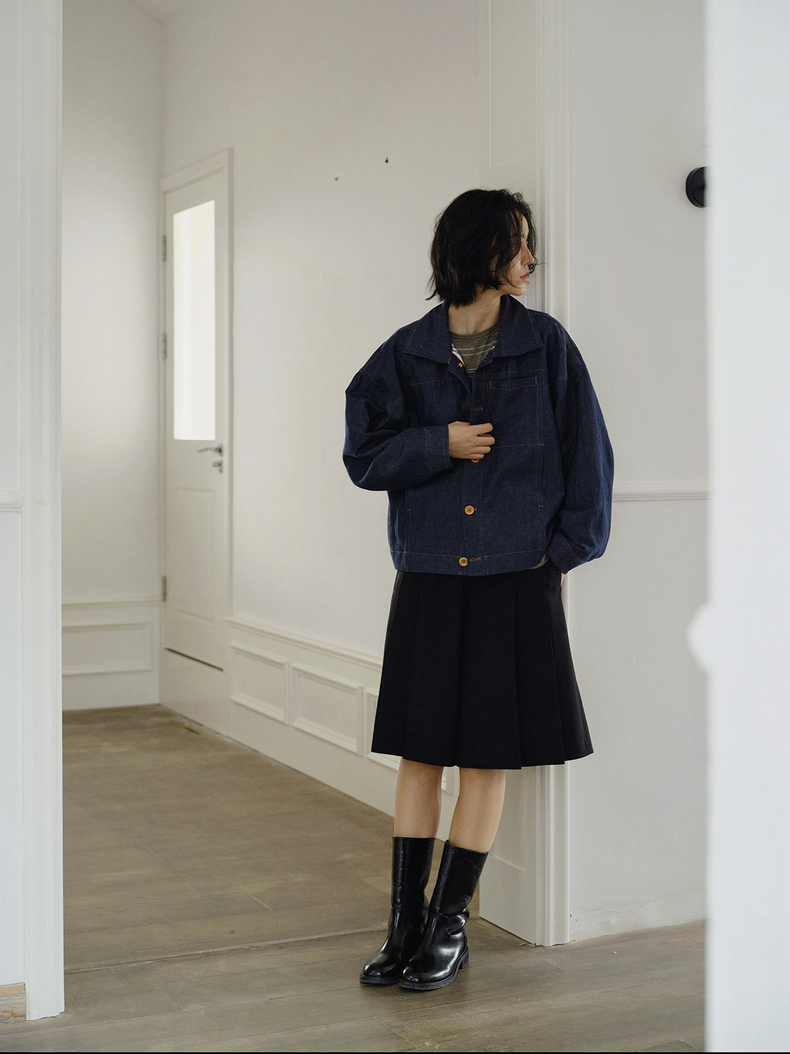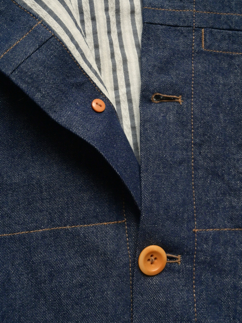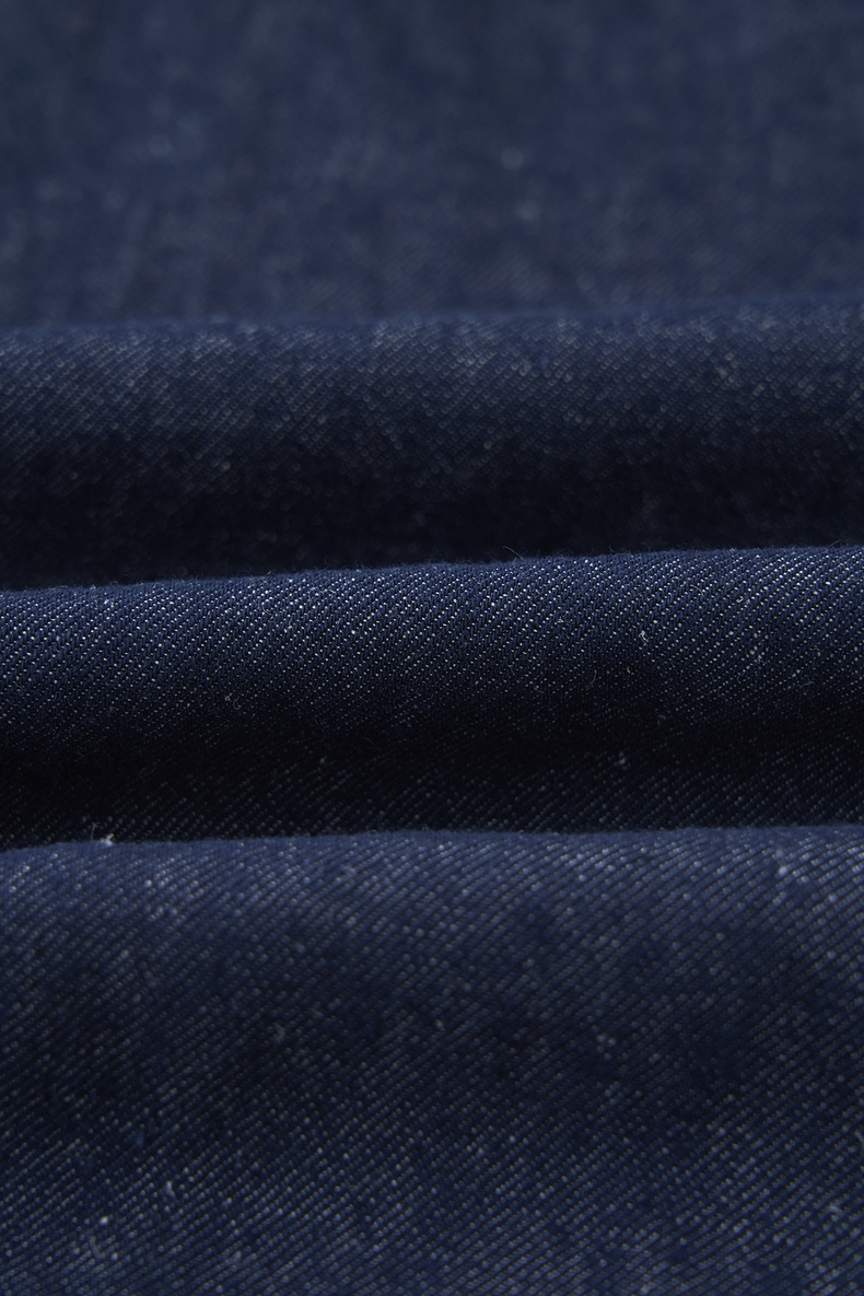 [特价] 进口细支色纺亚麻混纺 辑明线条纹衬廓形宽松牛仔色外套