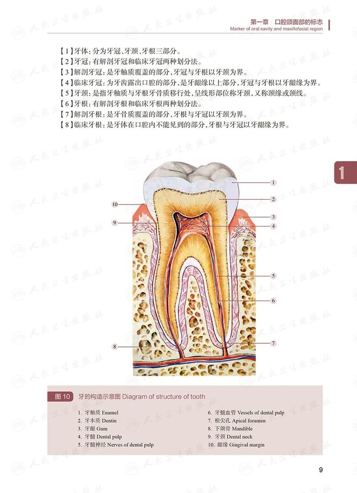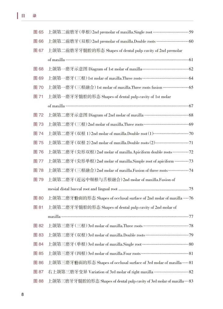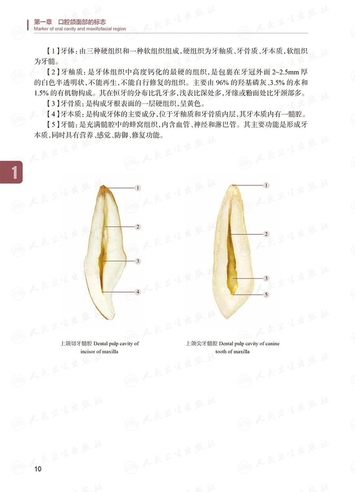 采用成年人恒牙、牙列、咬合、牙合曲线、牙合型及婴幼儿乳牙、牙列、咬合、牙合曲线、牙合型的实物标本。观察牙体的各面结构及牙体的各种剖面的特征,力求将每个牙体微小结构、形态真实的展现读者面前。该图谱强化结构的标注和文字描述,如每个牙重要结构名称,临床应用意义,重要要点进行文字说明,做到图文并茂,达到牙体解剖学的认知充分服务于口腔临床目的,弥补各院校口腔教学中牙体标本奇缺,多采用教学模型的弊端。使学生能够轻松的掌握教材中的牙体解剖学知识和内容。图像按口腔解教材内容的顺序编排,用栩栩如生的牙体实物标本图像,来阐述死记硬背的牙体解剖学知识,并对每个牙的解剖特征、牙齿的要素、牙体的变异、牙髓腔、根管的形态等进行词条性文字描述。图解随图同伴,方便便捷。
