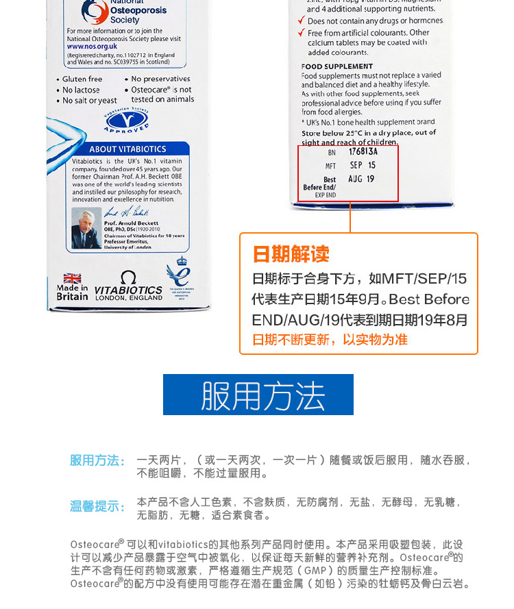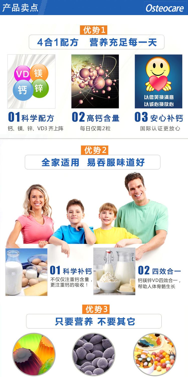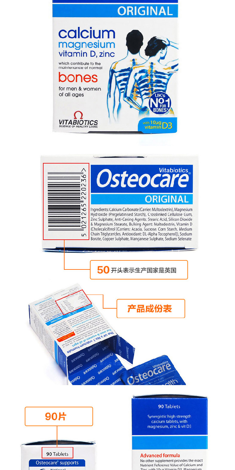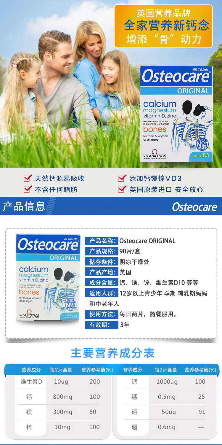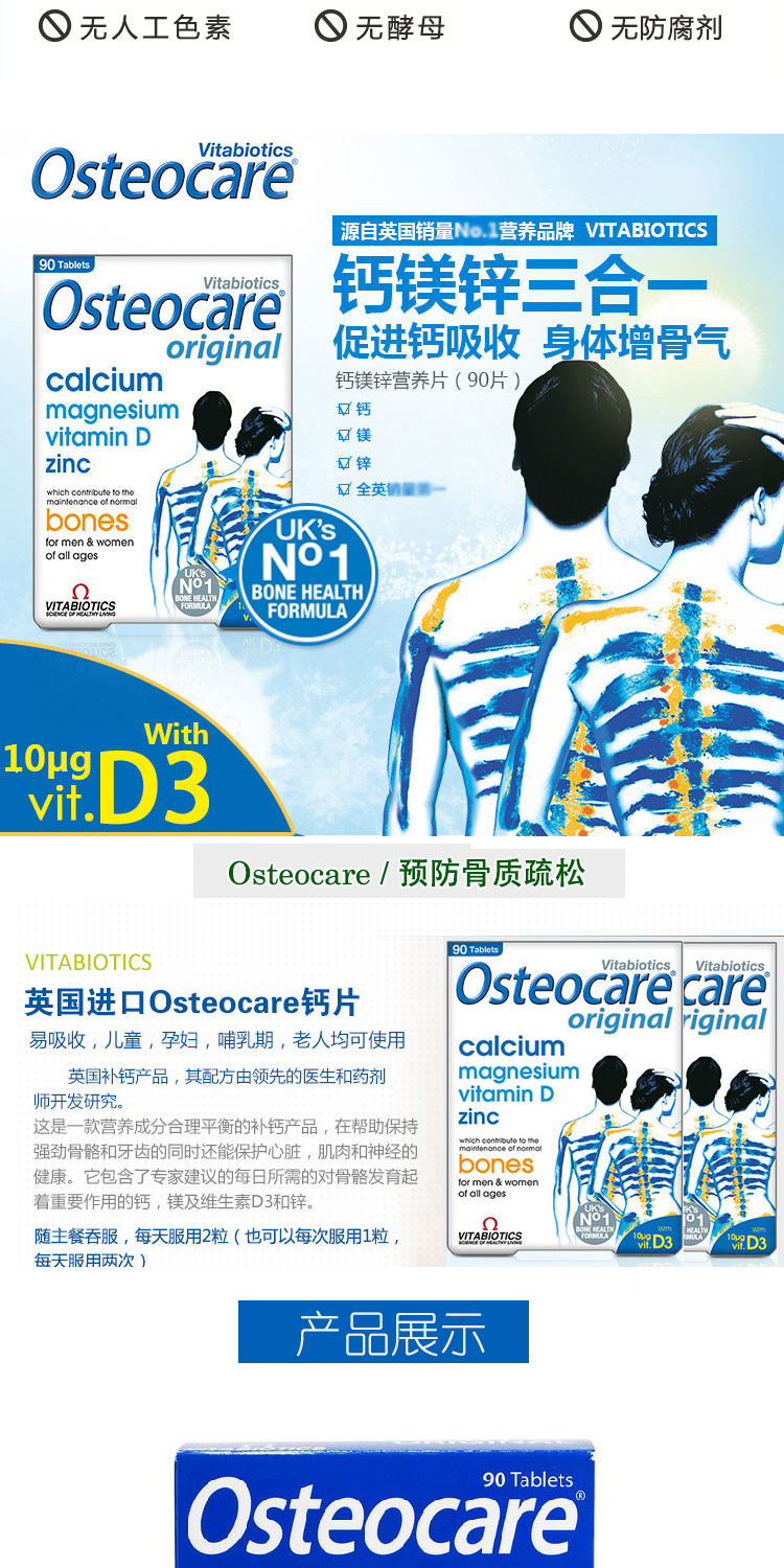 【保税仓】英国薇塔贝尔英国Osteocare钙片补vd儿童青钙镁锌少年孕妇哺乳期中老年人90粒