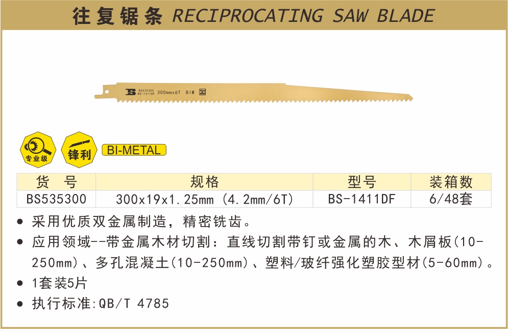 波斯 往复锯条 300*19*1.25MM BS535300