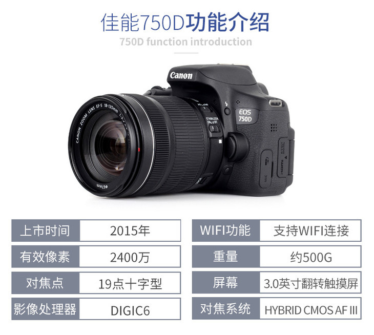 【佳 能】单反相机Canon/佳能EOS 750D(18-55STM)套机高清数码单反照相机