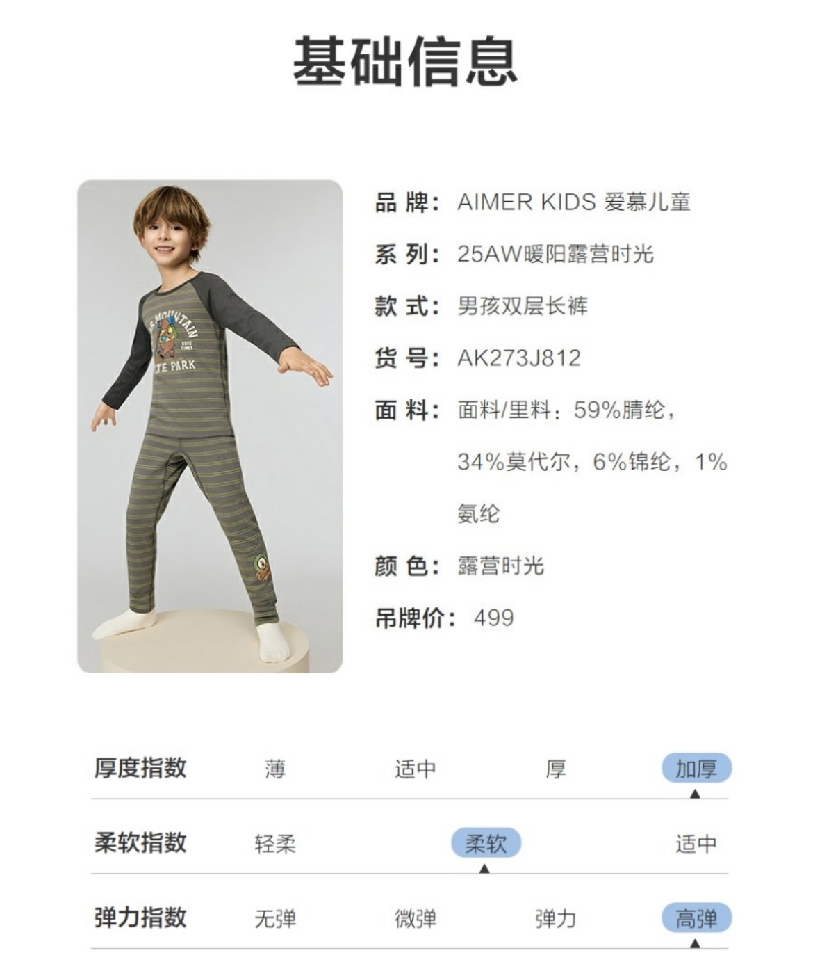 【春上新】8楼爱慕儿童Aimer Kids男孩25AW暖阳露营时光双层长裤AK273J812,吊牌价499元