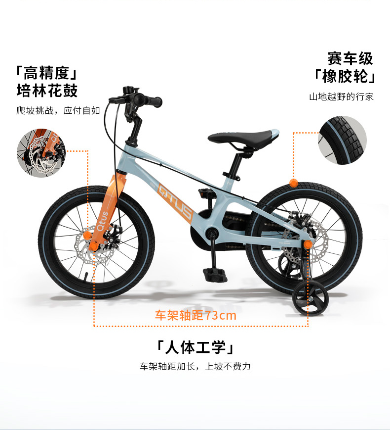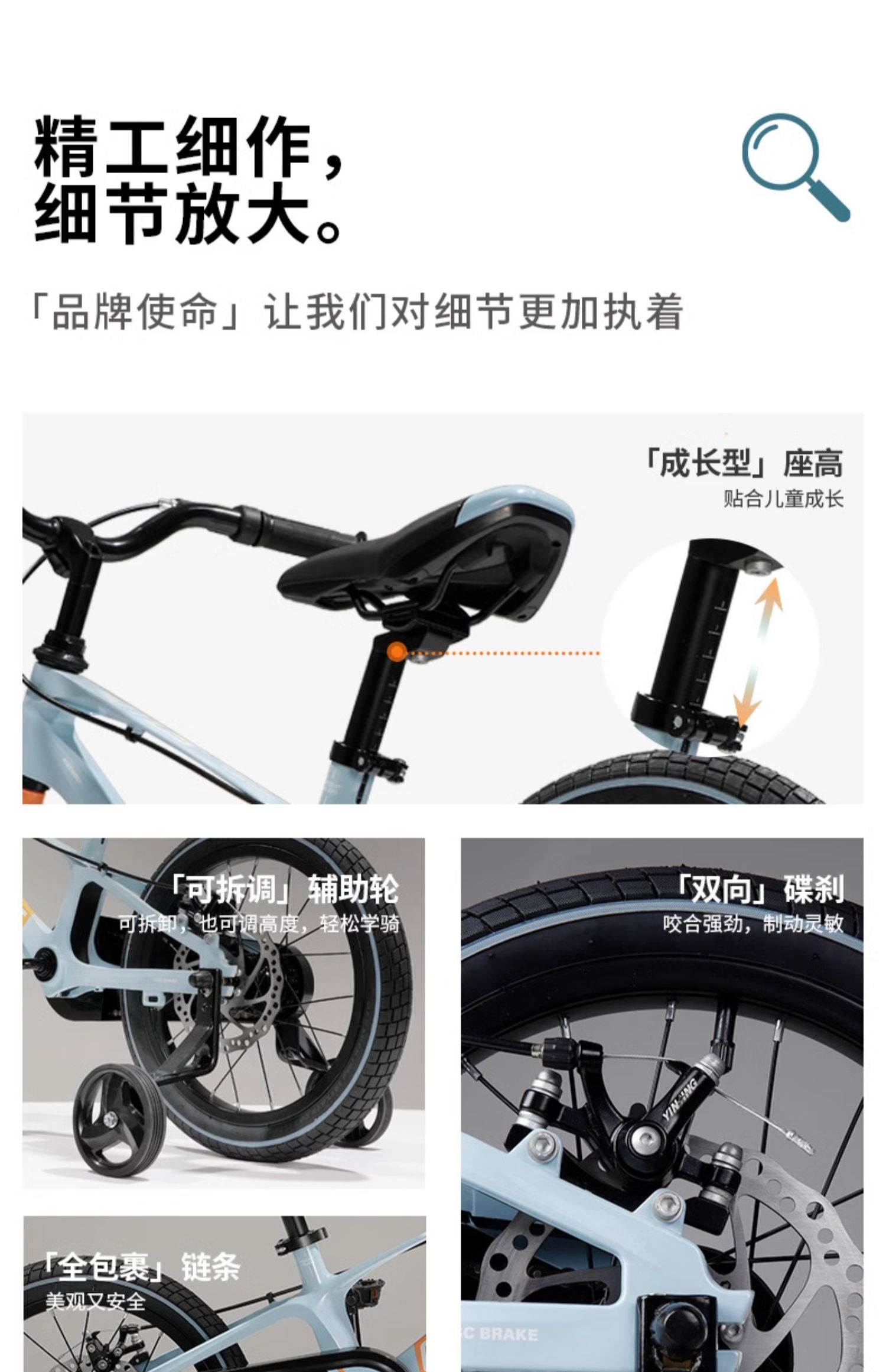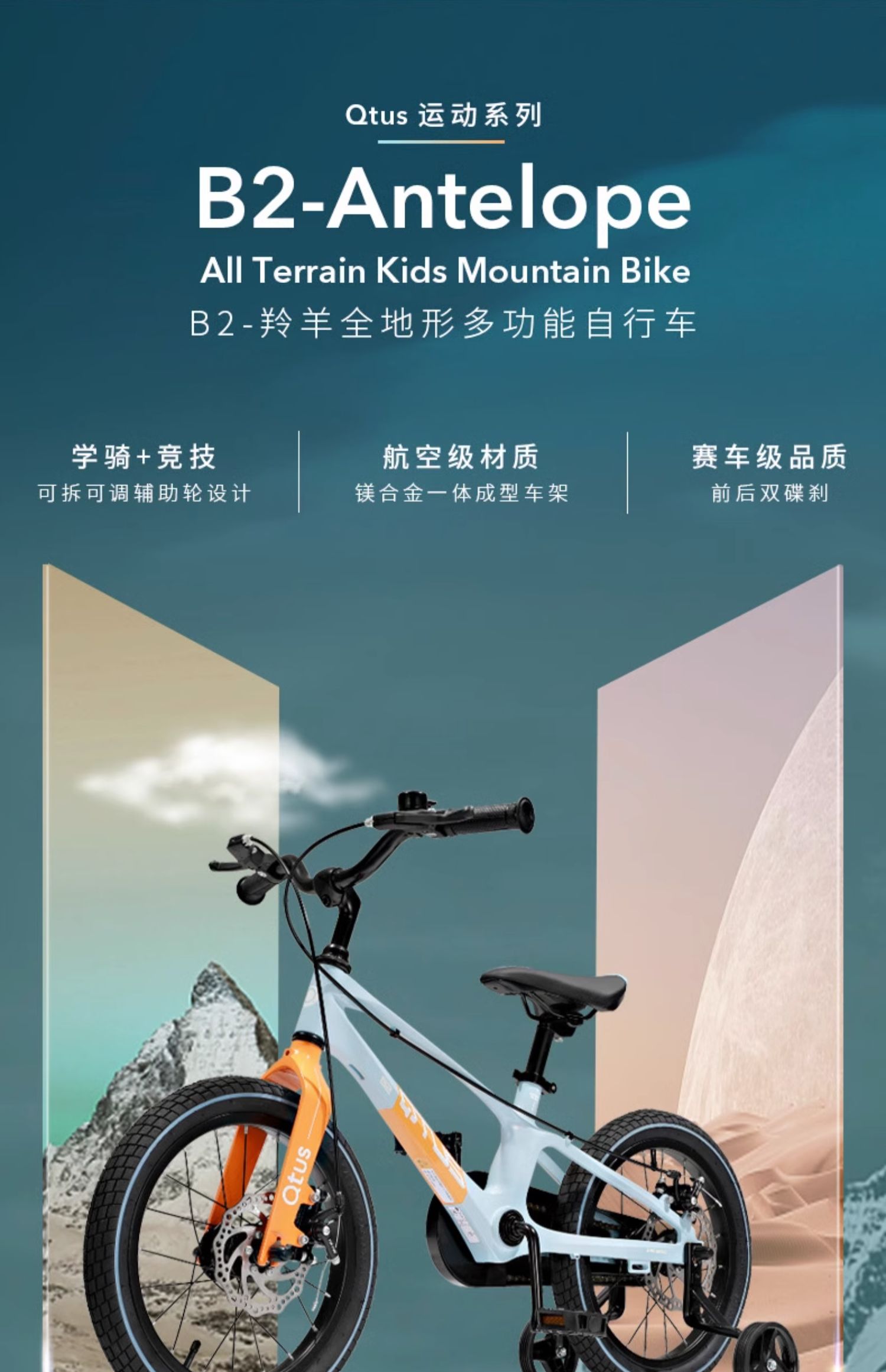 9楼母婴生活馆 Qtus昆塔斯B2儿童自行车4-8岁辅助轮16寸两轮镁合金 吊牌价:1499元 活动价:1275元