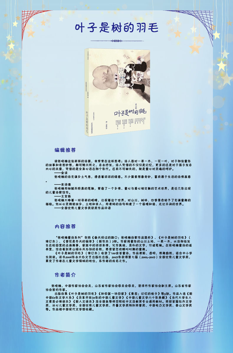 叶子是树的羽毛(张晓楠童诗系列) 全国儿童文学奖 冰心儿童文学奖作家张晓楠 小学生课外书 中学生课外书 儿童读物