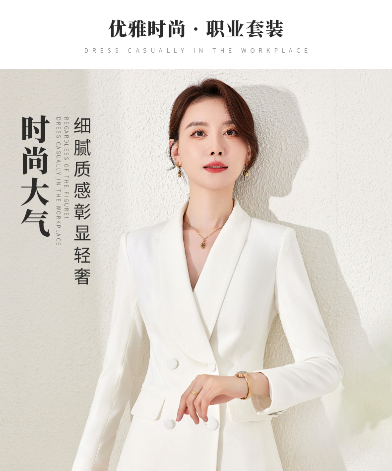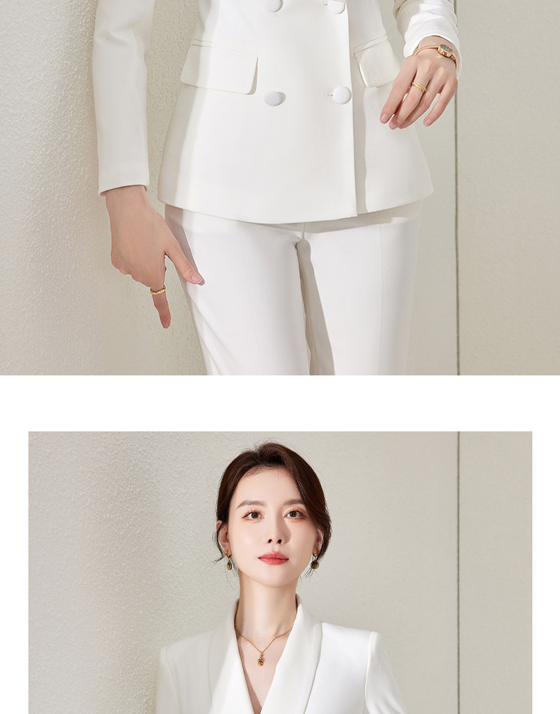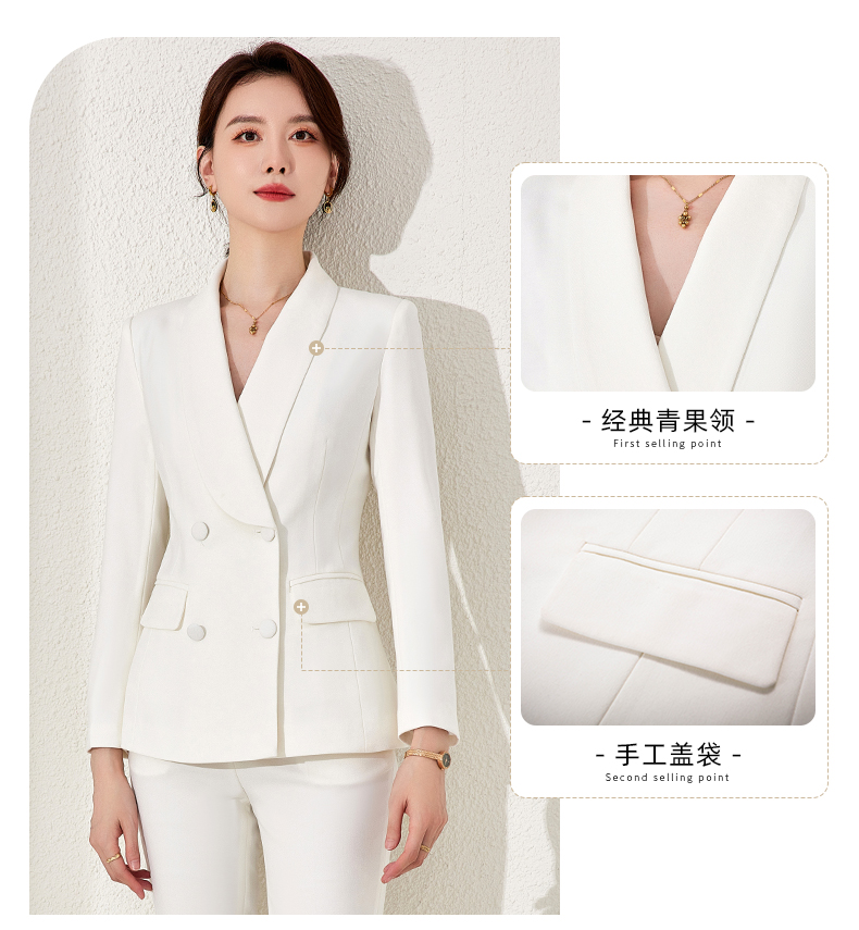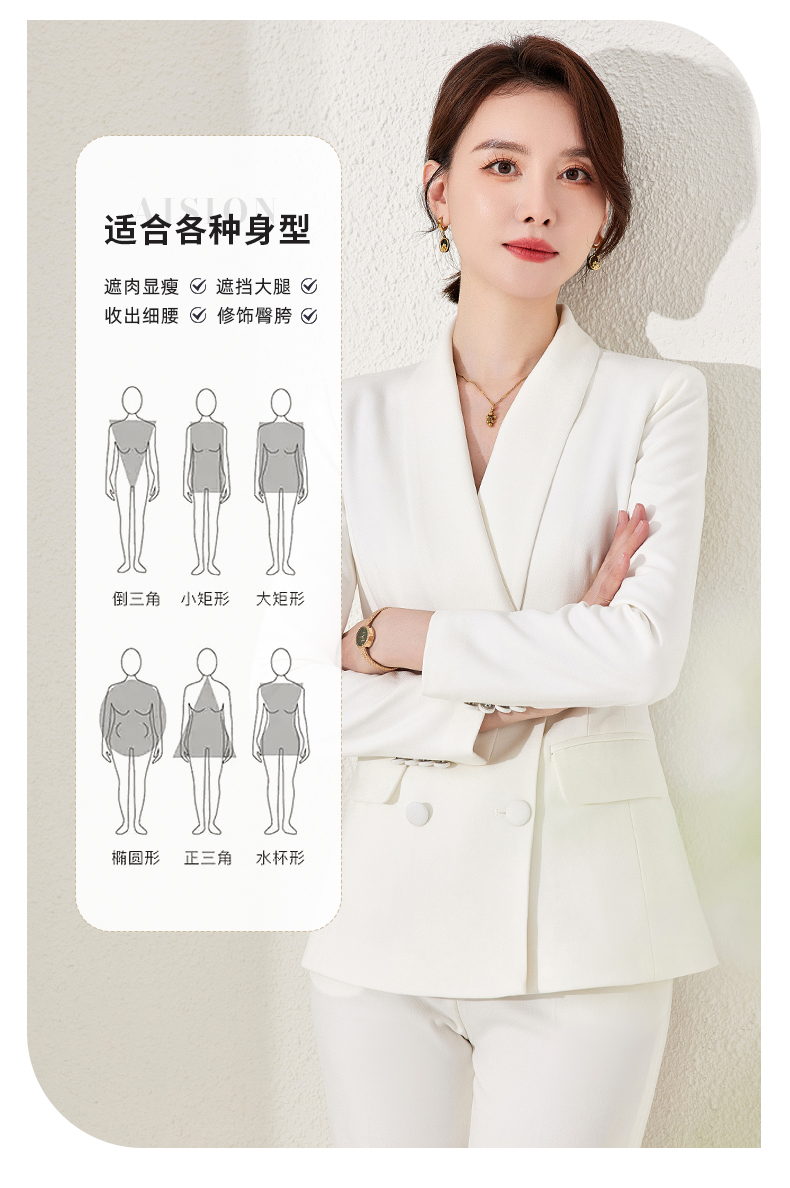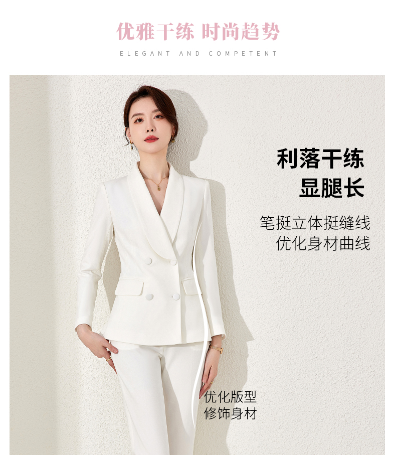 青果领白西装套装女时尚气质职业正装修身收腰小西服主持人工作服