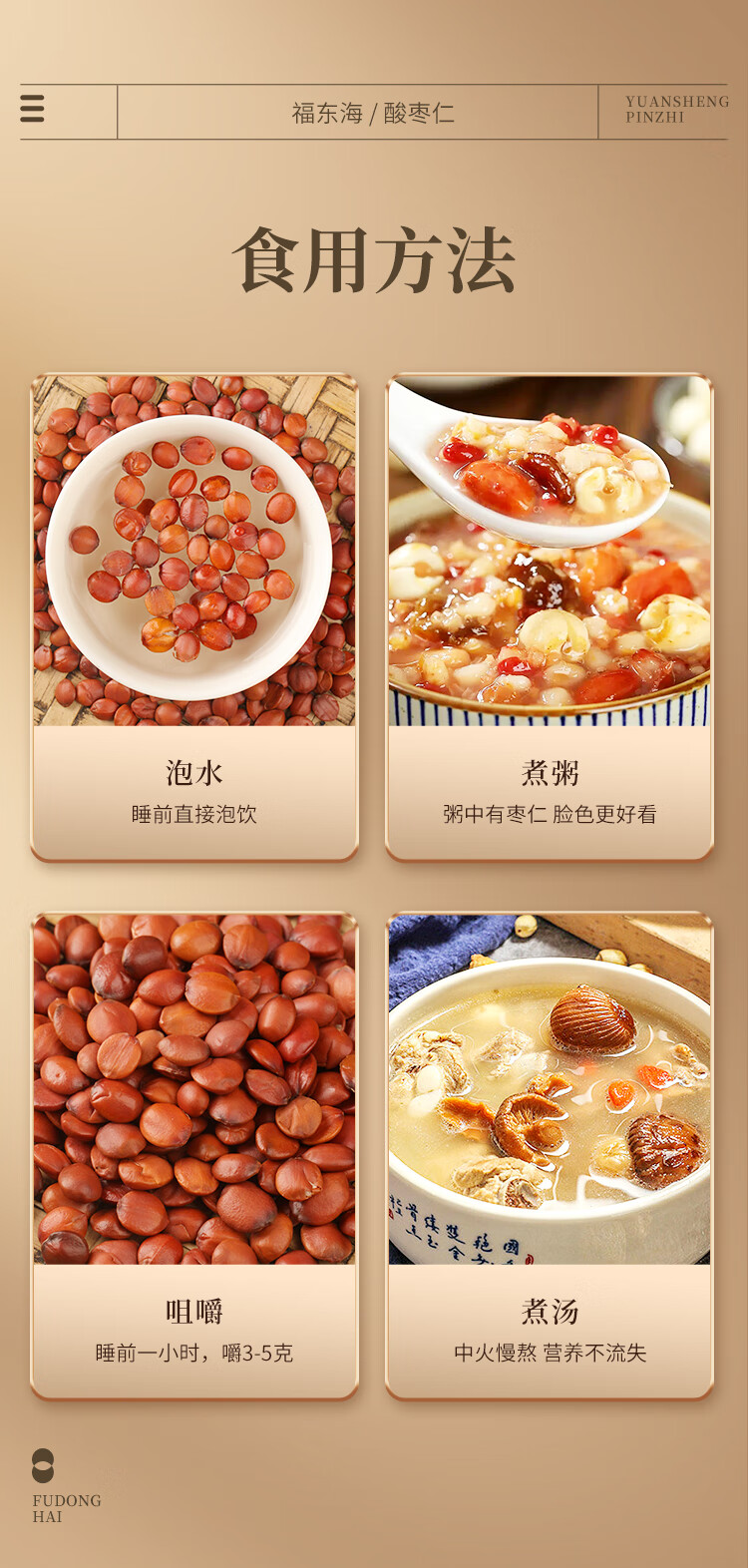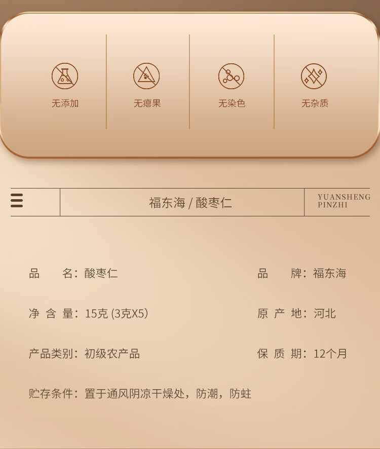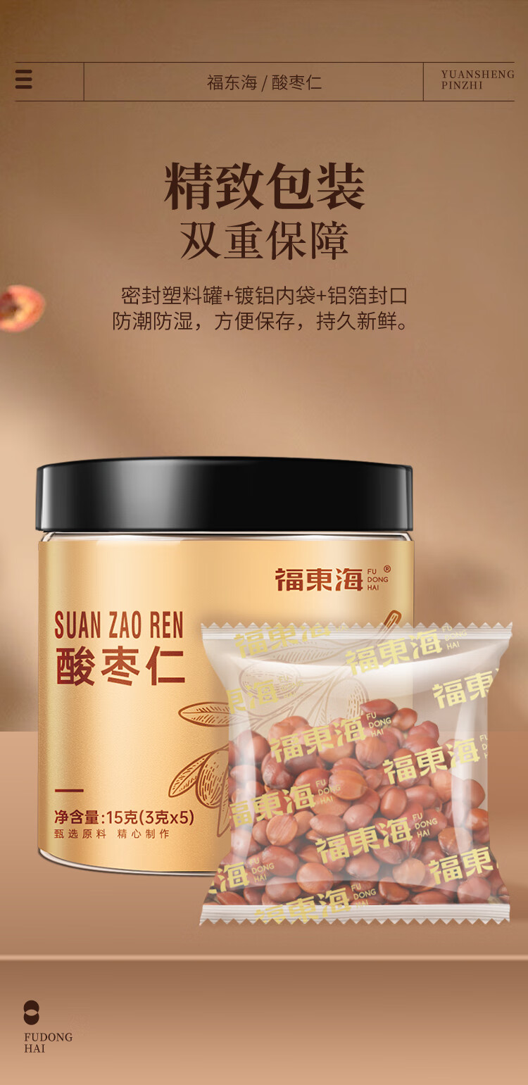 福东海 酸枣仁15克 (3克x5袋)纯酸枣仁精选真实酸枣仁原材料可搭百合茯苓茶 饮品养生茶配料