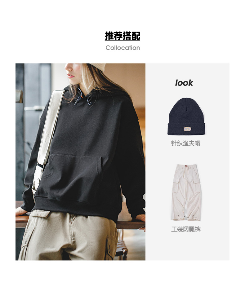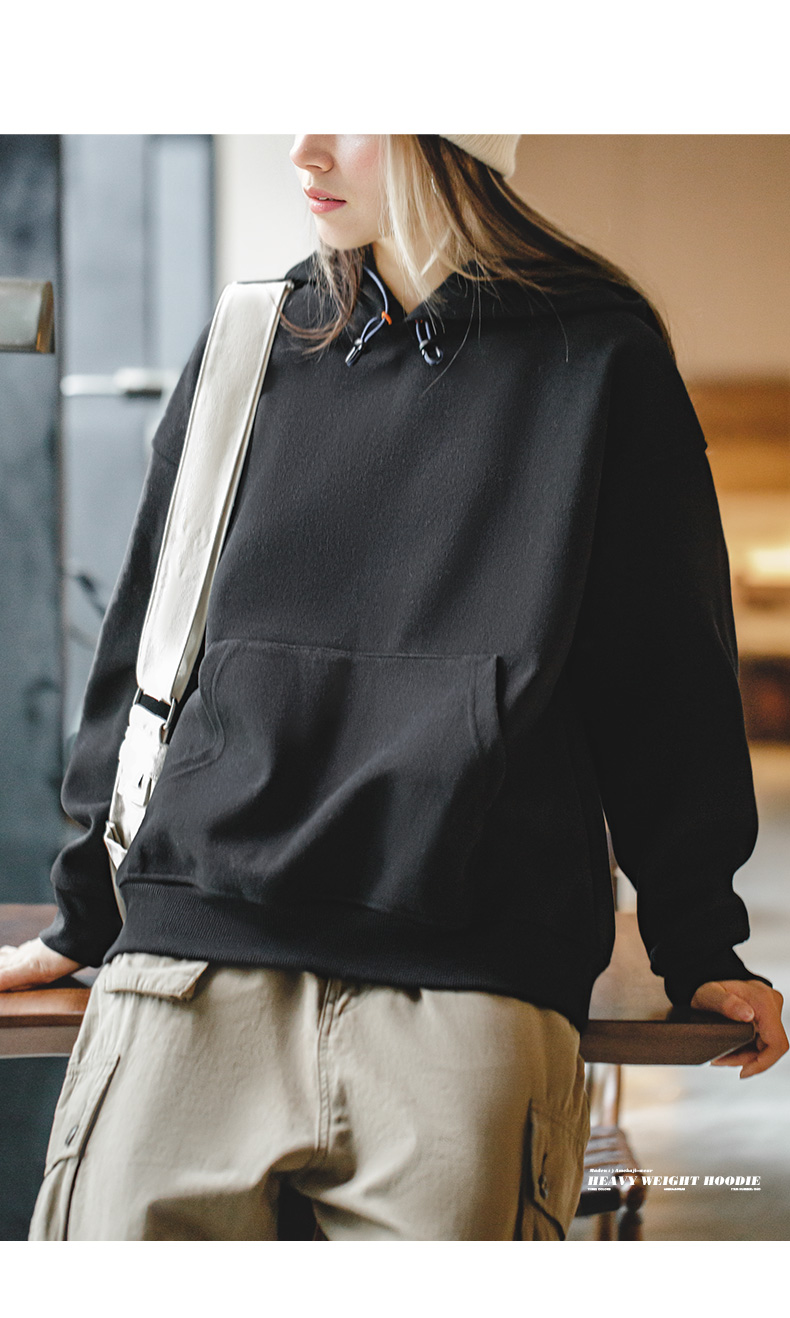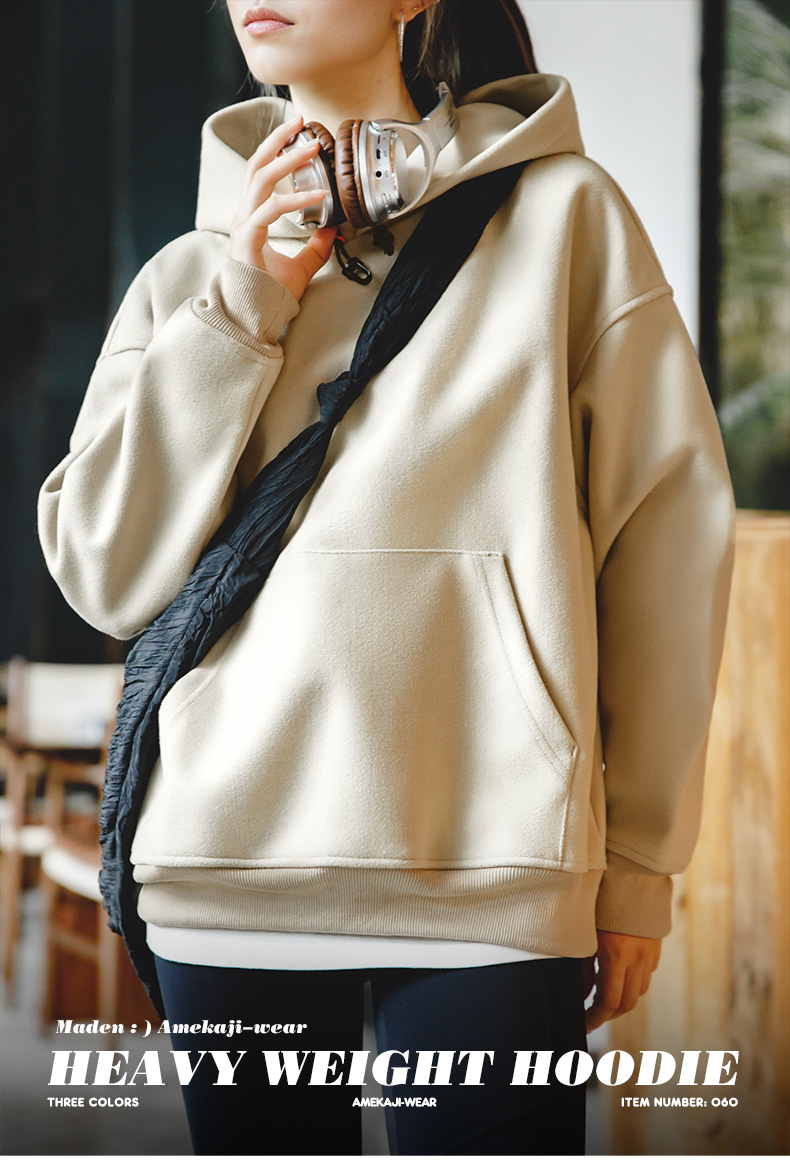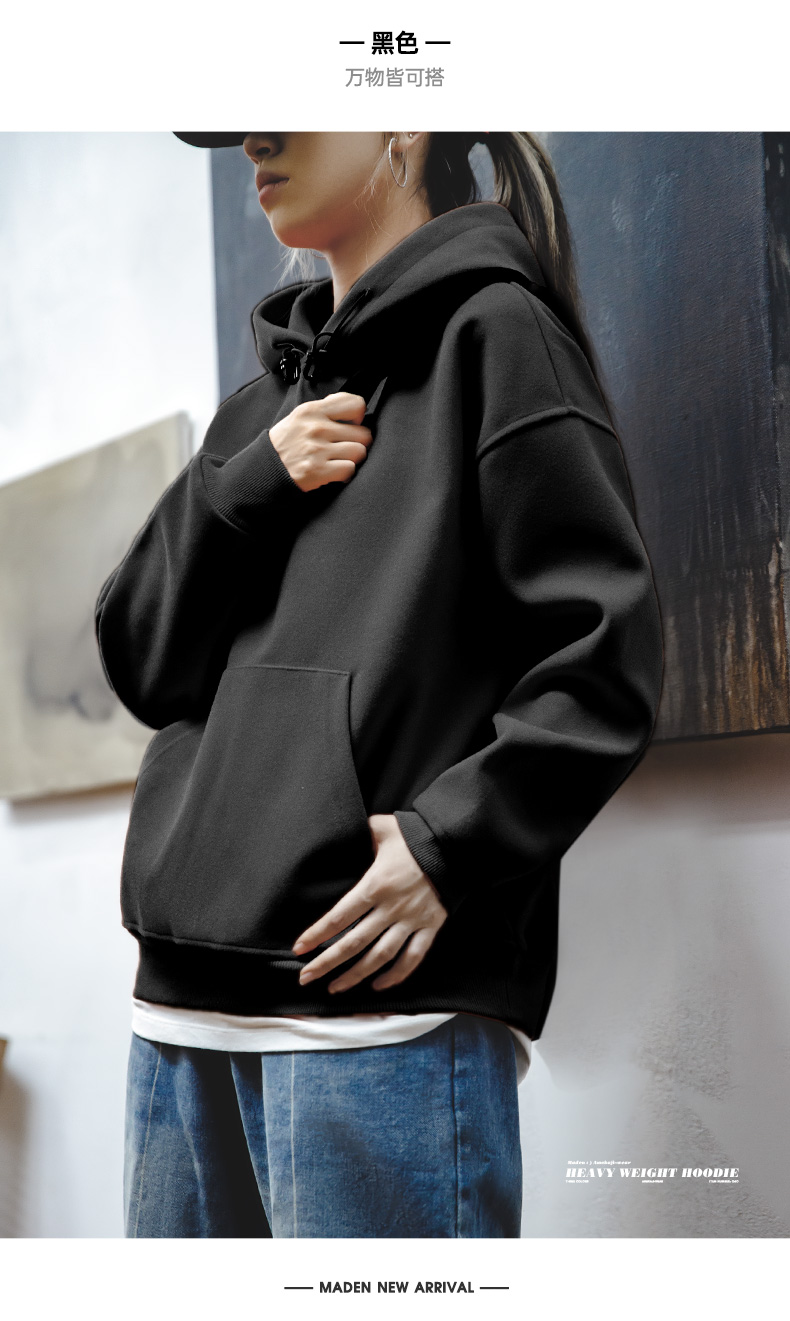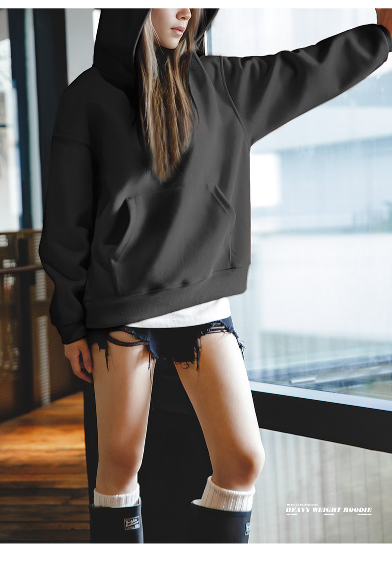 马登重磅毛呢加绒加厚连帽卫衣美式宽松套头衫长袖上衣秋冬女