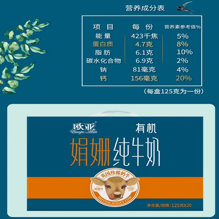 欧亚娟姗有机纯牛奶 125ml*20