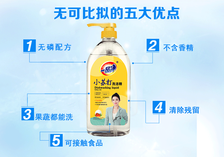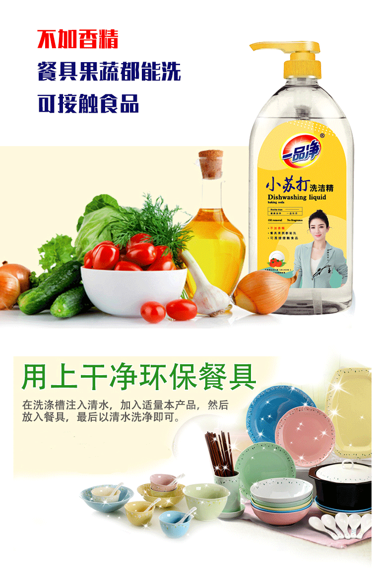 【买一送一】小苏打洗洁精A类食品级透明无香精果蔬餐具 清洗污渍 清新祛味 亲肤不伤手
