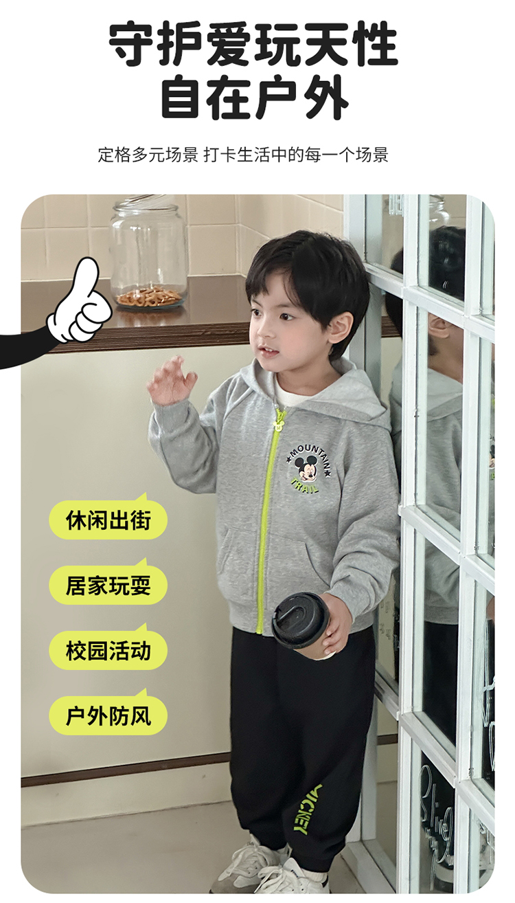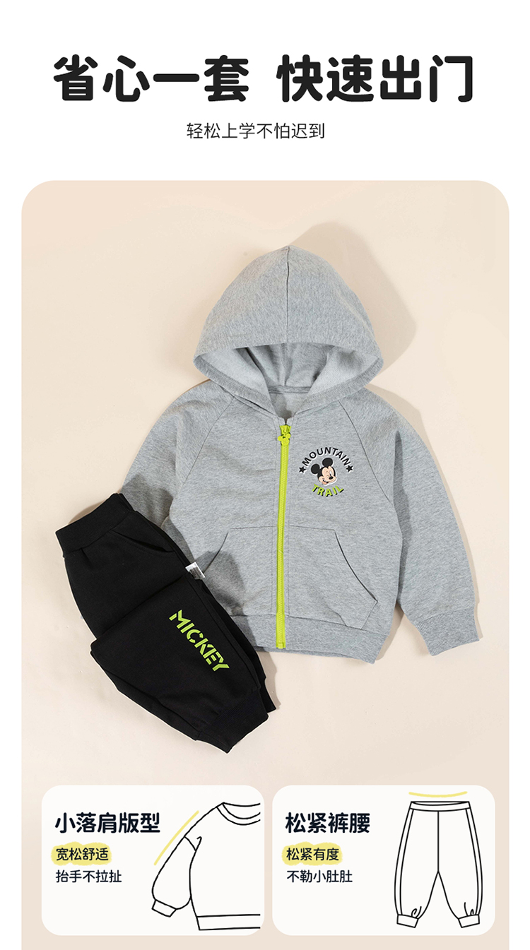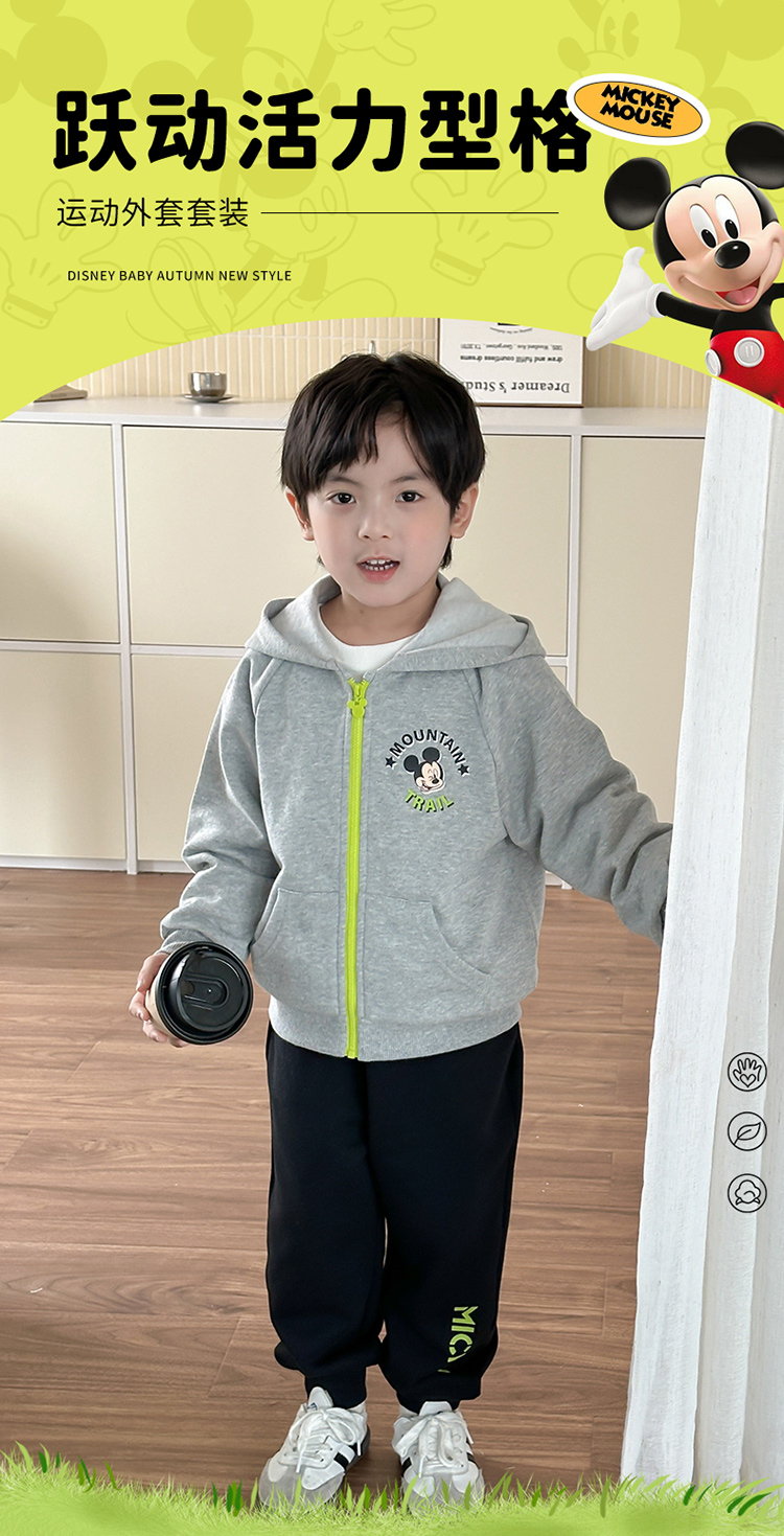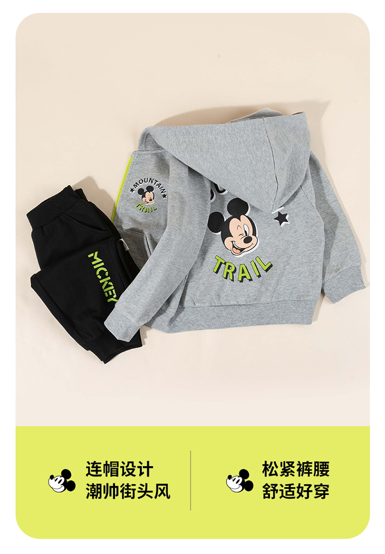迪士尼加绒24秋冬季男童套装连帽卫衣束脚卫裤运动休闲两件套ZD3DT036