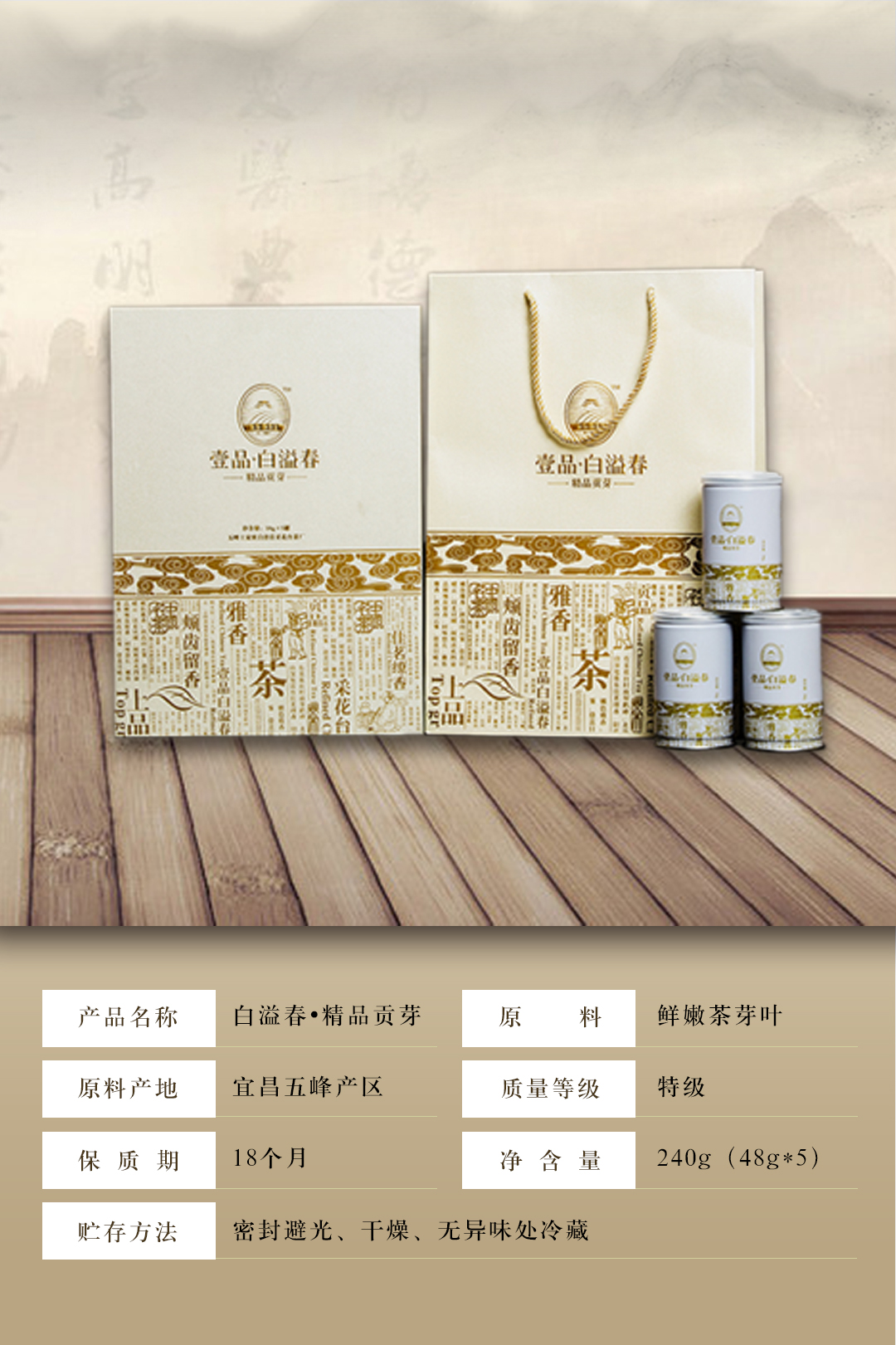 【宜昌助农馆】五峰白溢春精品贡芽 240g 48*5罐